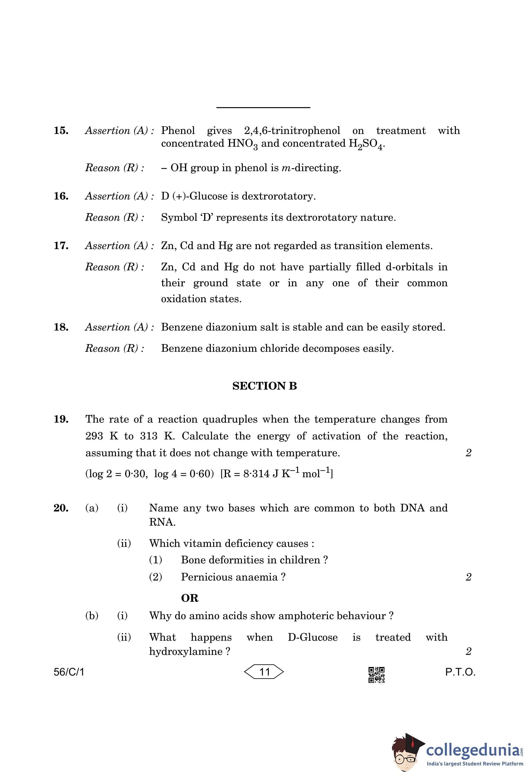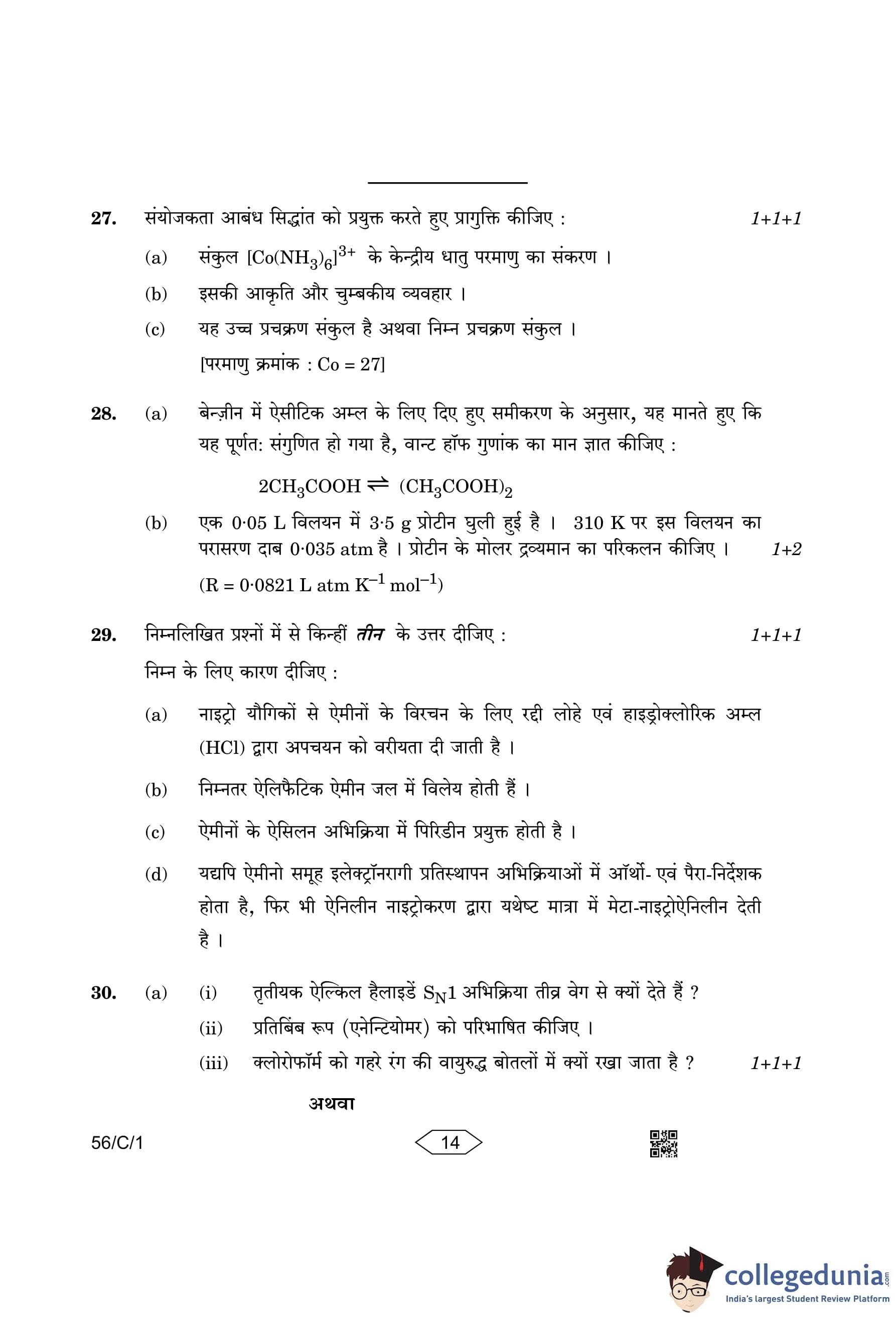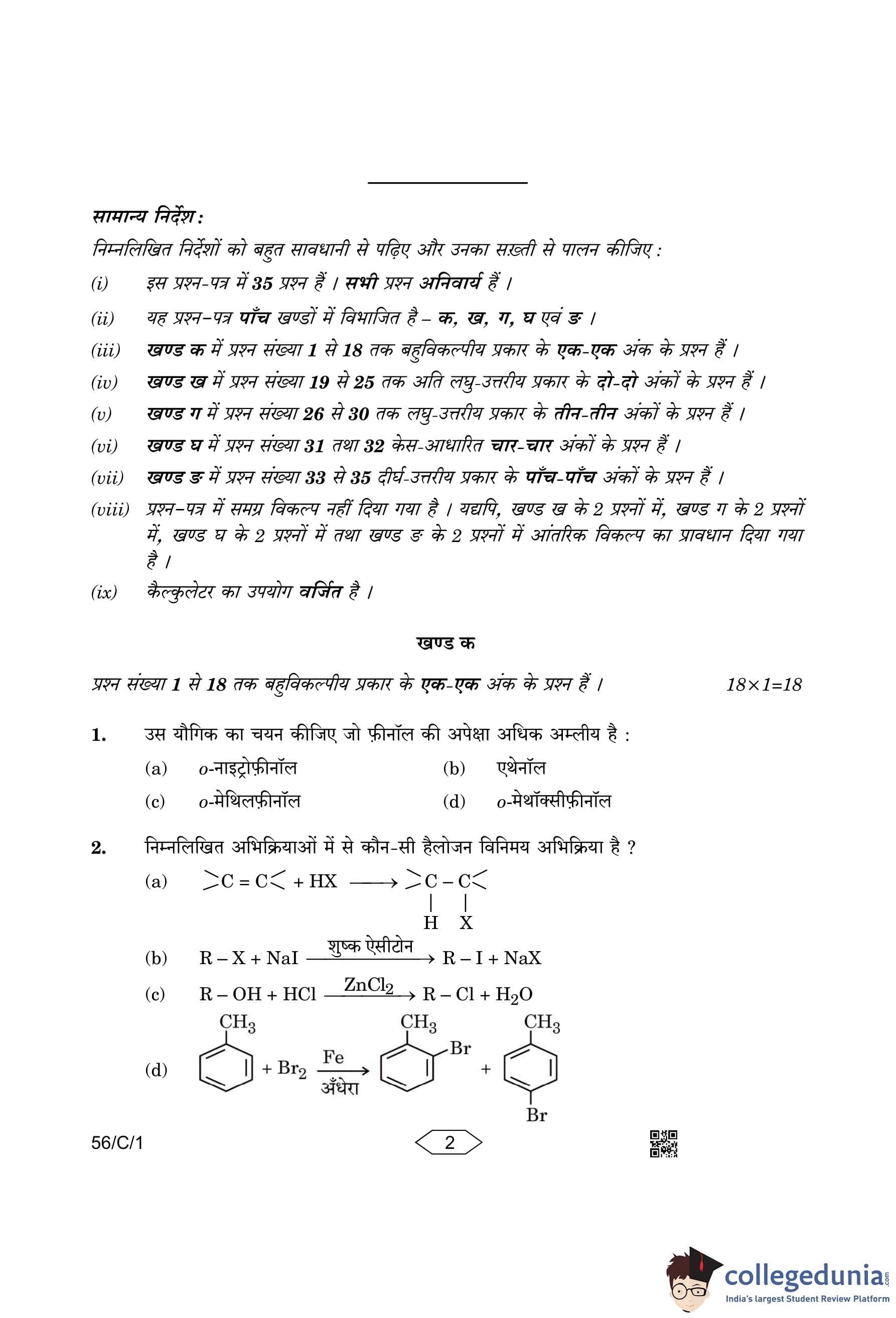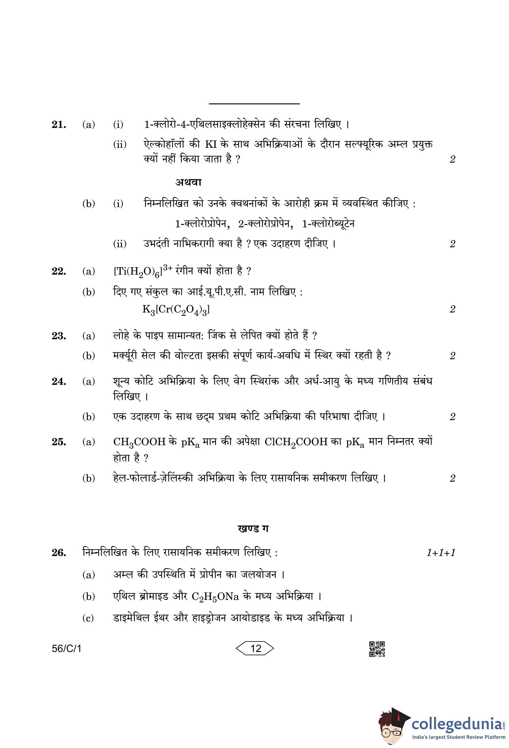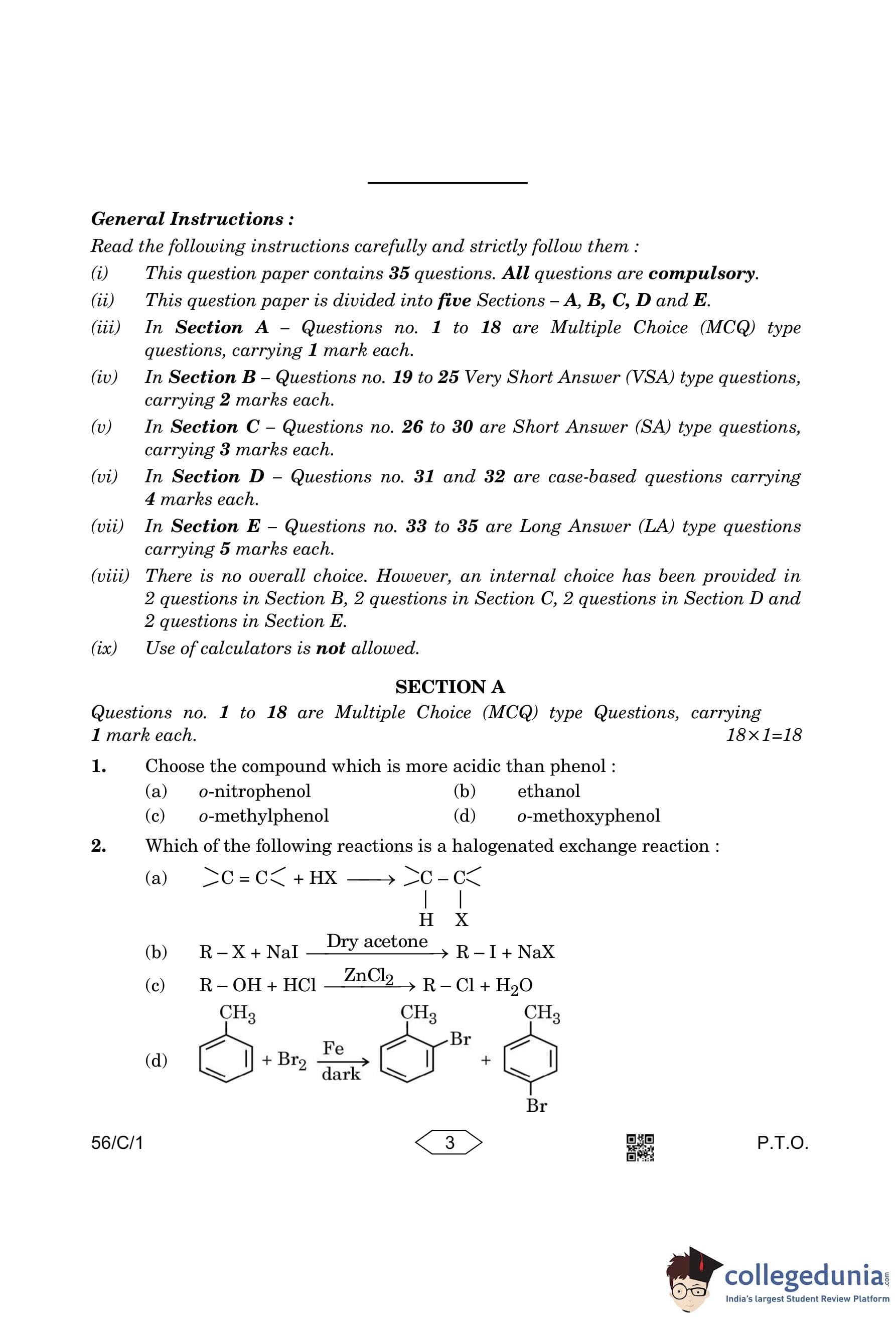 | CBSE Class 12 Chemistry Question Paper With Answer Key | Download PDF | Check Solutions |