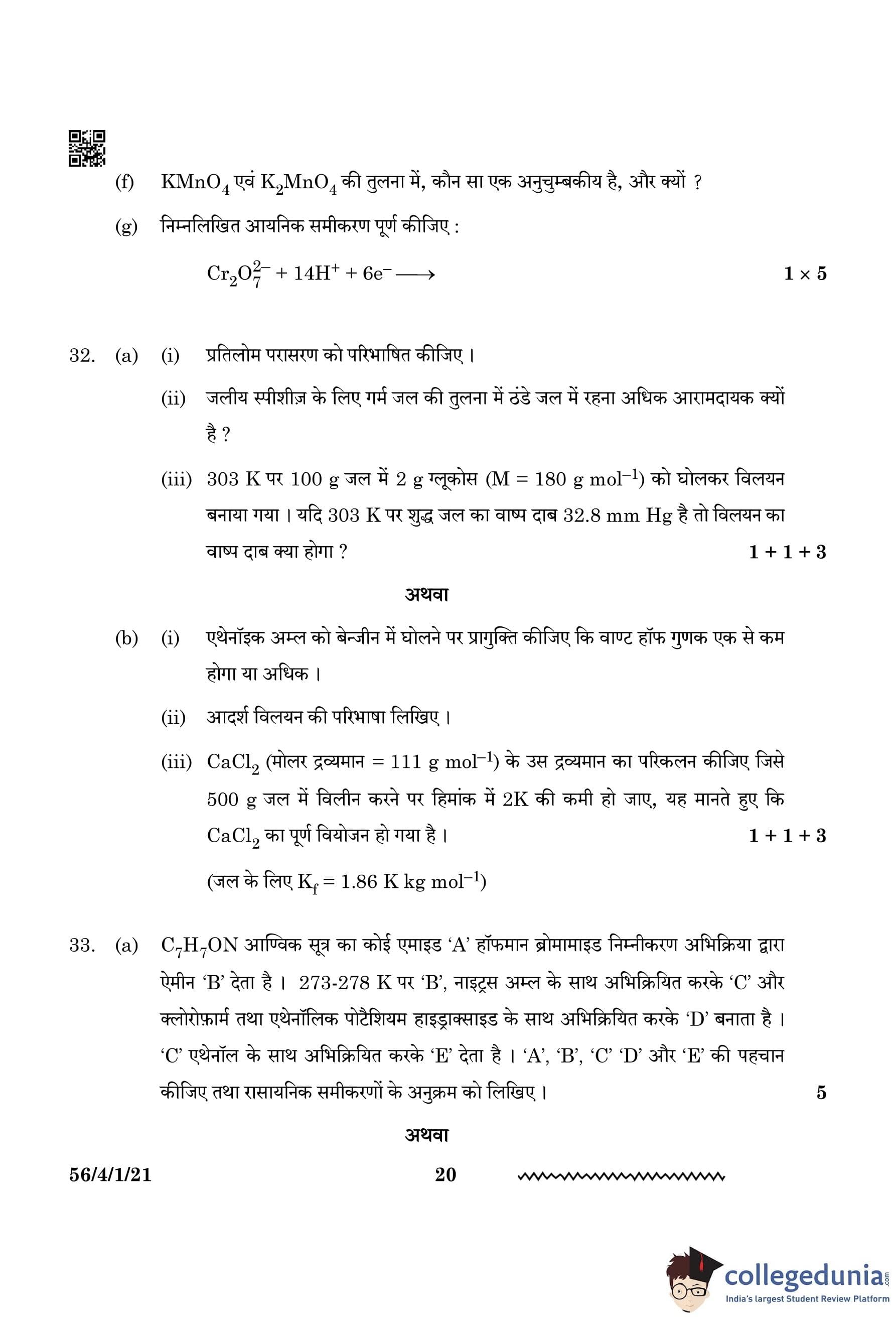| CBSE Class 12 2024 Chemistry Question Paper with Answer Key | Check Solution |