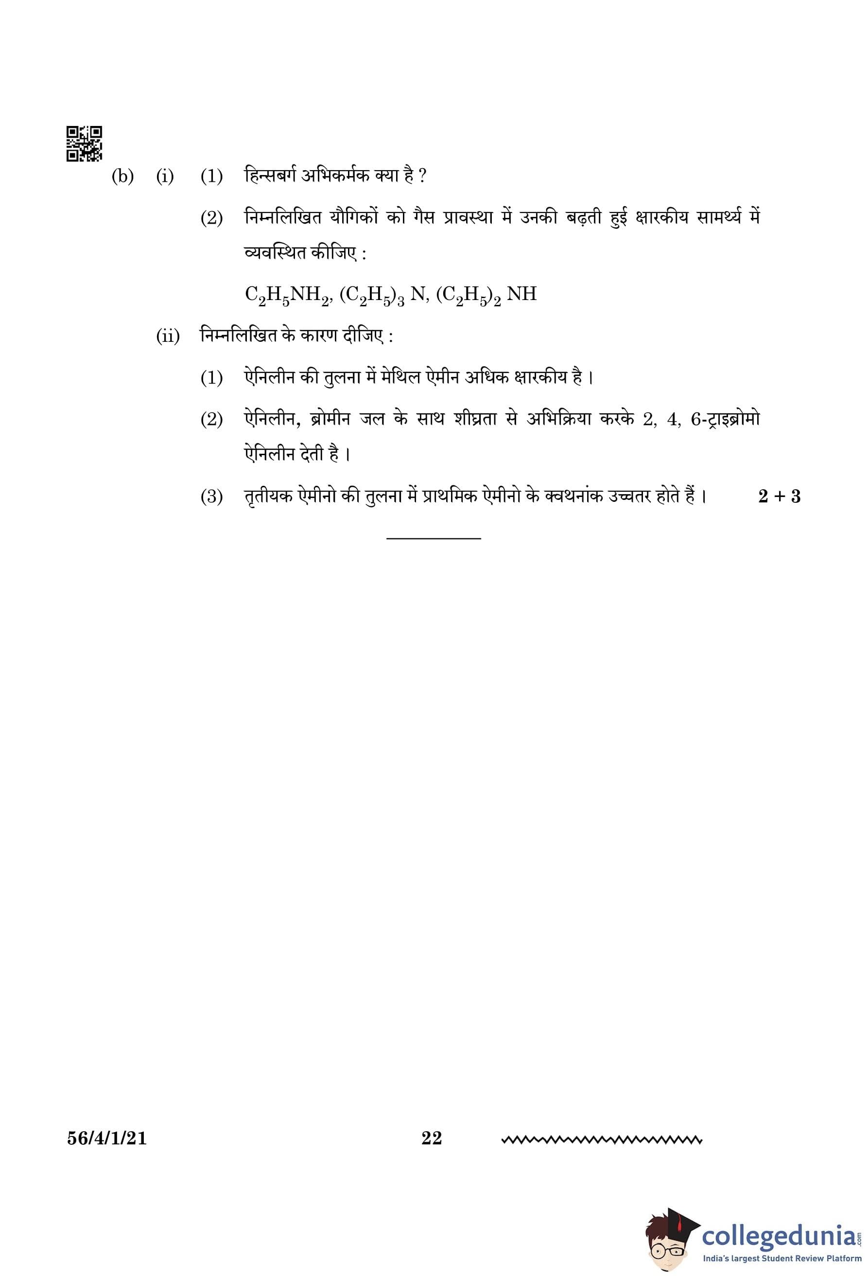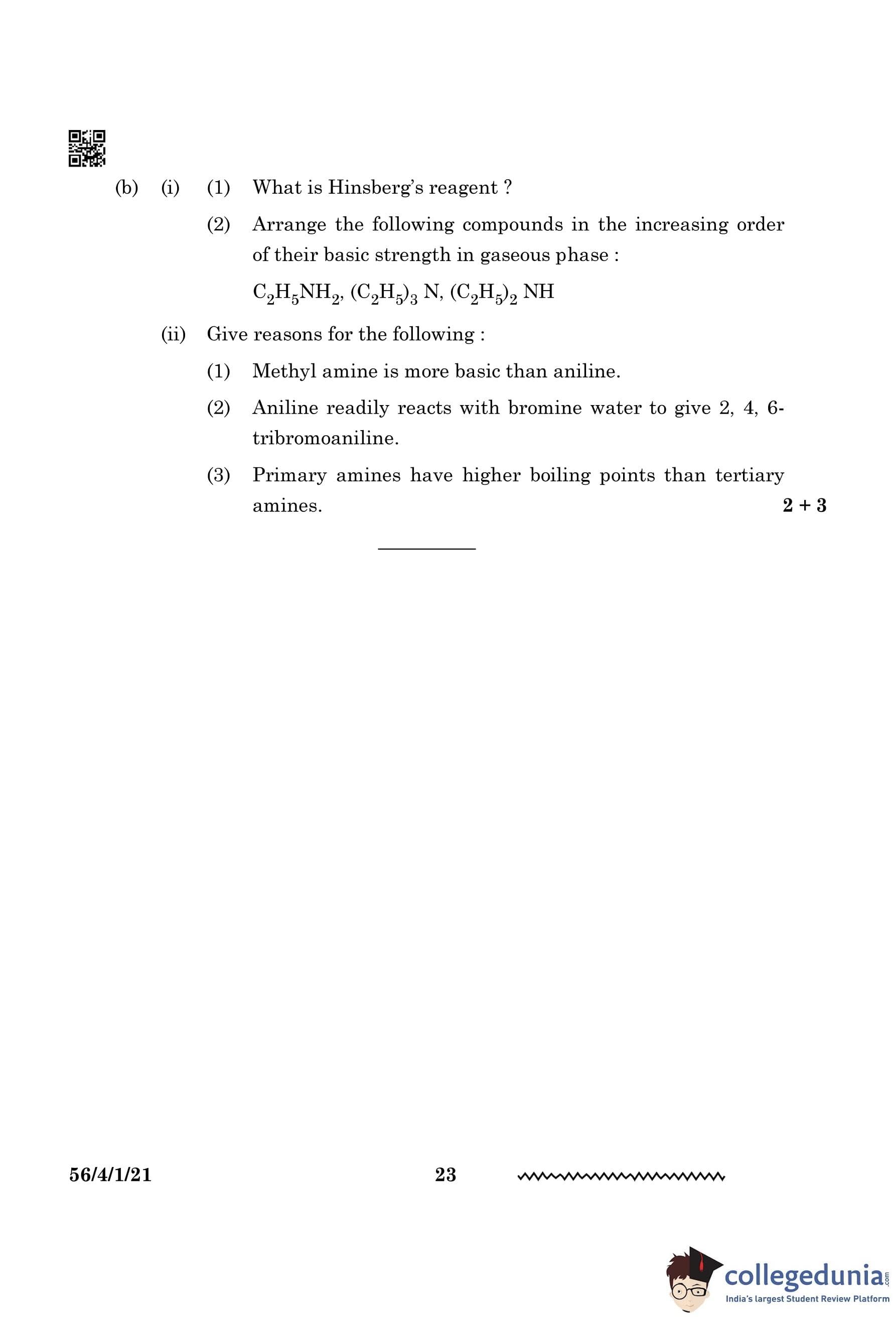 (b) (ii) (3) Primary amines have higher boiling points than tertiary amines.
