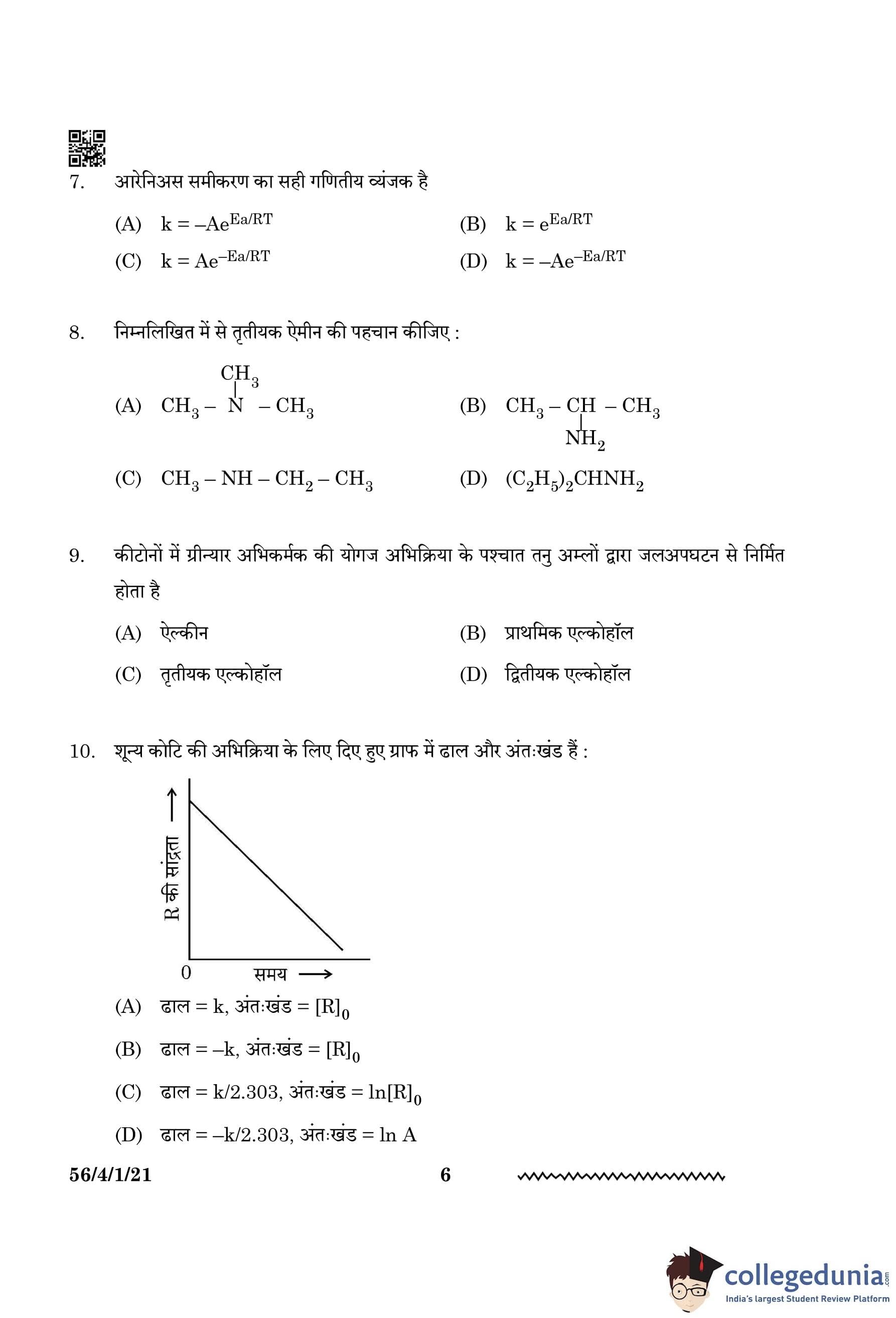 Step 1: The equation shows that the rate constant increases with temperature, as the exponential factor becomes larger at higher temperatures. Quick Tip: The Arrhenius equation provides insight into how the rate of a reaction depends on temperature and activation energy.