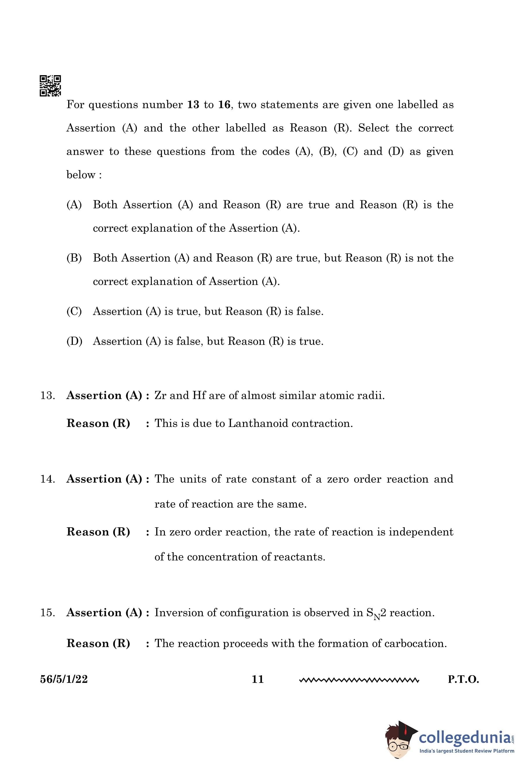 - Reason (R) is also true: The reason for this similarity is the Lanthanoid contraction, a phenomenon where the atomic radii of the lanthanoids decrease due to poor shielding of the nuclear charge by the f-electrons. As a result, elements following the lanthanoids (like Zr and Hf) experience a similar effective nuclear charge, leading to nearly the same atomic radii. Quick Tip: Lanthanoid contraction refers to the gradual decrease in size of the elements in the lanthanide series, affecting the elements in the same period after them, such as Zr and Hf.