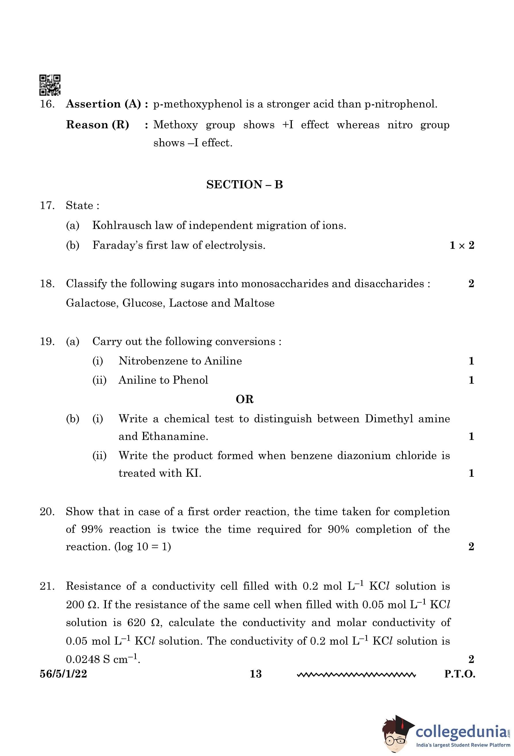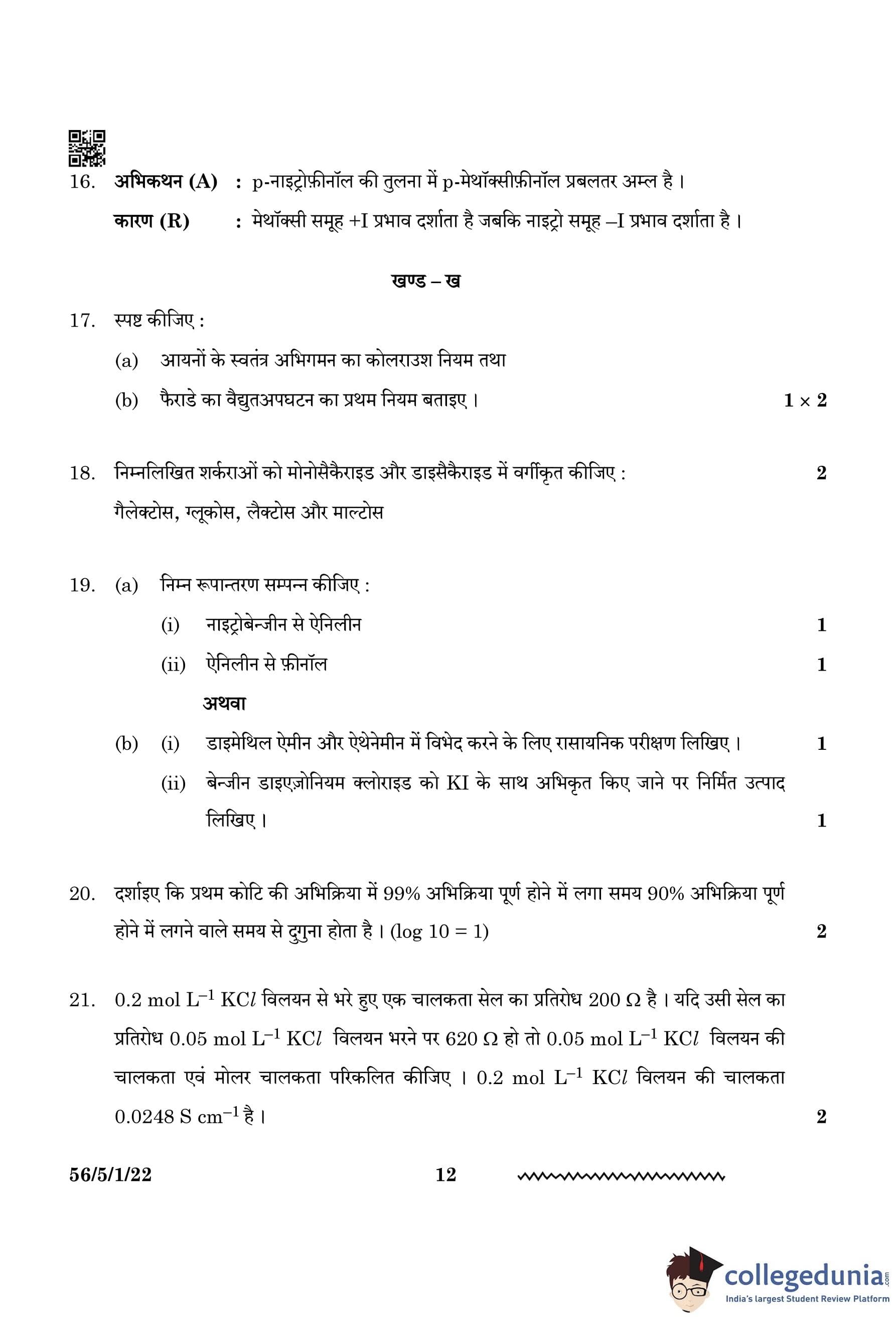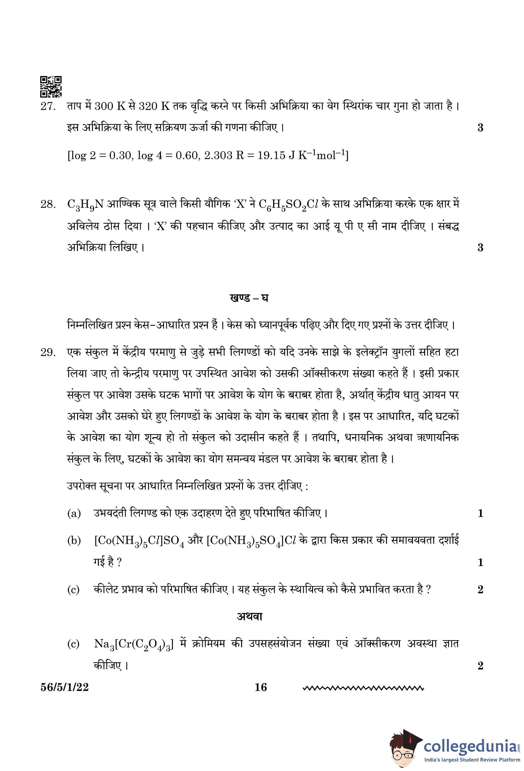 | CBSE Class 12 2024 Chemistry Question Paper with Answer Key | Check Solution |