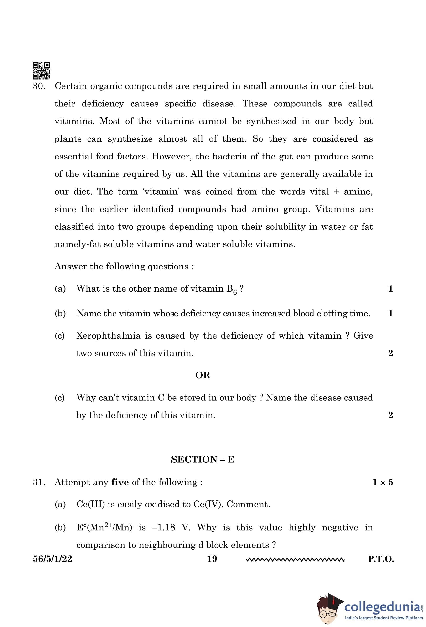 (c) Why can’t vitamin C be stored in our body? Name the disease caused by the deficiency of this vitamin.