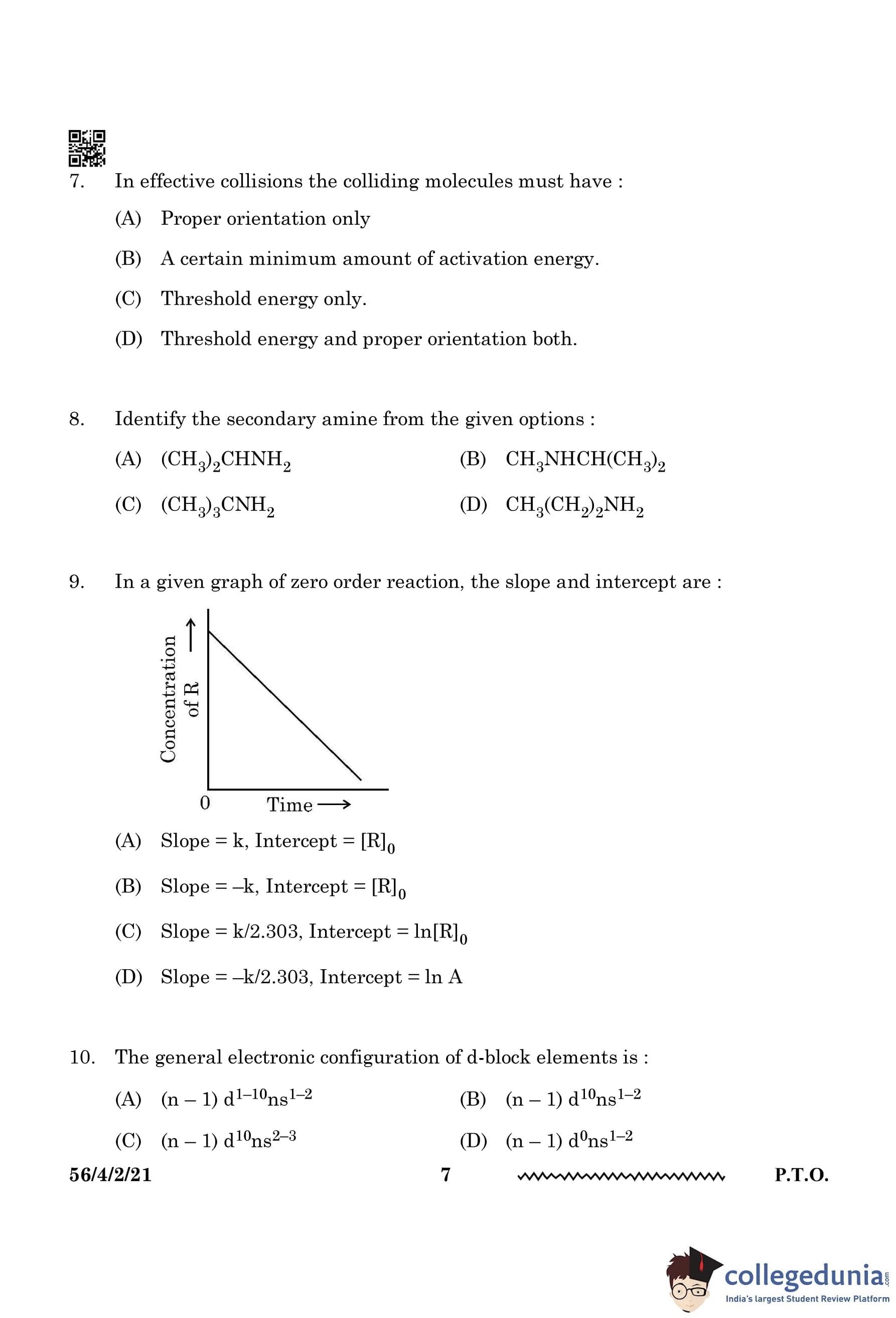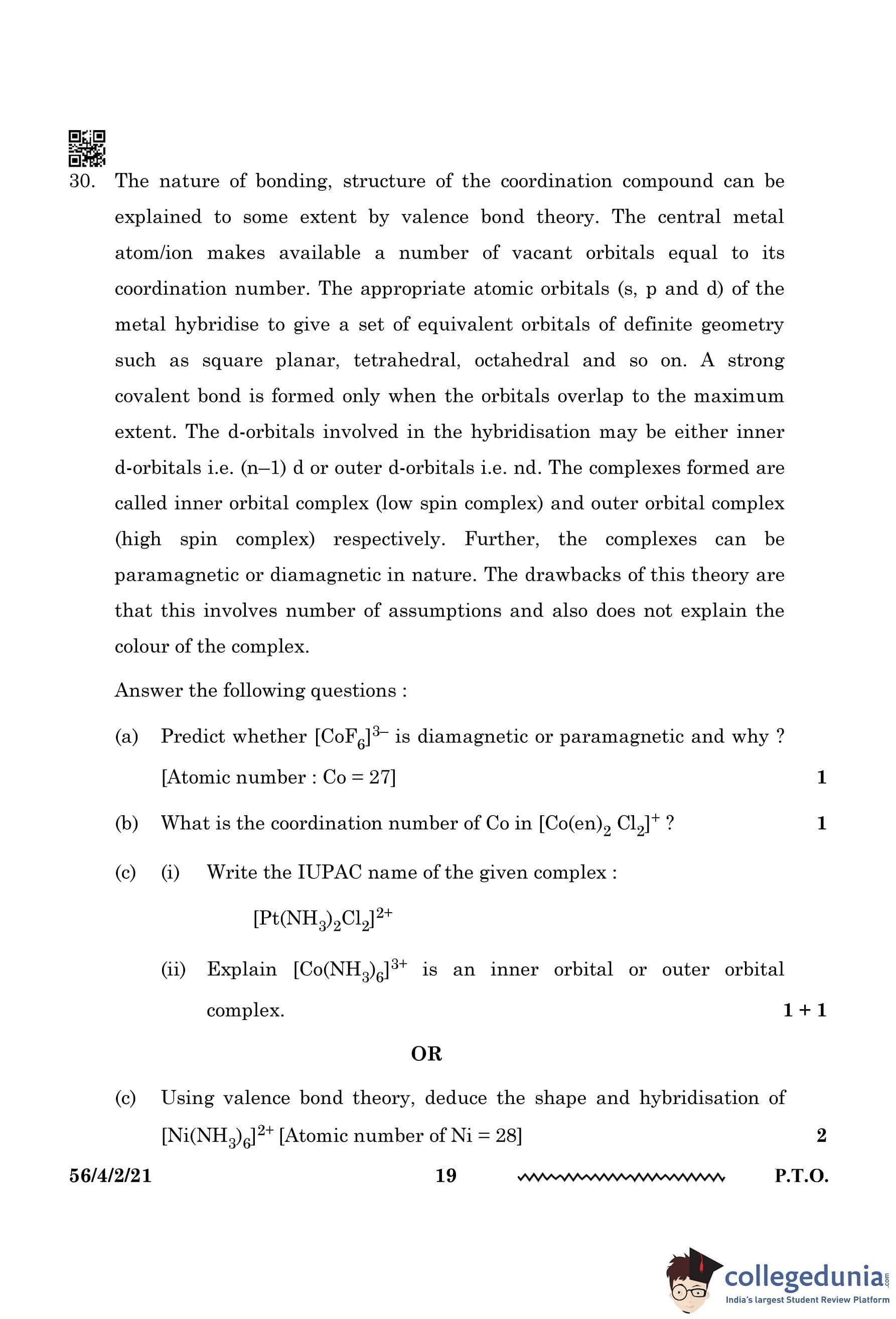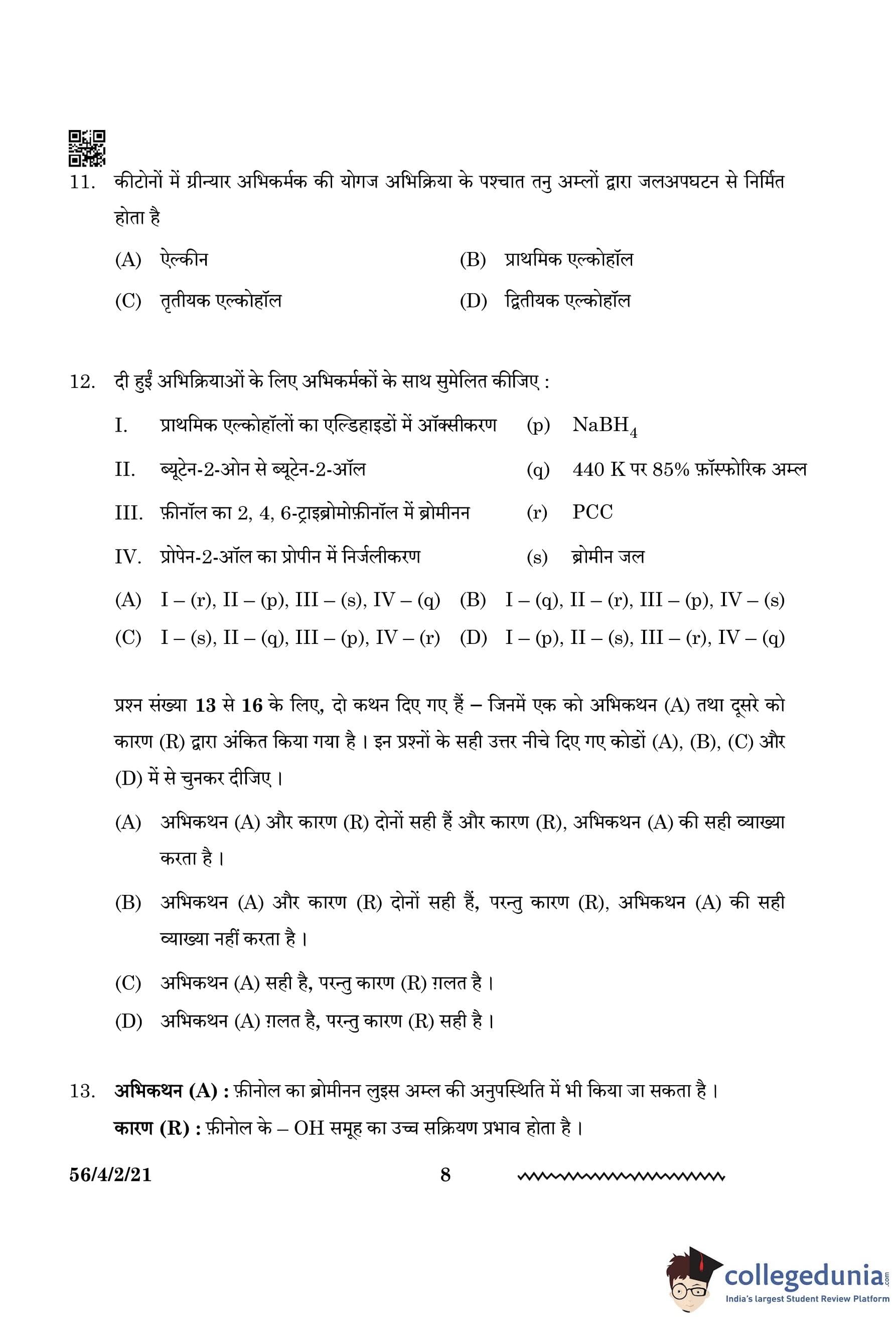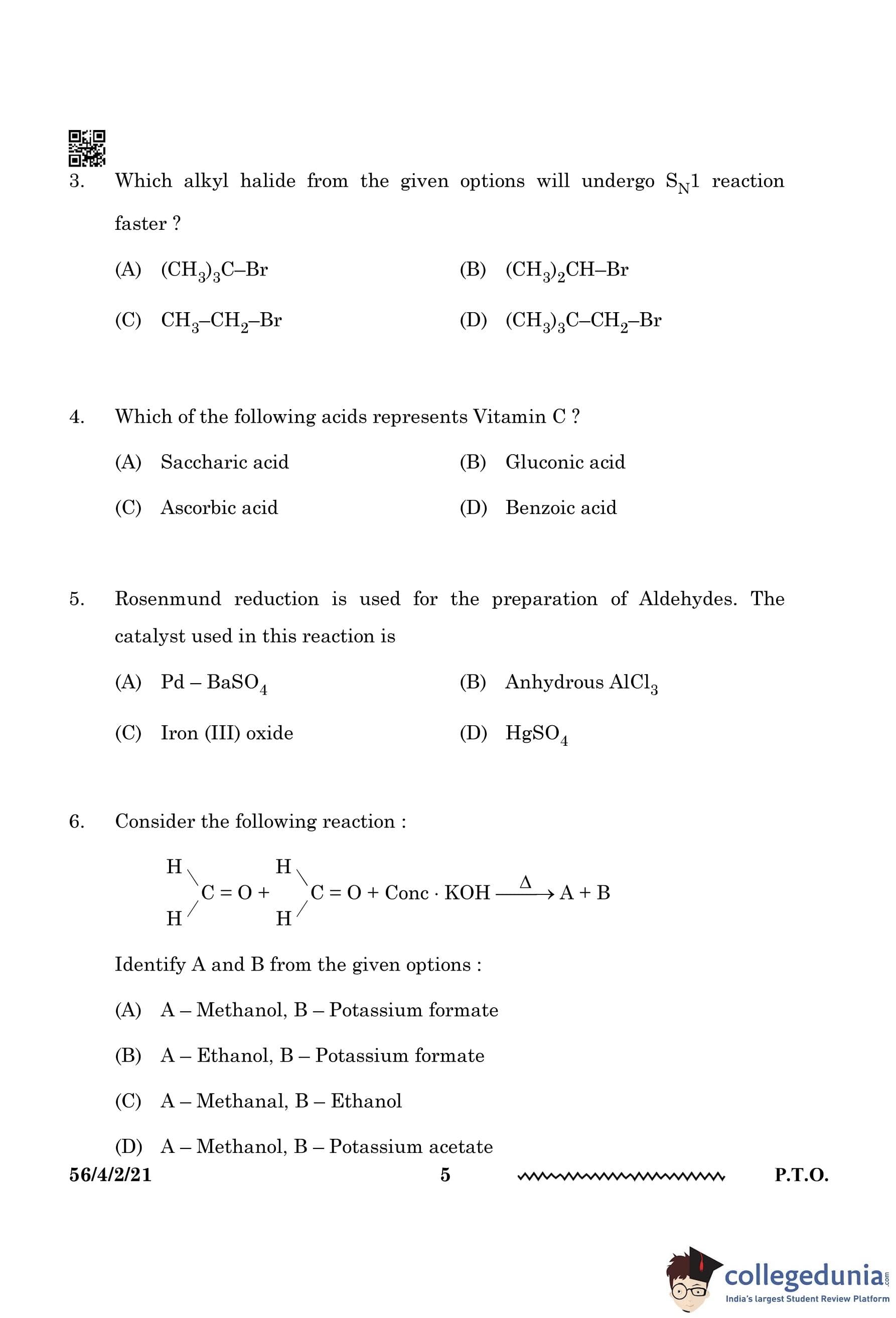 CBSE Class 12 Chemistry Question Paper 2024 PDF (Set 2 - 56/4/2) is available for download here. CBSE conducted the Chemistry exam on February 27, 2024, from 10:30 AM to 1:30 PM. The total marks for the theory paper are 70. The question paper contains 20% MCQ-based questions, 40% competency-based questions, and 40% short and long answer type questions.