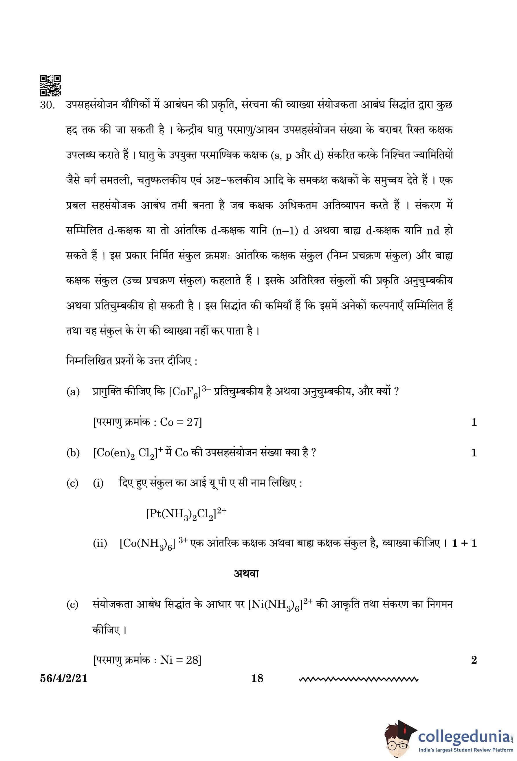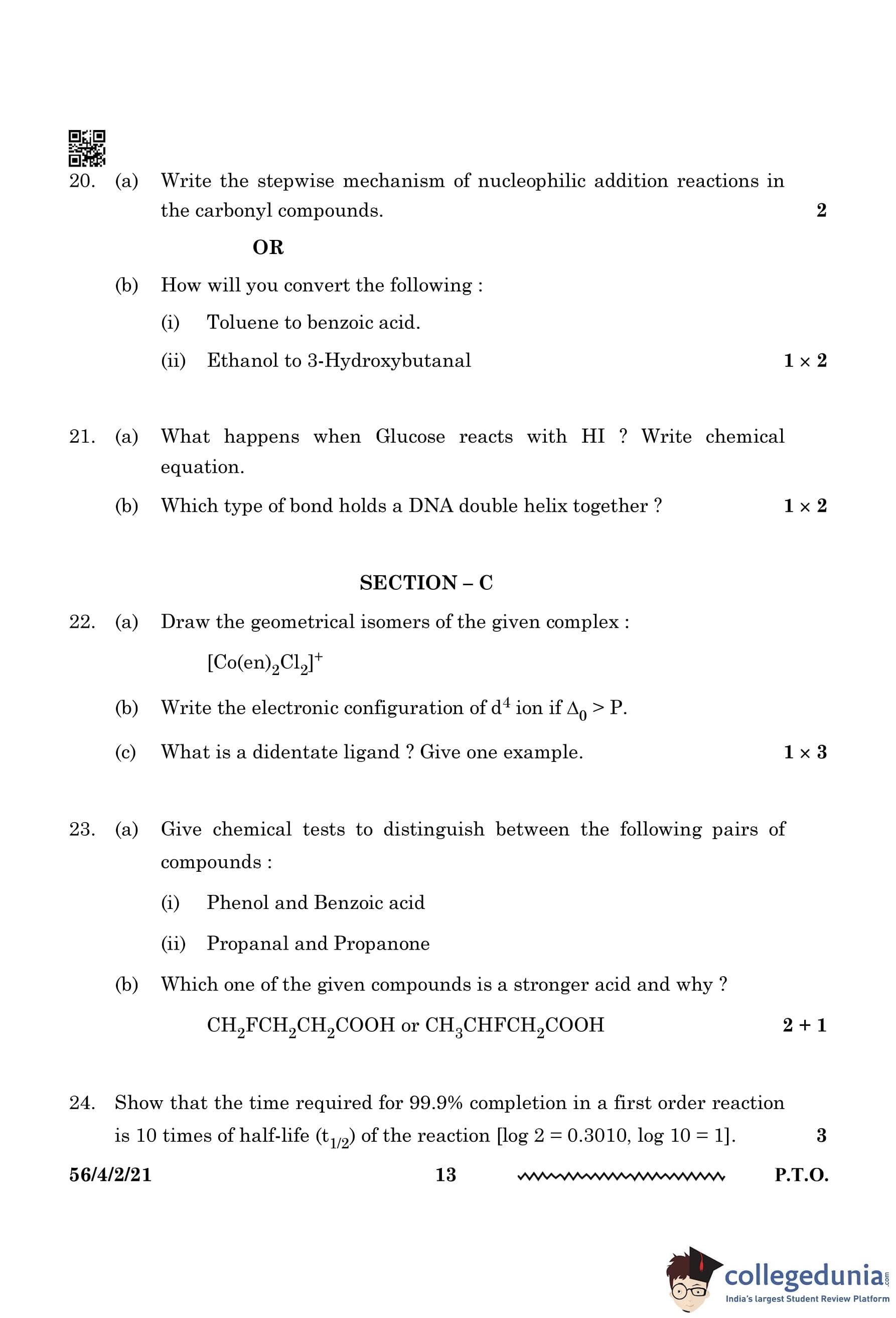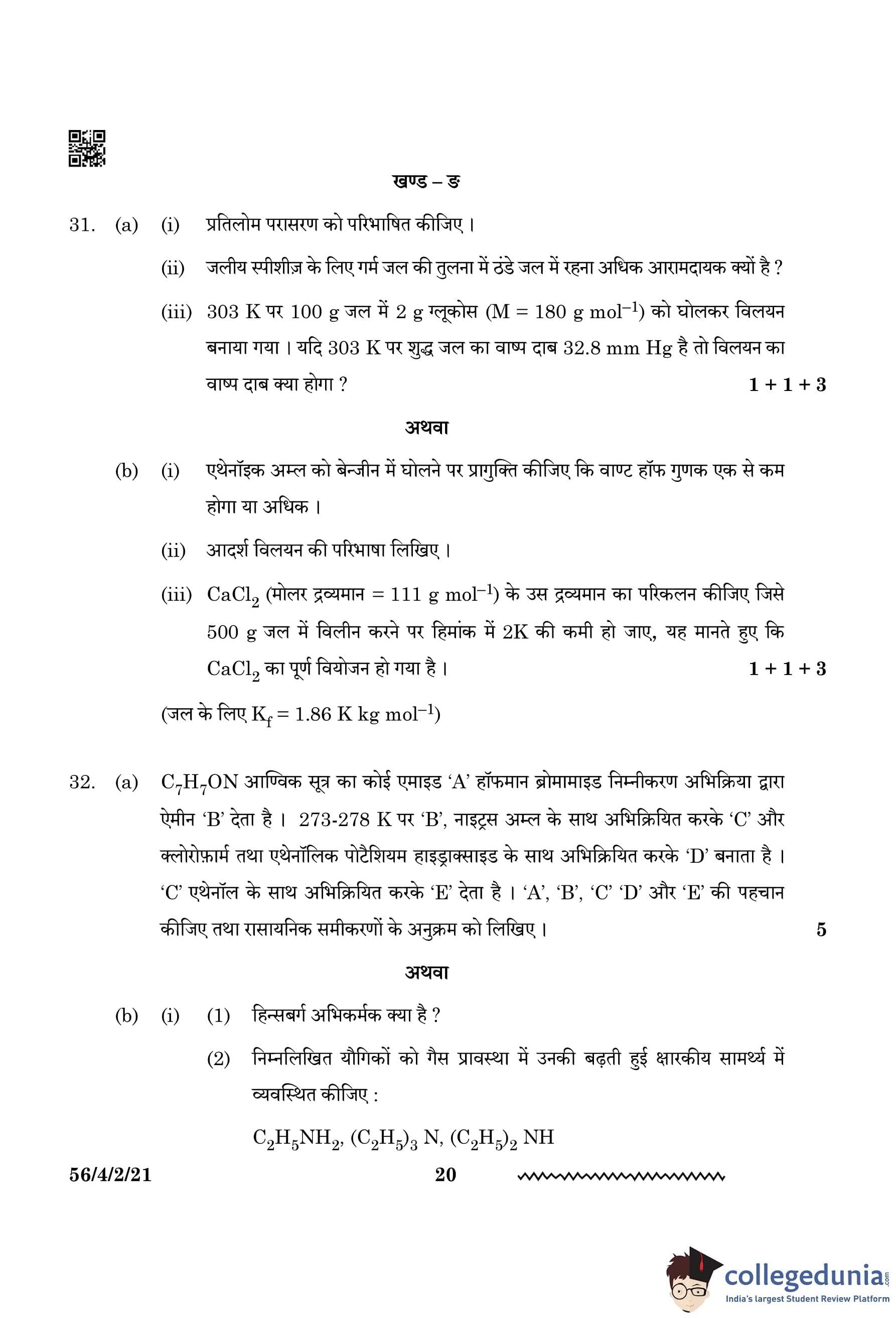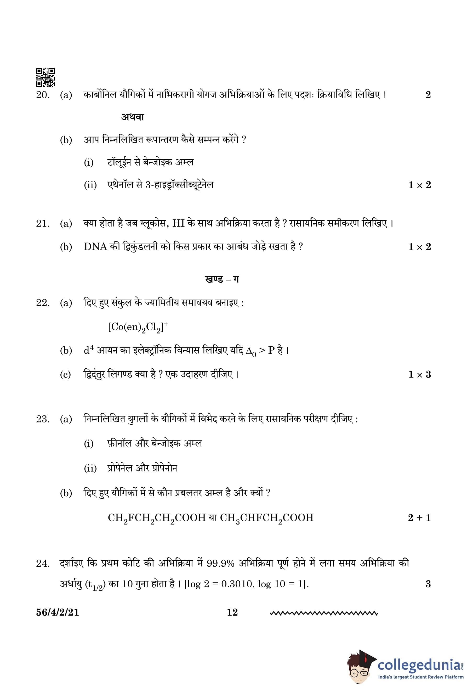 | CBSE Class 12 2024 Chemistry Question Paper with Answer Key | Check Solution |