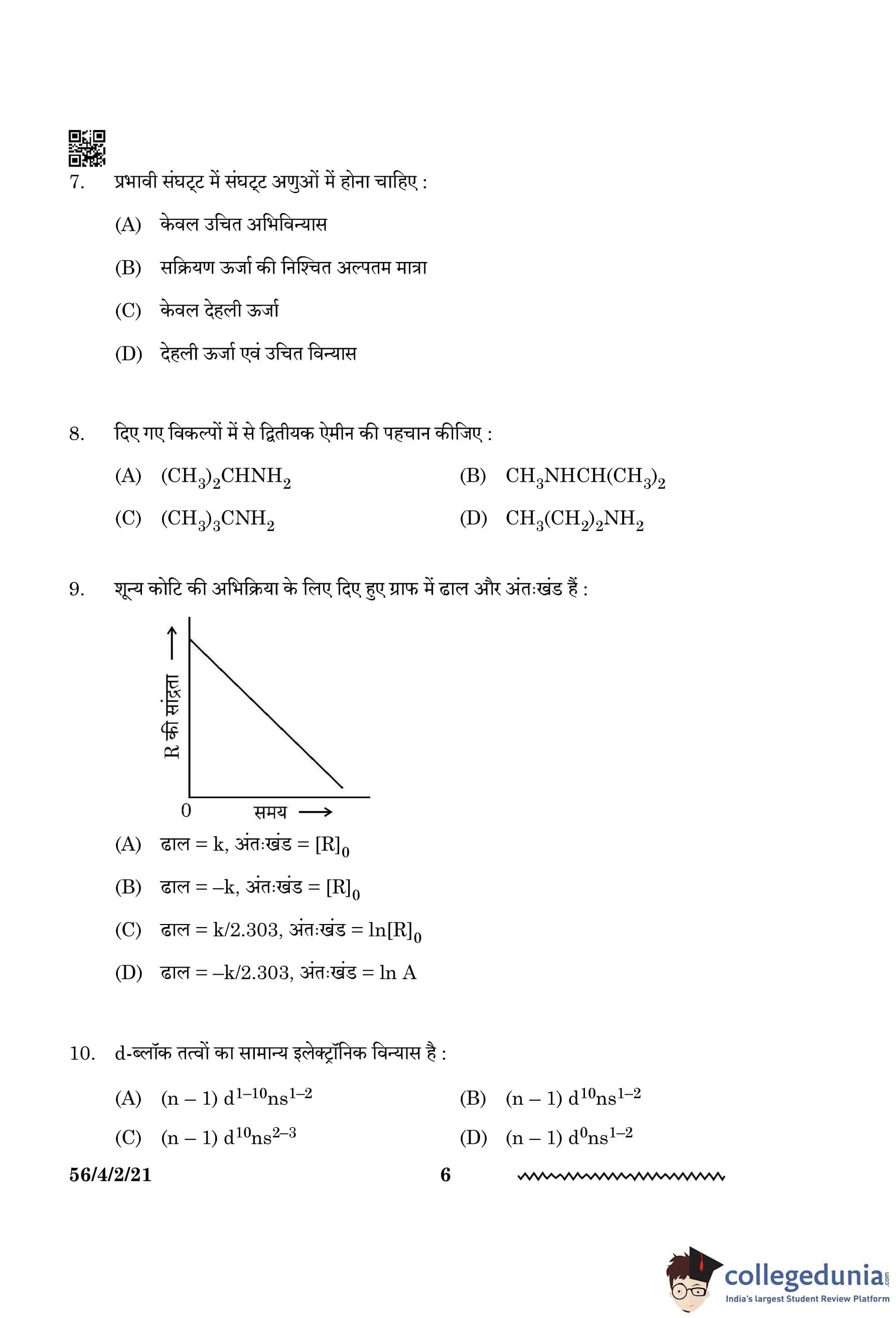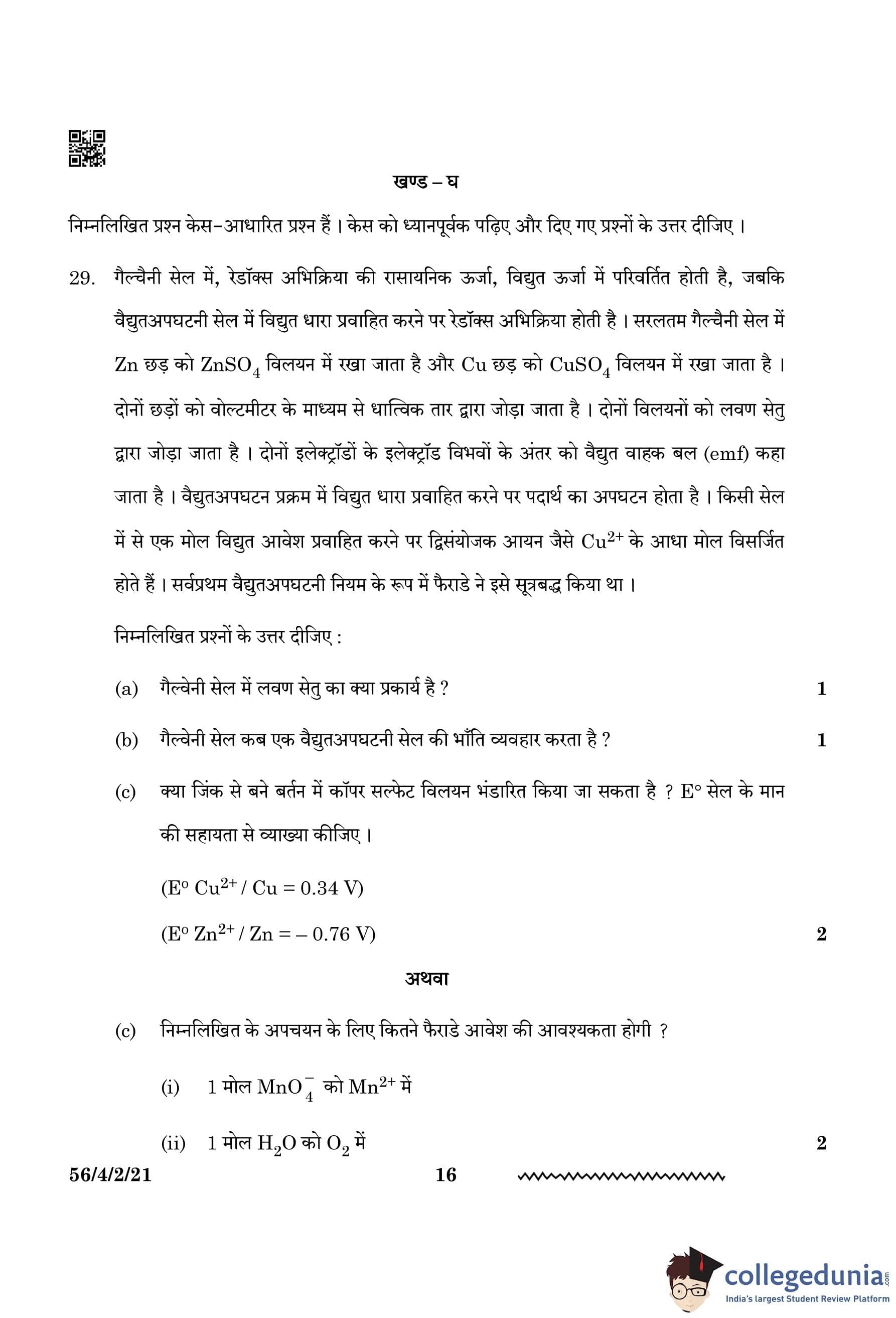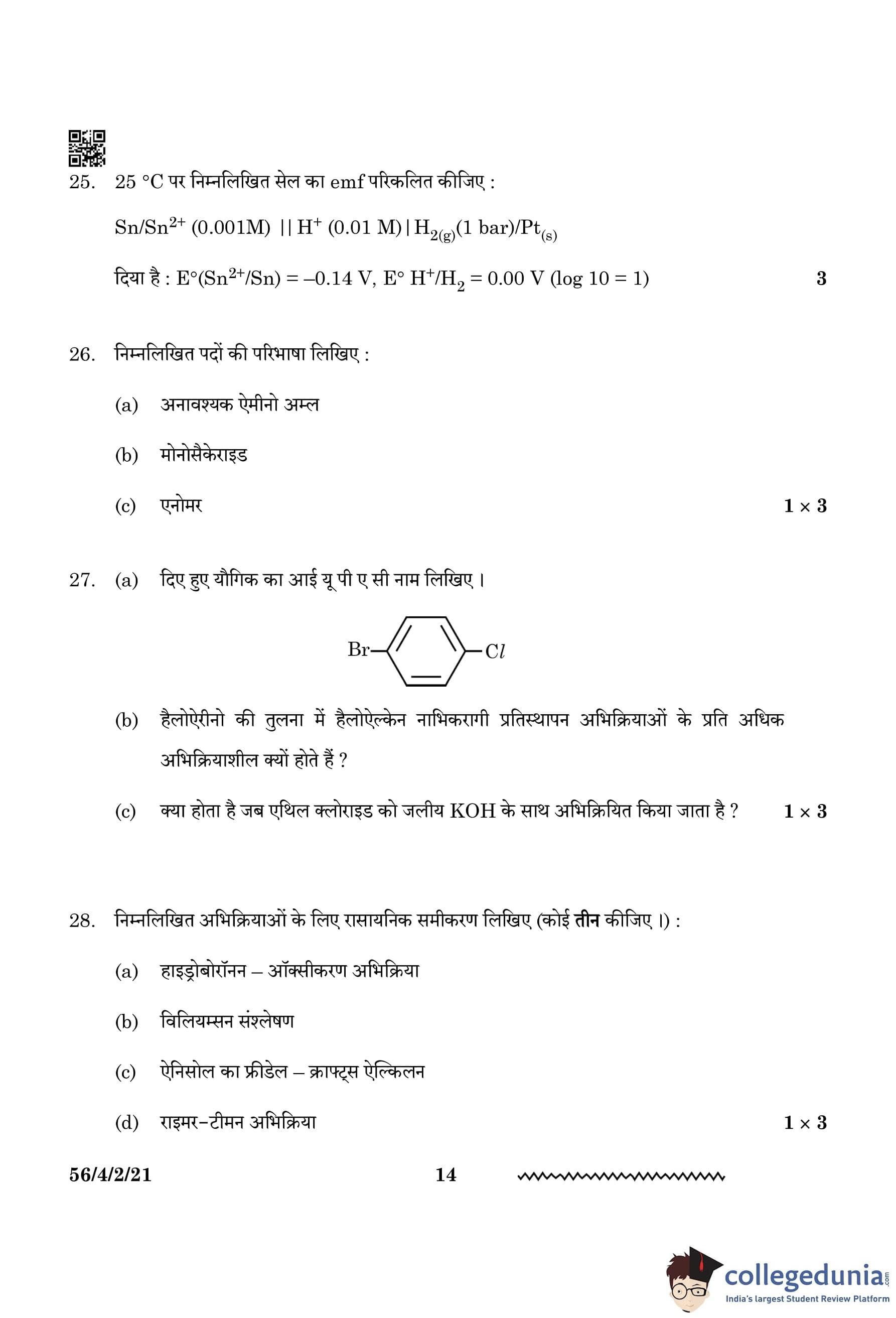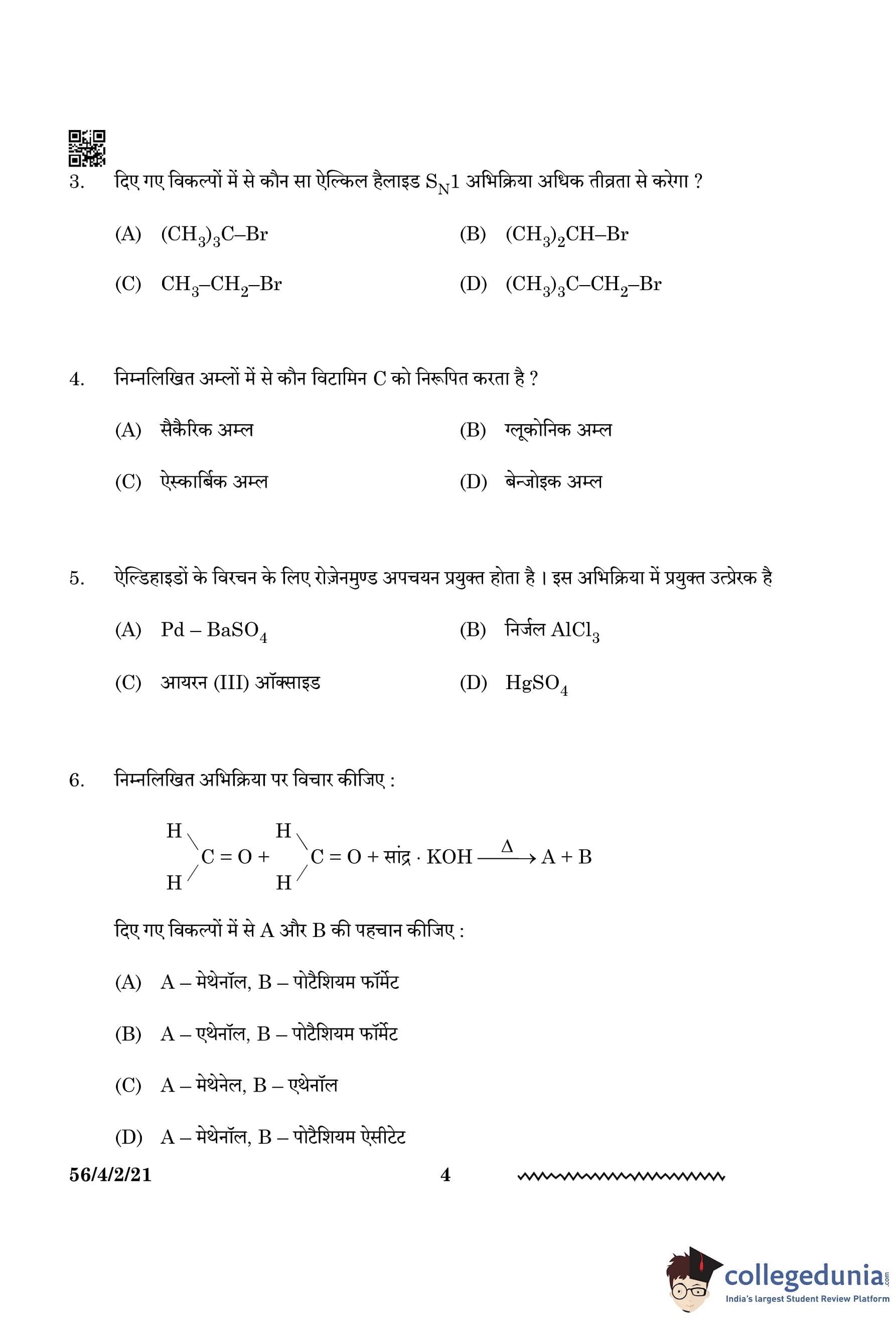 CBSE Class 12 Chemistry Question Paper 2024 (Set 2 - 56/4/2) with Answer Key