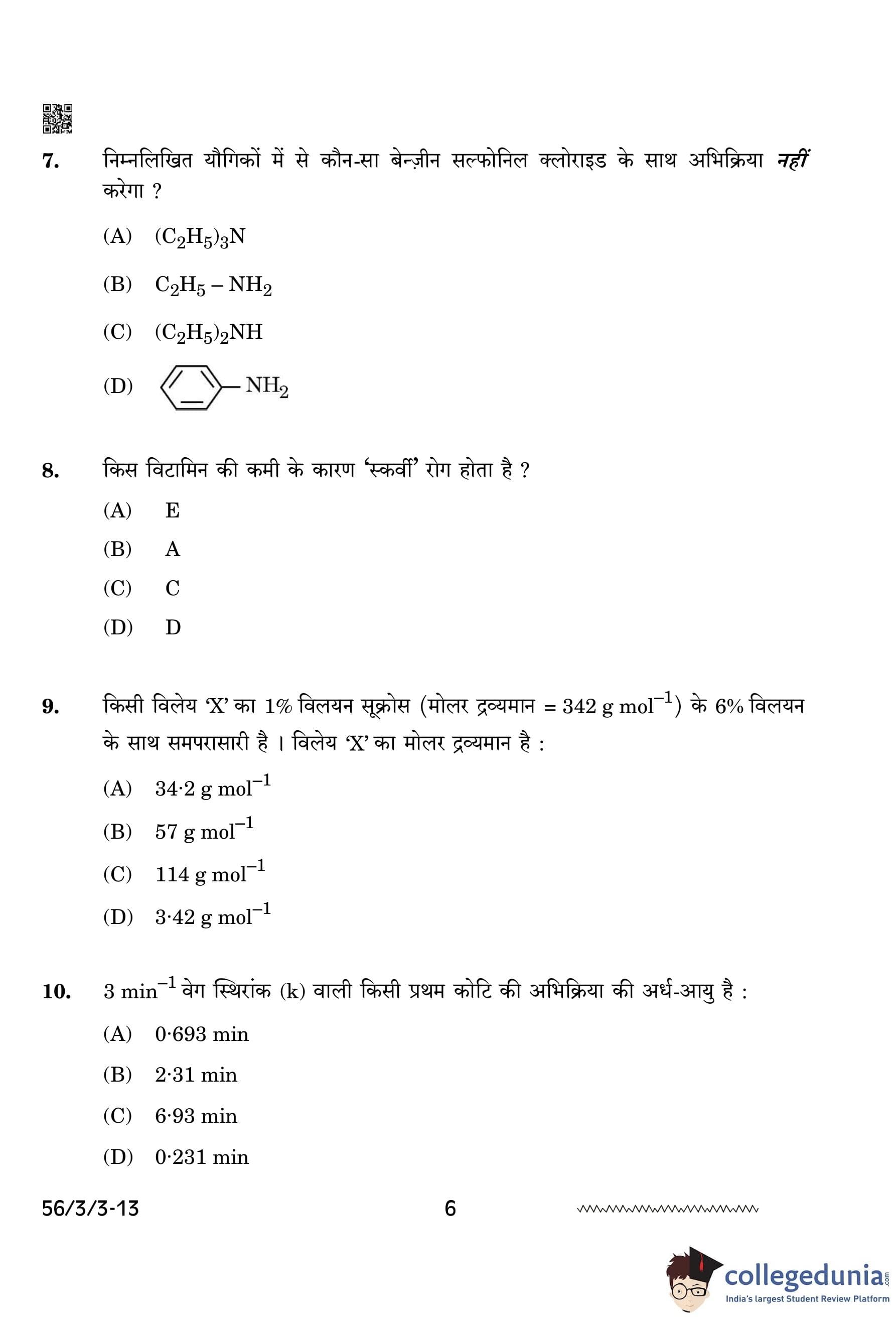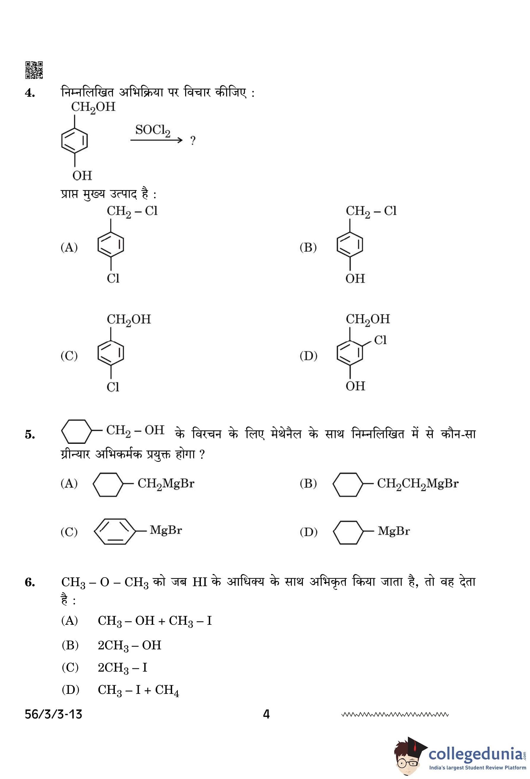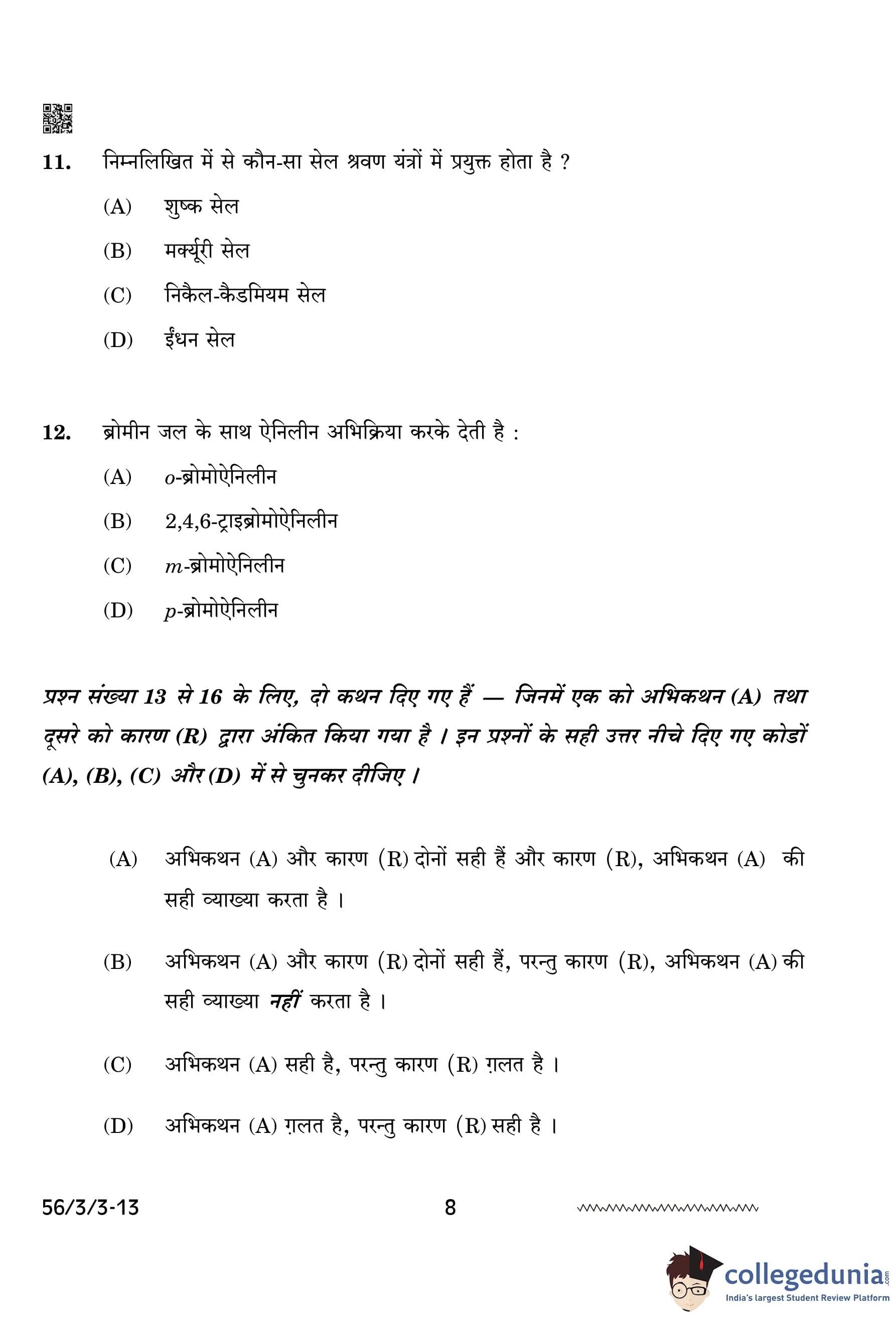 CBSE Class 12 Chemistry Question Paper 2024 (Set 3 - 56/3/3) with Answer Key