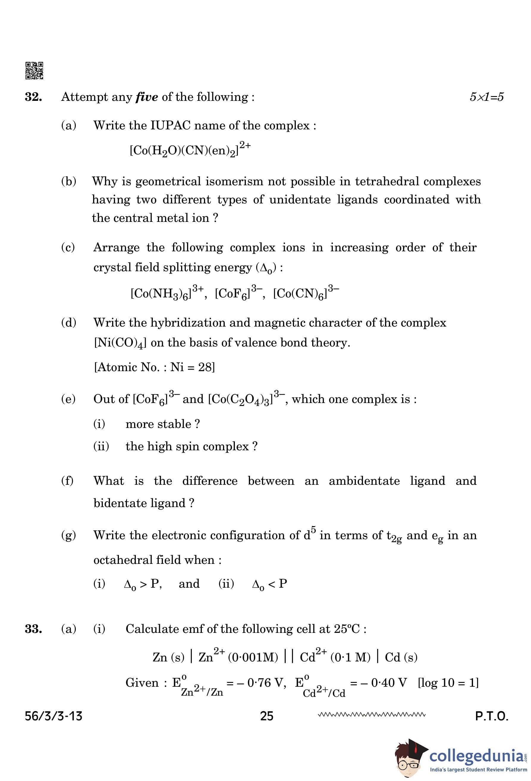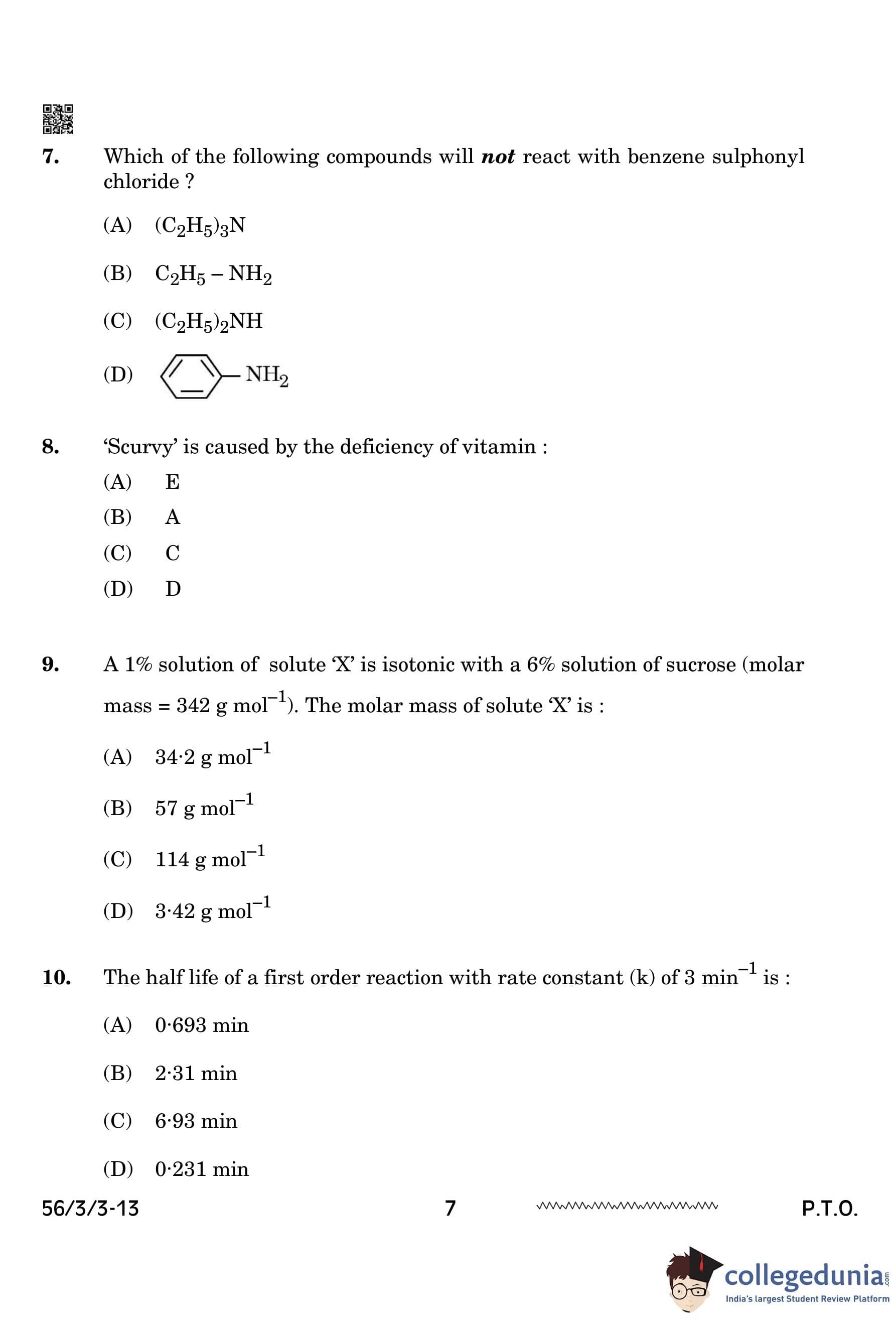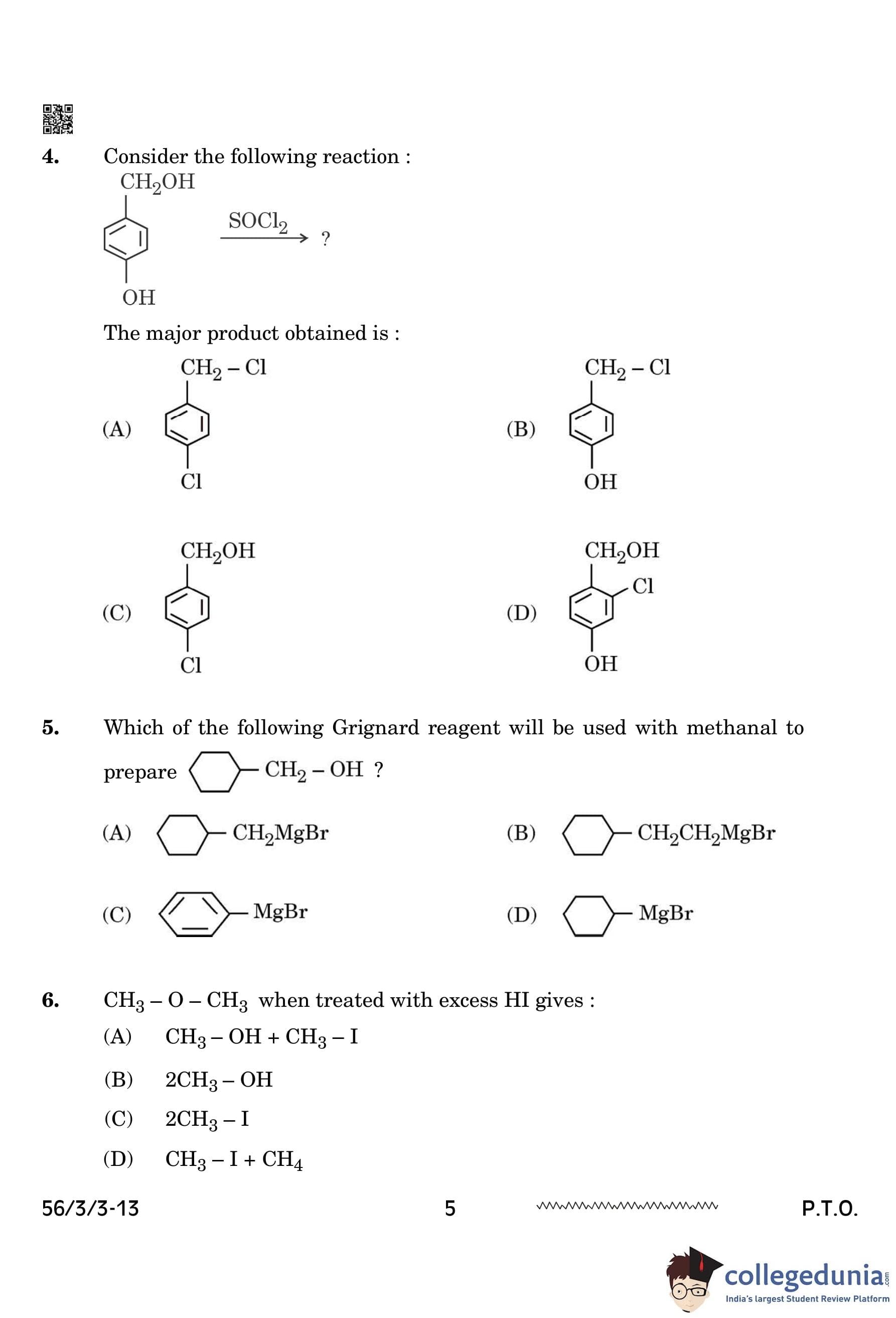 CBSE Class 12 Chemistry Question Paper 2024 (Set 3 - 56/3/3) with Answer Key
