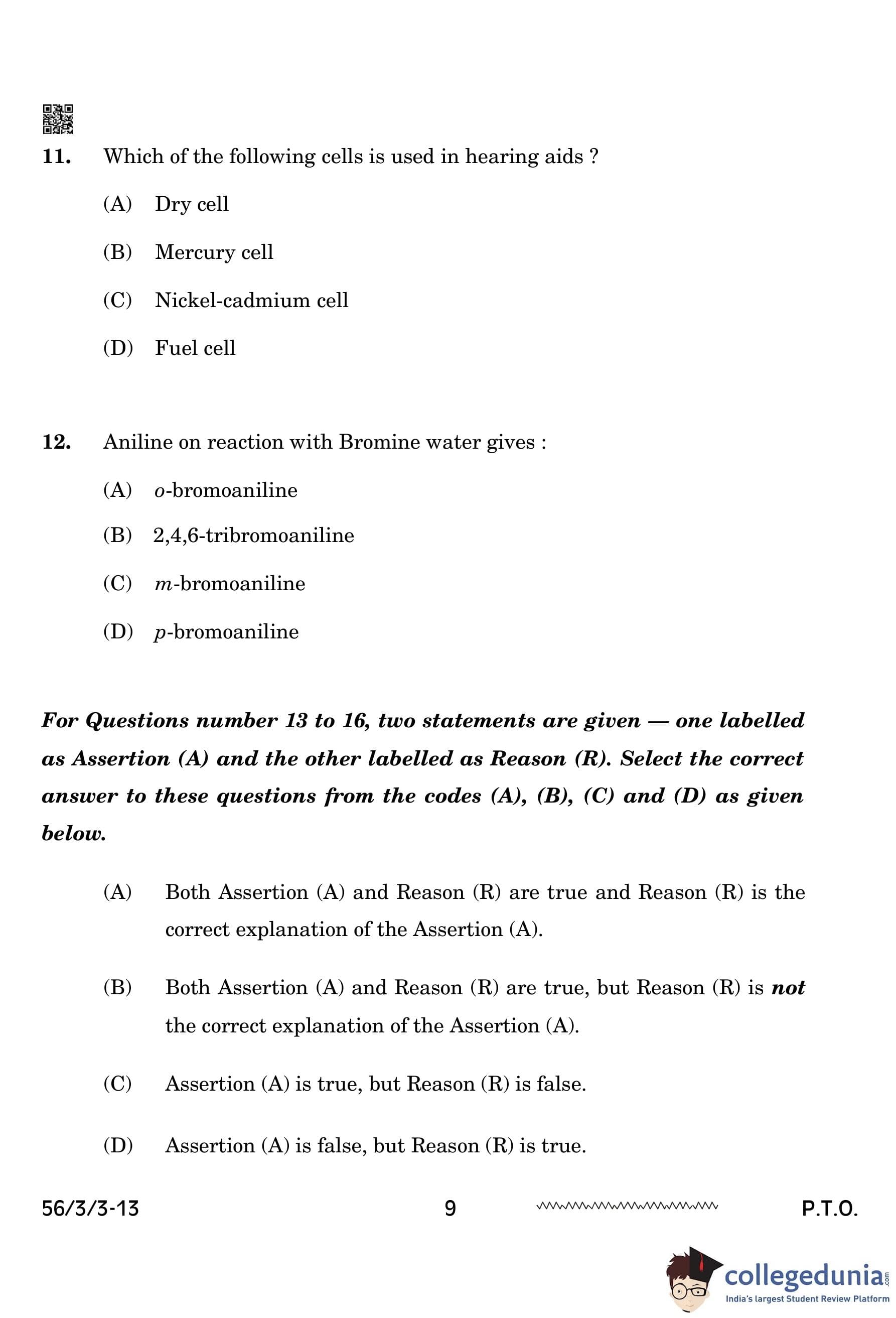 For Questions number 13 to 16, two statements are given one labelled as Assertion (A) and the other labelled as Reason (R). Select the correct answer to these questions from the codes (A), (B), (C) and (D) as given below.