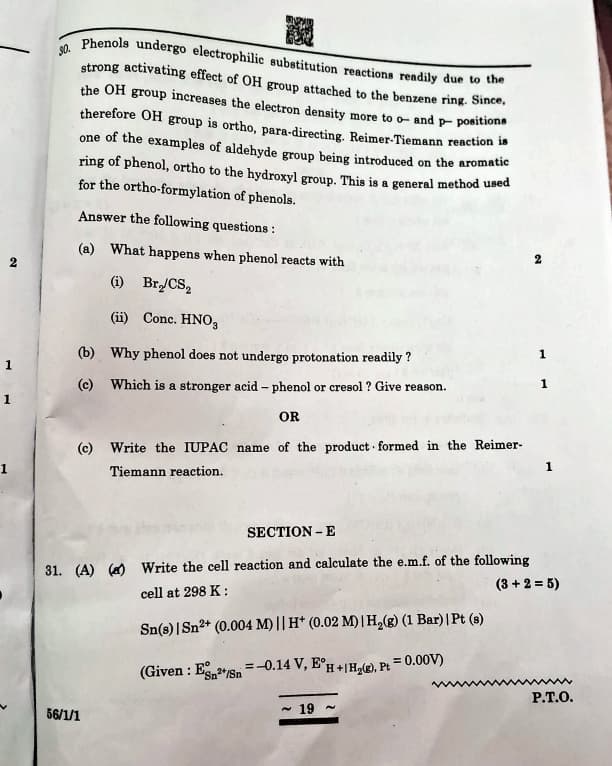 (c) Which is a stronger acid – phenol or cresol? Give reason.