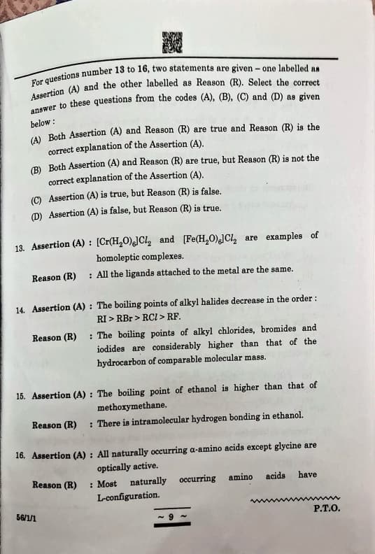 Reason (R): The boiling points of alkyl chlorides, bromides and iodides are considerably higher than that of the hydrocarbon of comparable molecular mass.