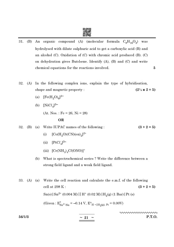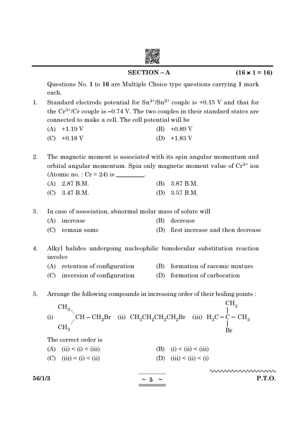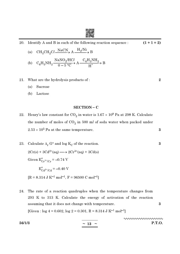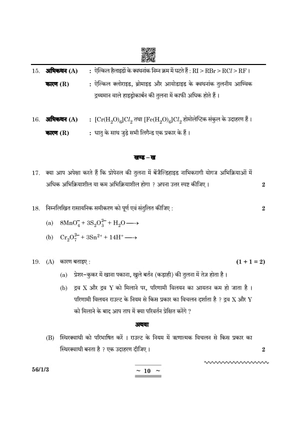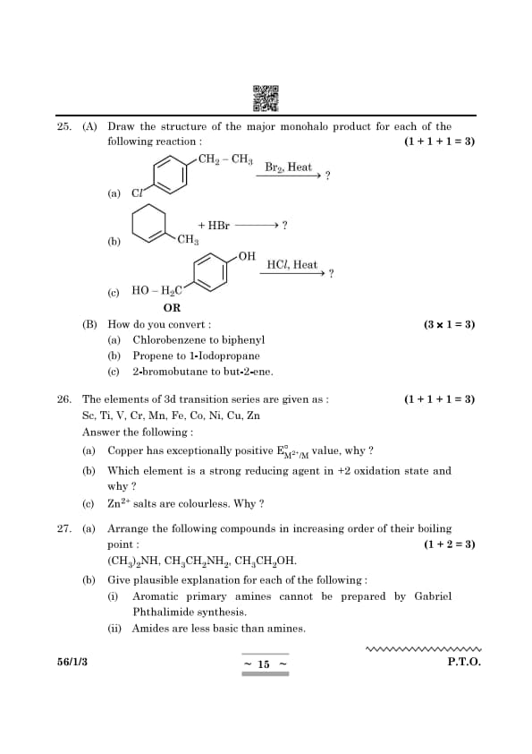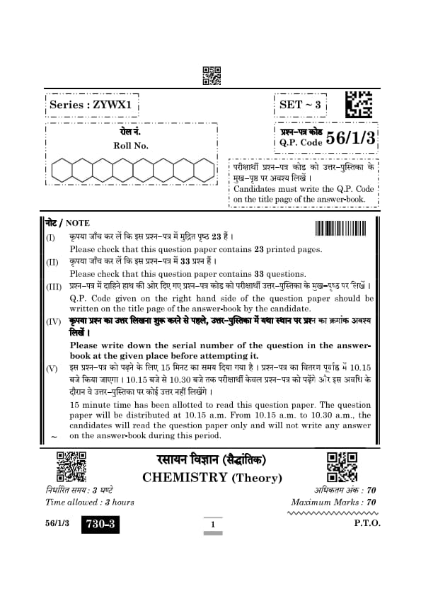 CBSE Class 12 Chemistry Question Paper 2025 PDF (Set 3) is available for download here.