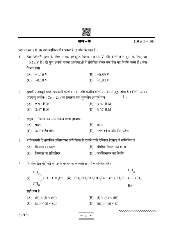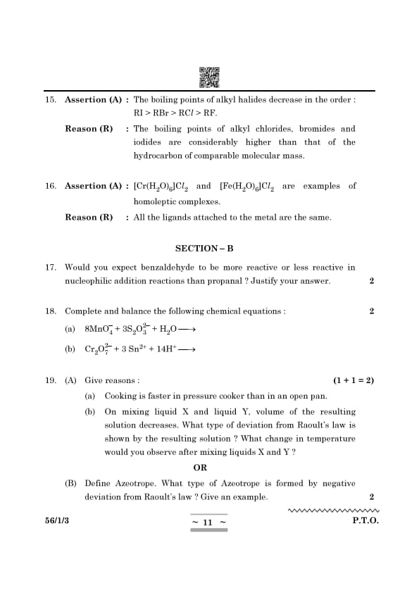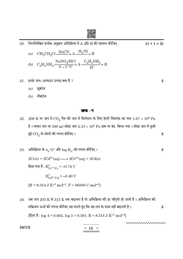 | CBSE Class 12 2025 Chemistry Question Paper with Answer Key | Download | Check Solution |