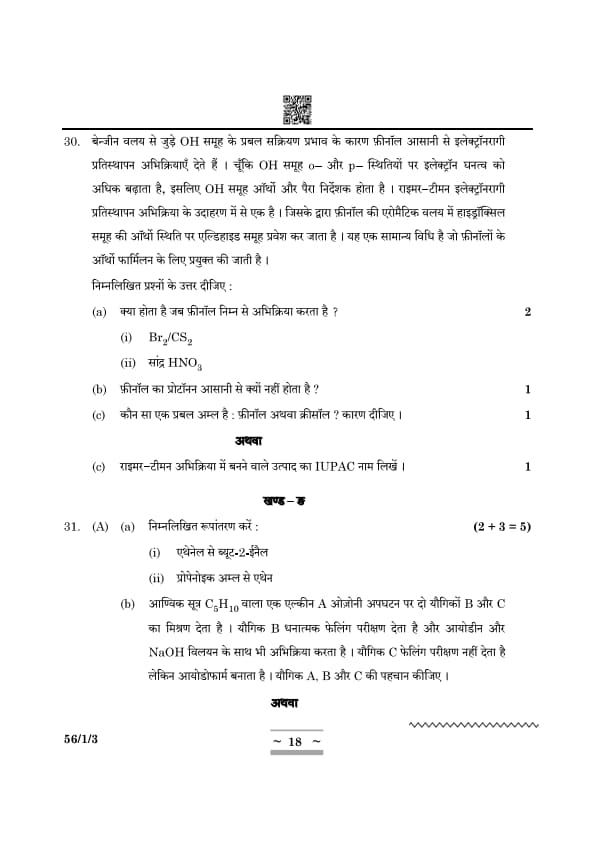 CBSE Class 12 Chemistry exam is being conducted today on February 27, 2025, from 10:30 AM to 1:30 PM.The Chemistry theory paper has 70 marks, while 30 marks are allocated for the practical assessment. The paper is divided into Physical, Organic, and Inorganic Chemistry, and it includes numerical, conceptual, and application-based problems. The question paper includes multiple-choice questions (1 mark each), short-answer questions (3 marks each), and long-answer questions (5 marks each).