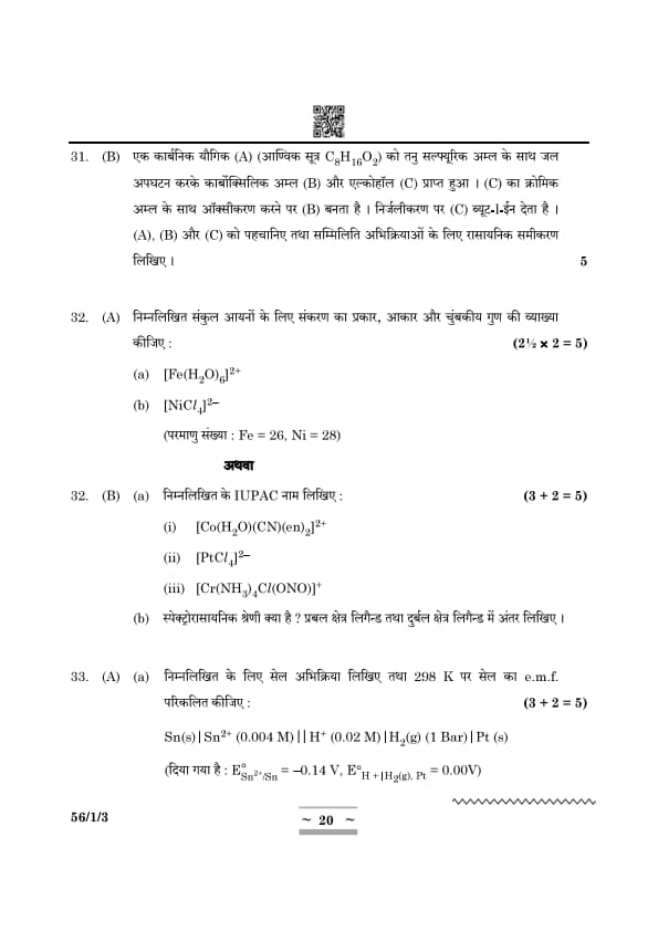 CBSE Class 12 Chemistry Question Paper 2025 (Set 3) with Answer Key
