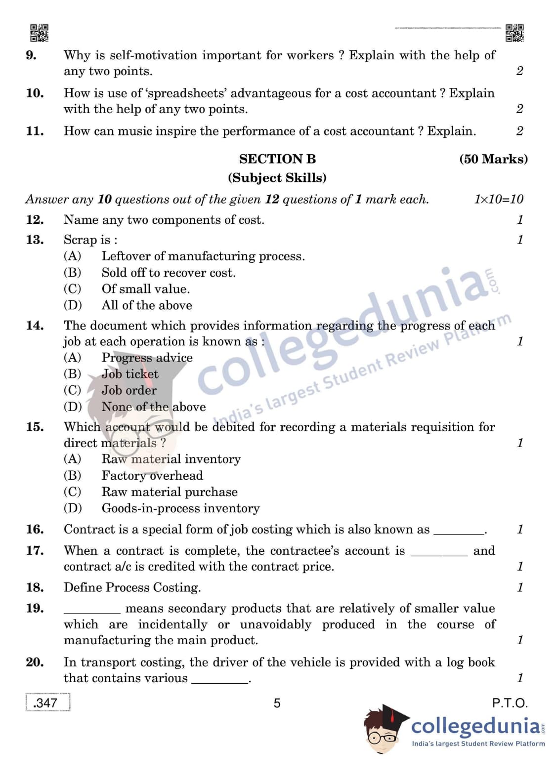 | CBSE Class 12 Cost Accounting Question Paper 2020 PDF | CBSE Class 12 Cost Accounting Answer Key 2020 PDF |