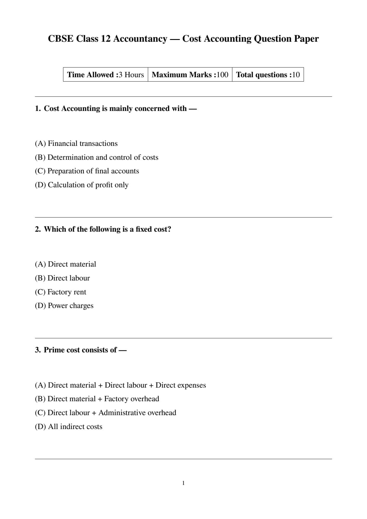 | CBSE Class 12 Cost Accounting Question Paper 2026 with Solution PDF | Download PDF | Check Solutions |