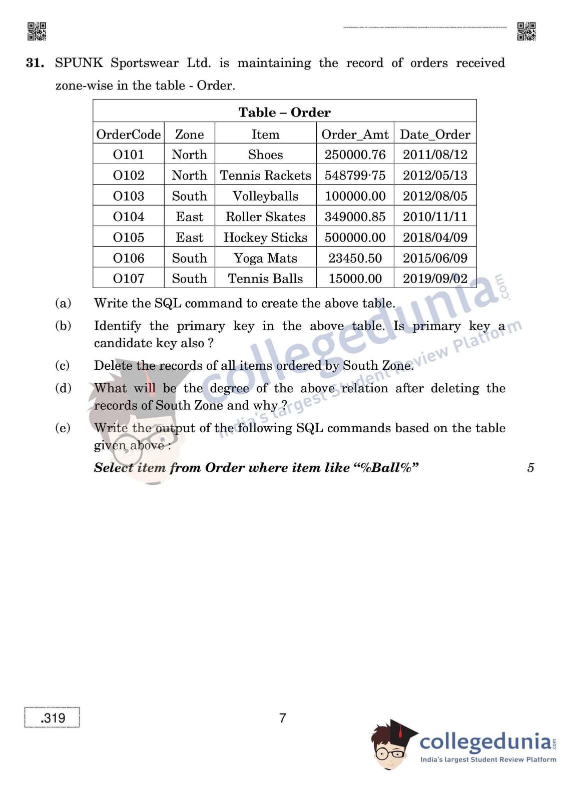 CBSE Class 12 Database Management Applications Question Paper 2020 with Answer Key (February 20)