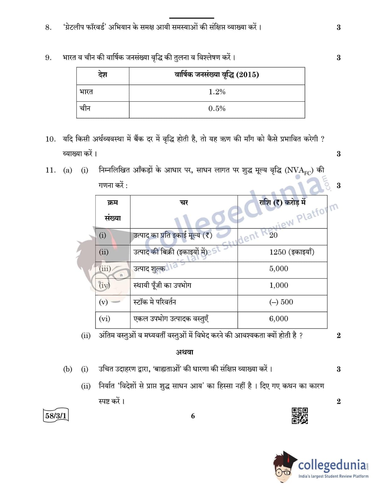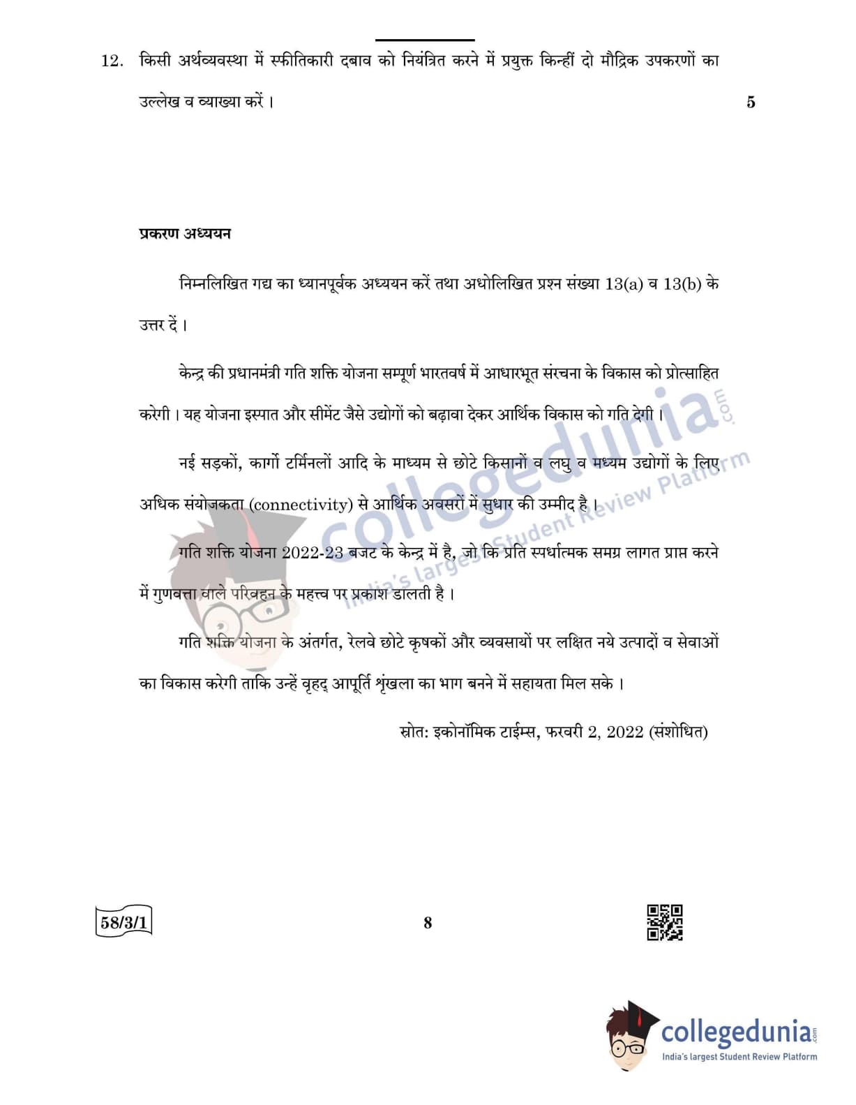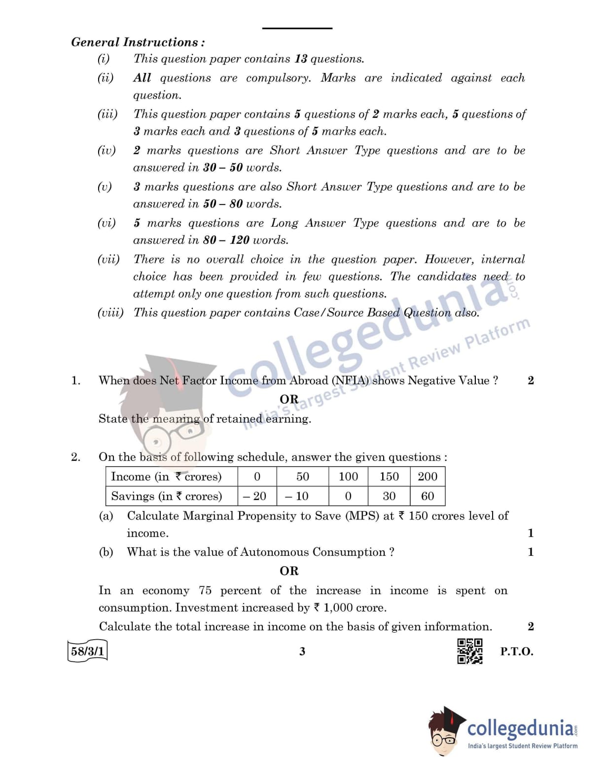 CBSE Class 12 Economics Question Paper 2022 with Answer Key (May 28, Set 1 - 58/3/1- Morning Session)