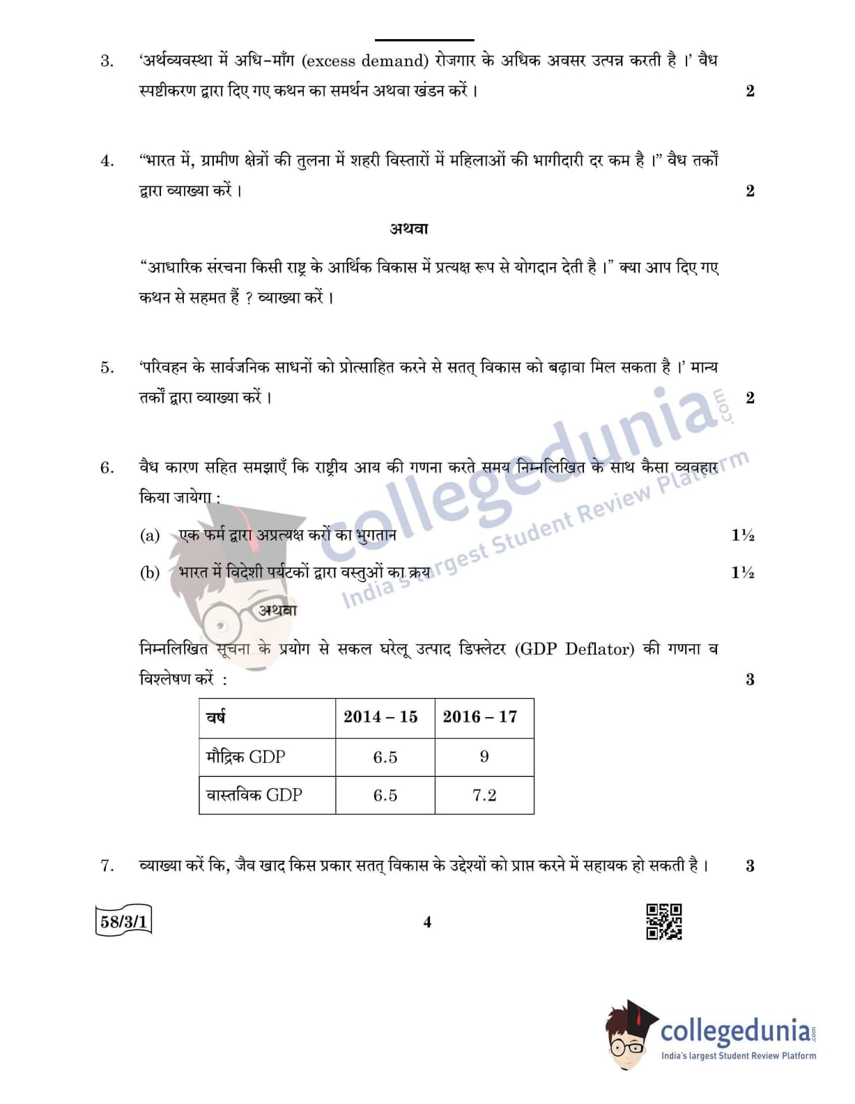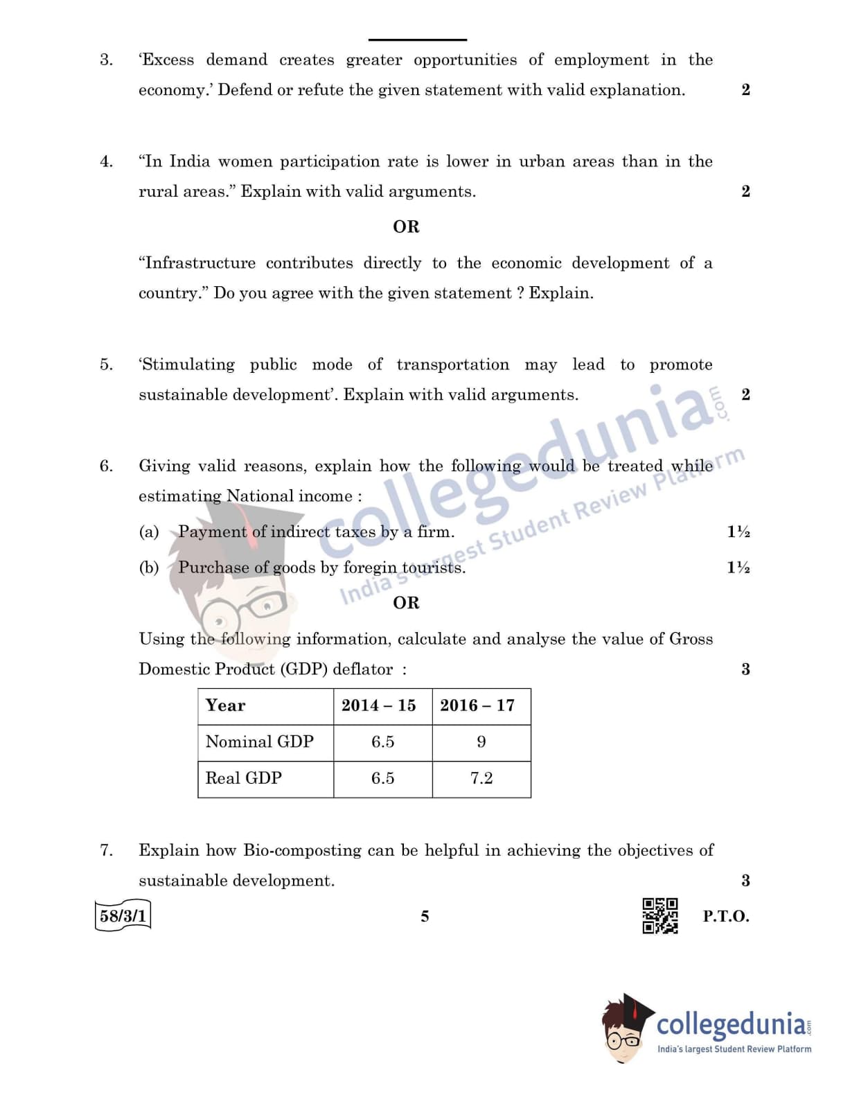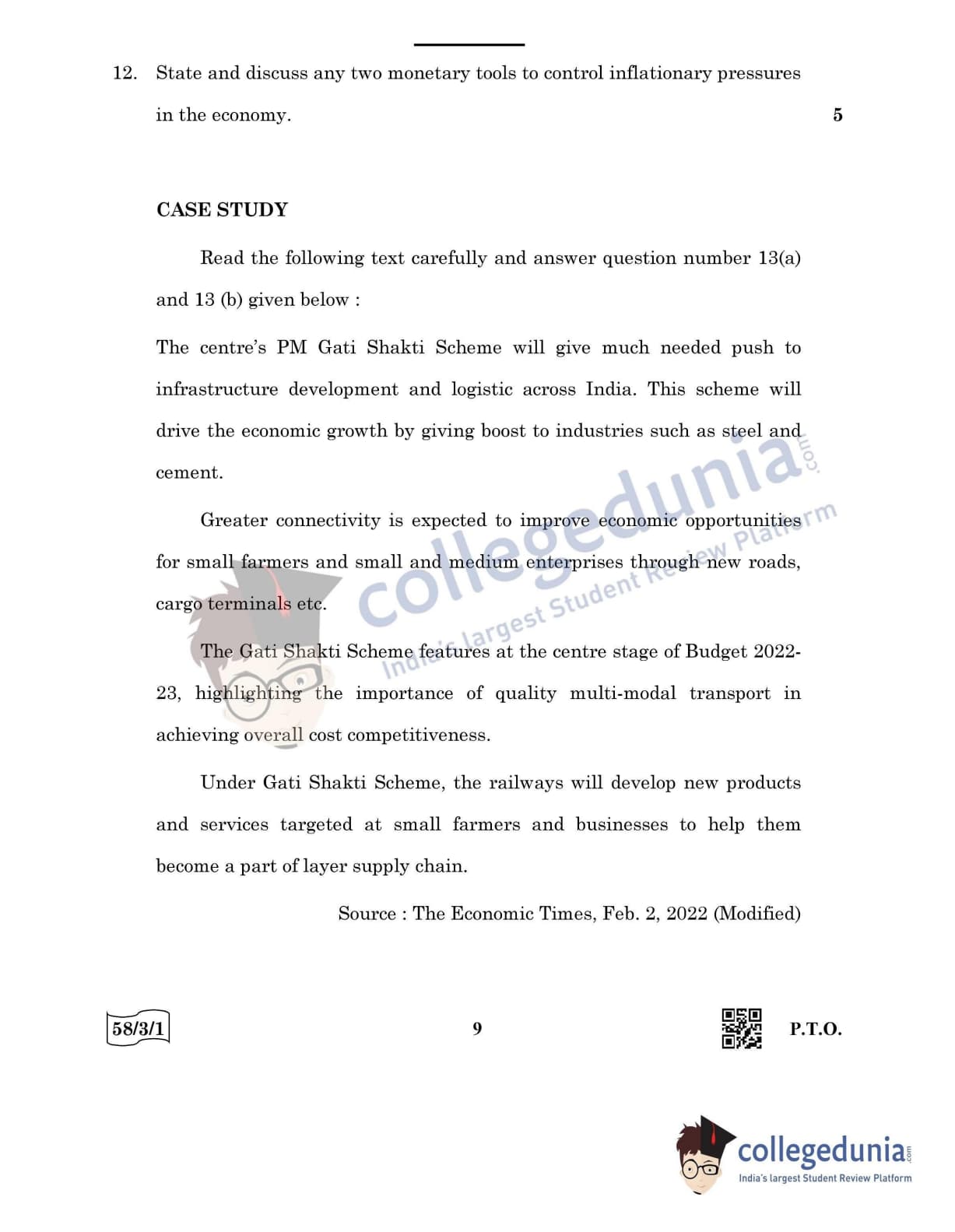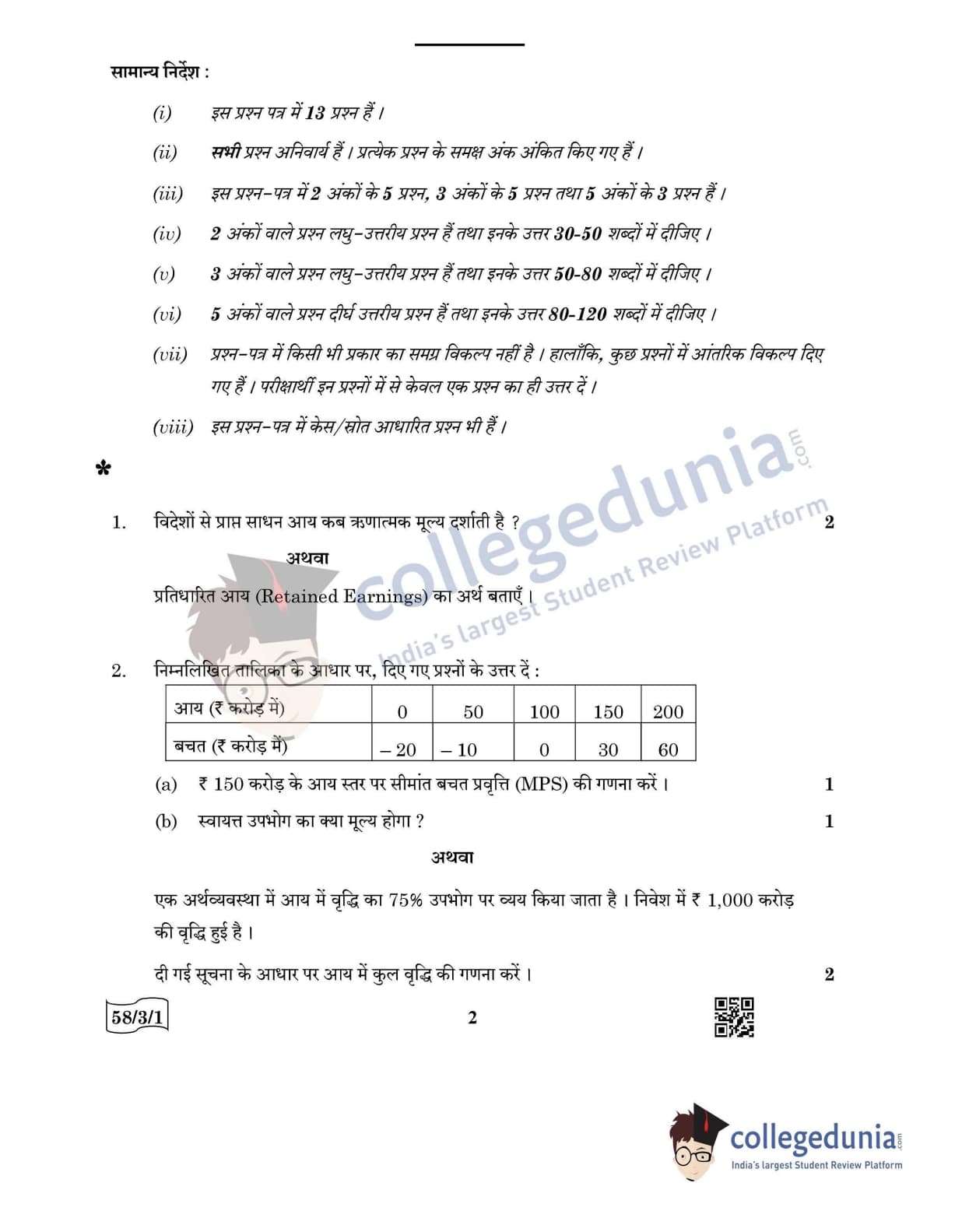 CBSE Class 12 Economics Question Paper 2022 with Answer Key (May 28, Set 1 - 58/3/1- Morning Session)