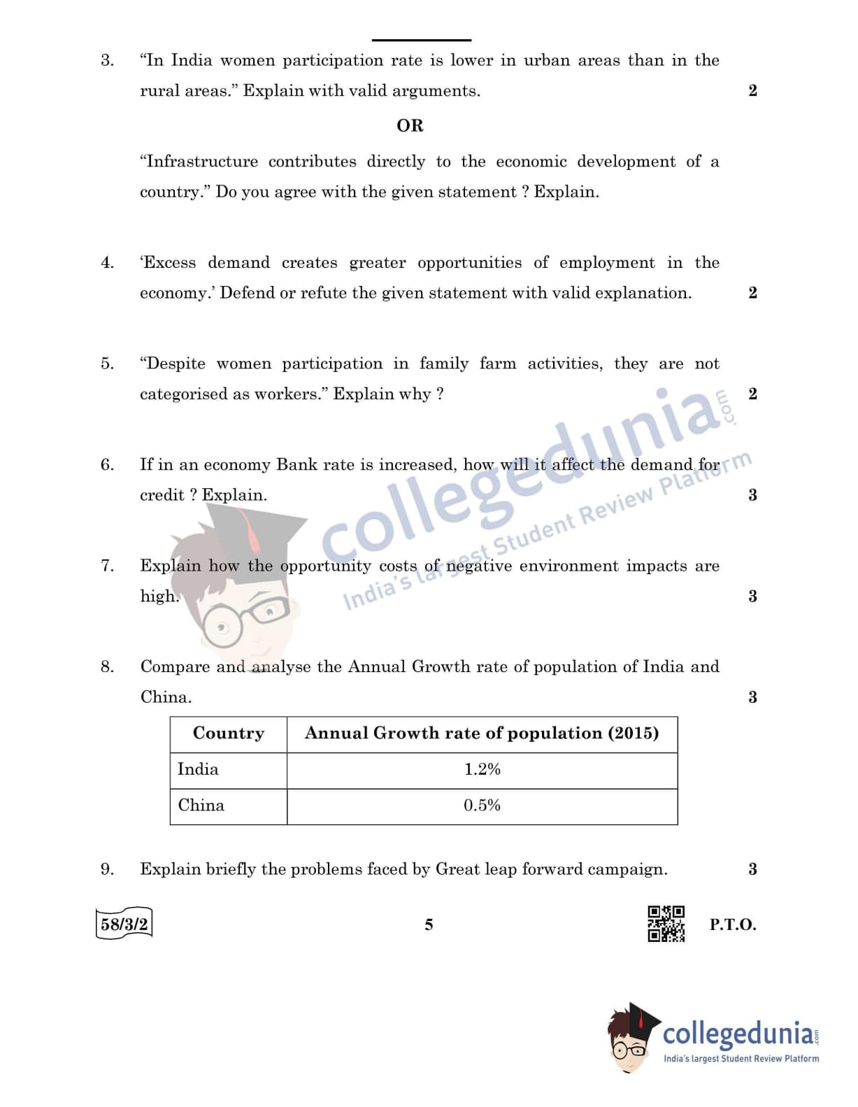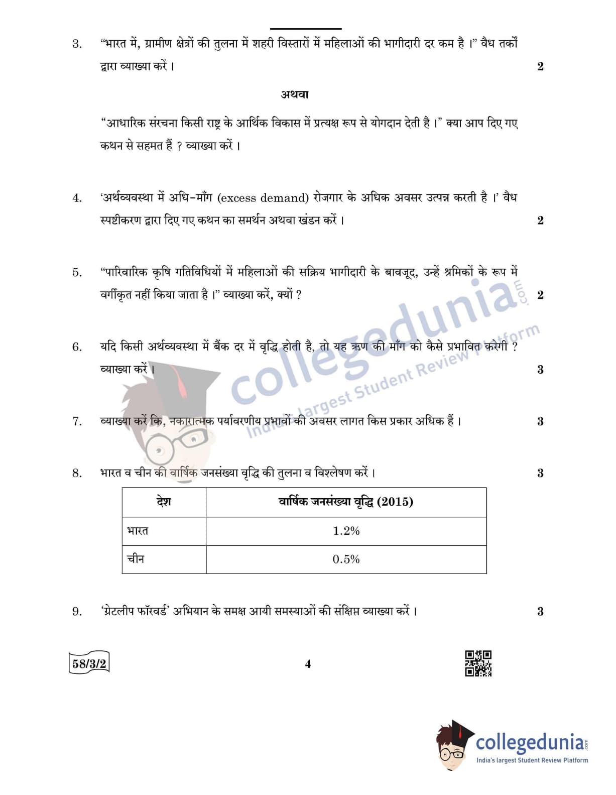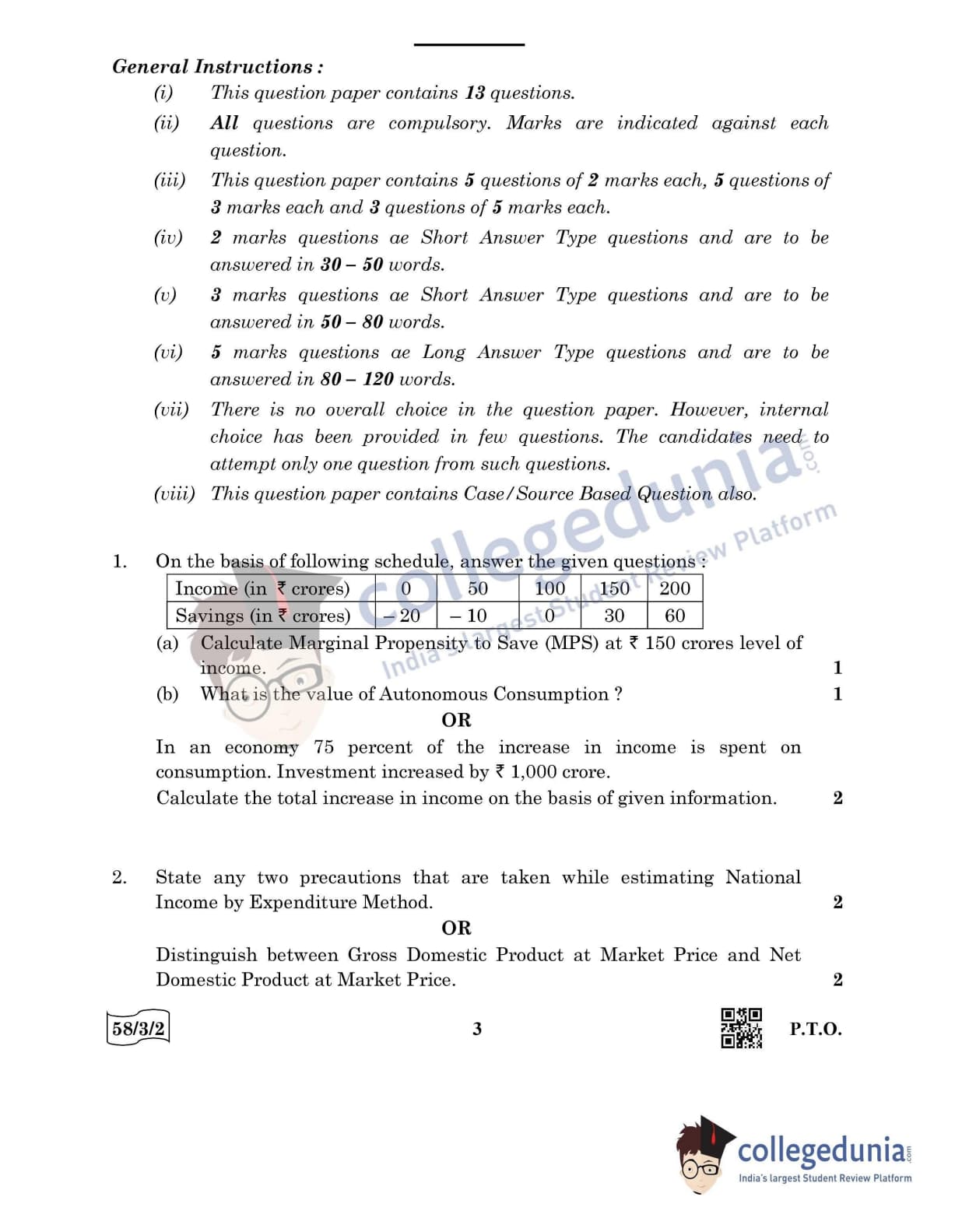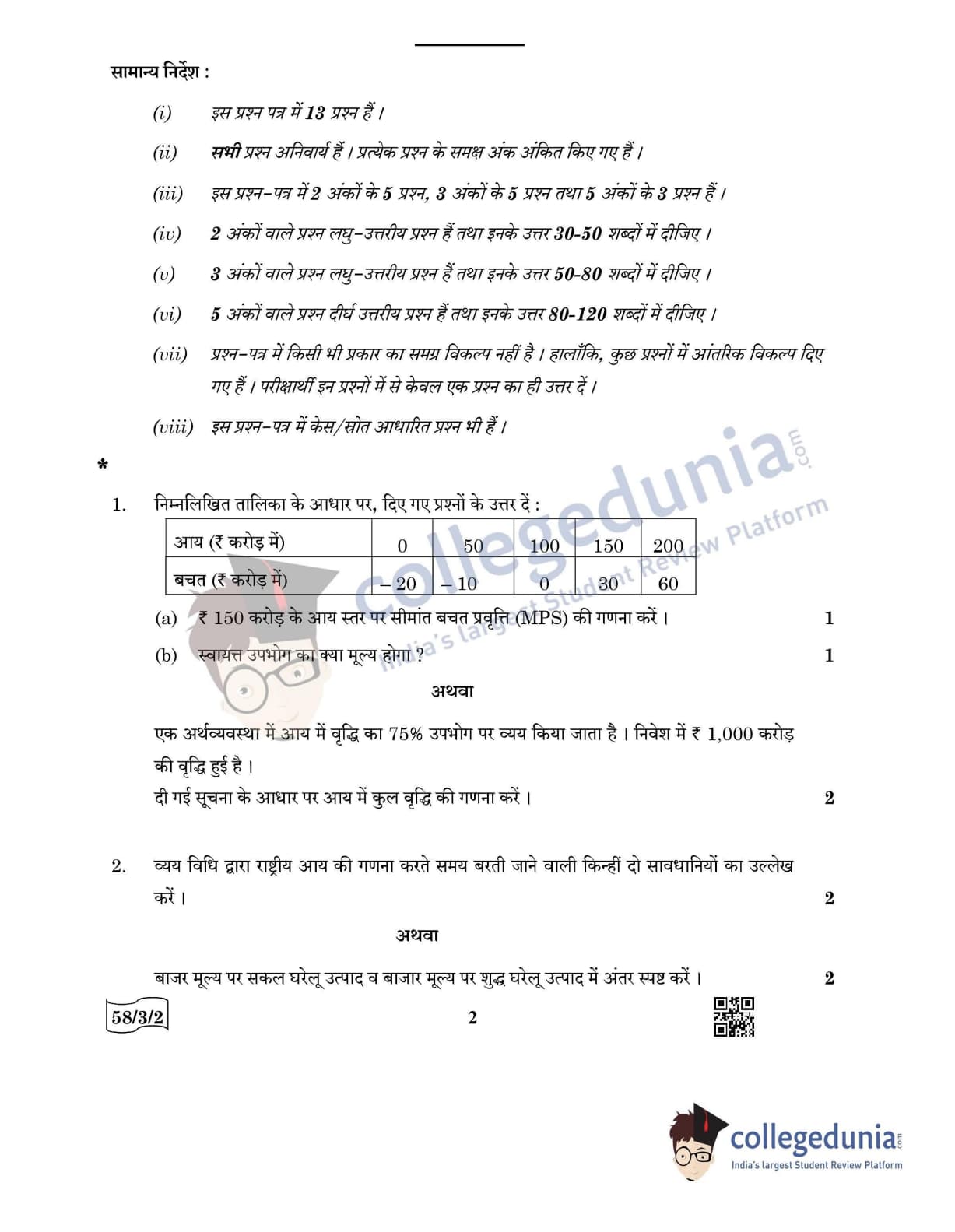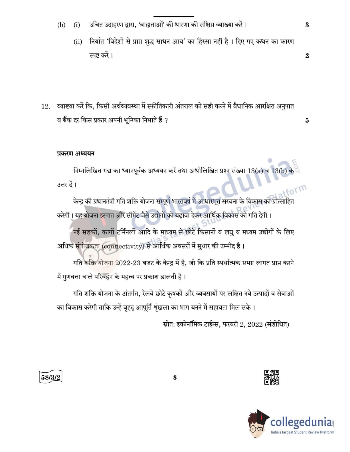 CBSE Class 12 Economics Question Paper 2022 with Answer Key (May 28, Set 2 - 58/3/2- Morning Session)