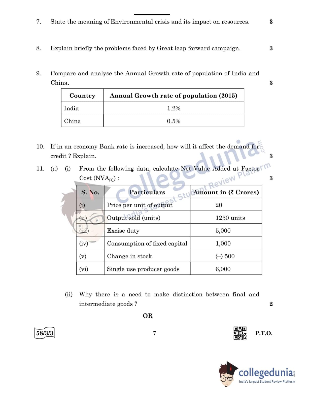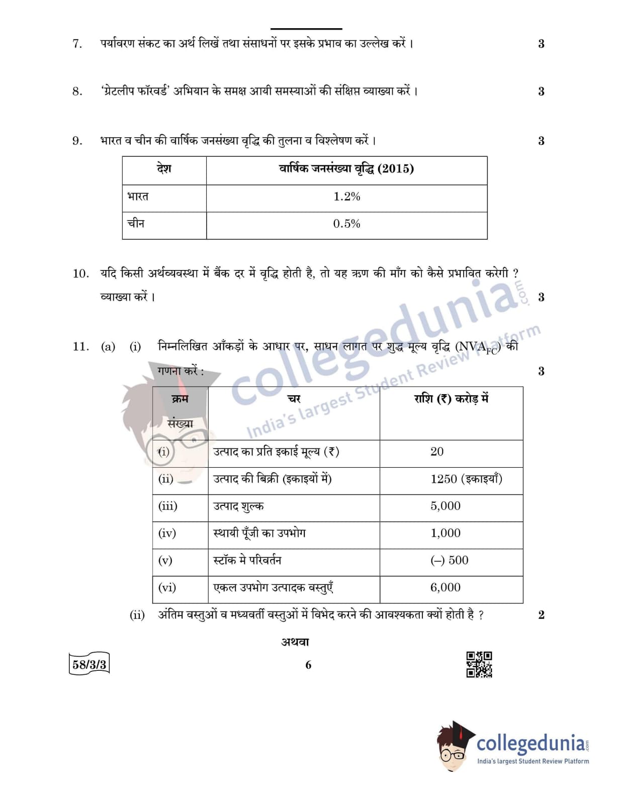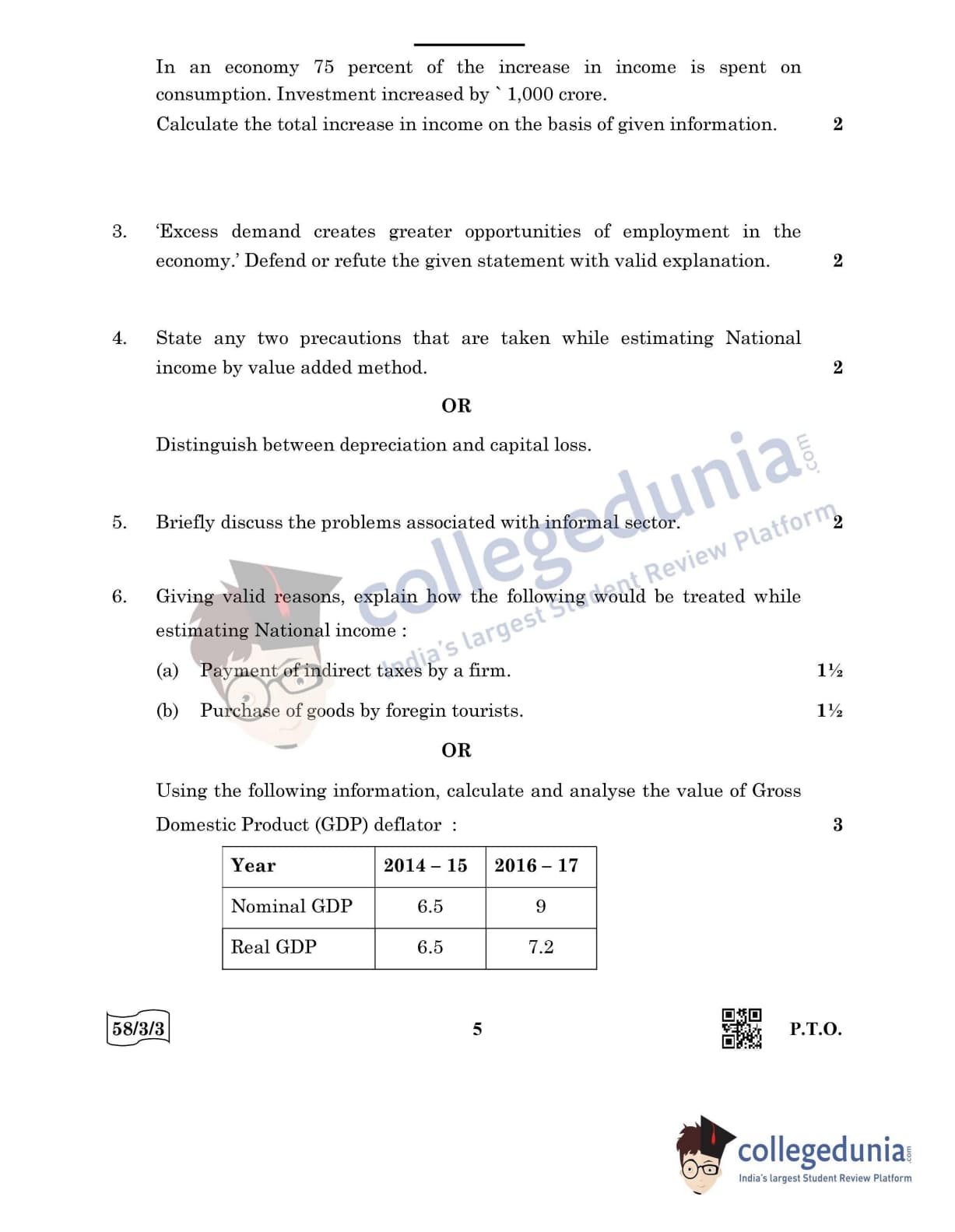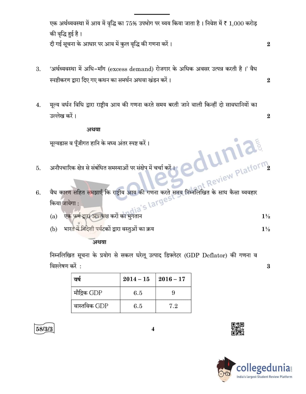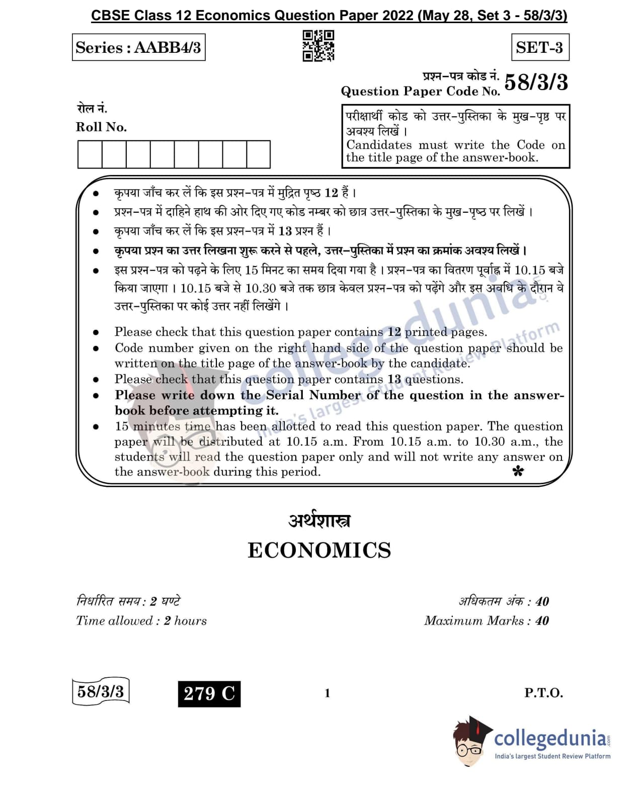 CBSE Class 12 Economics Question Paper 2022 with Answer Key (May 28, Set 3 - 58/3/3- Morning Session)