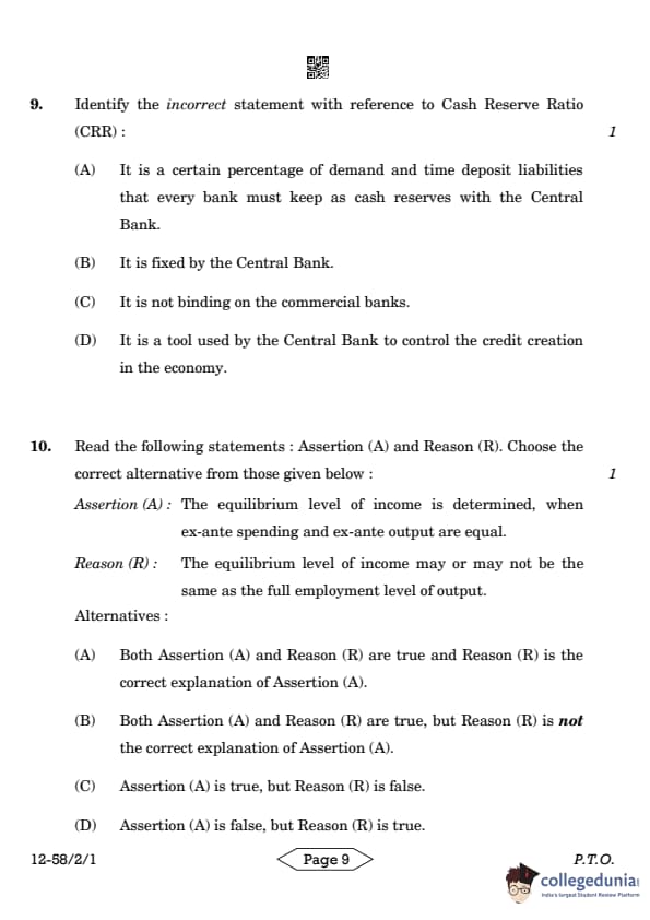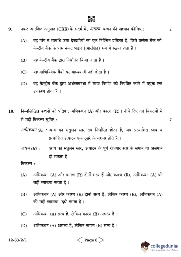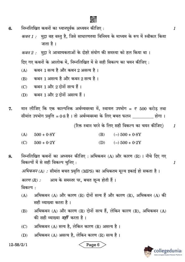 | CBSE Class 12 2024 Economics Question Paper with Answer Key | Check Solution |