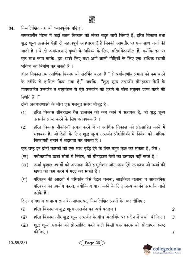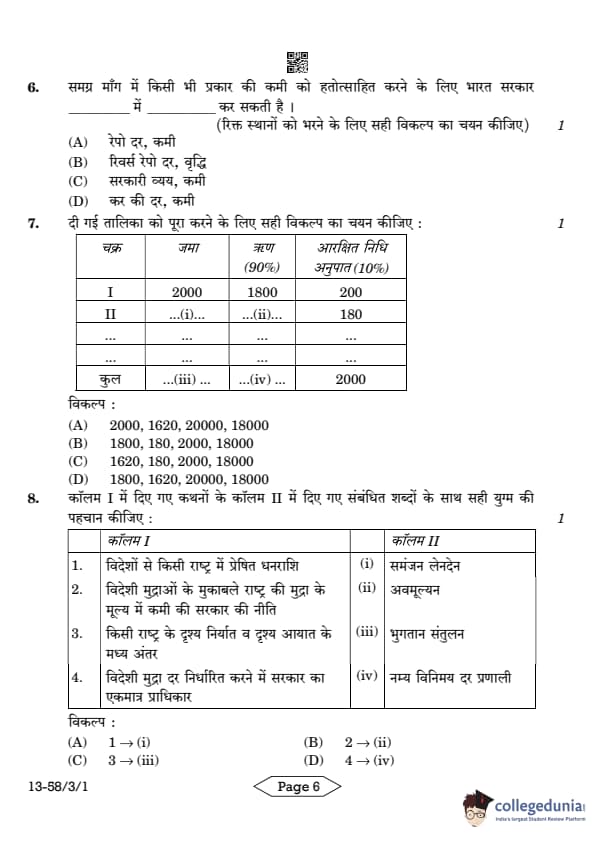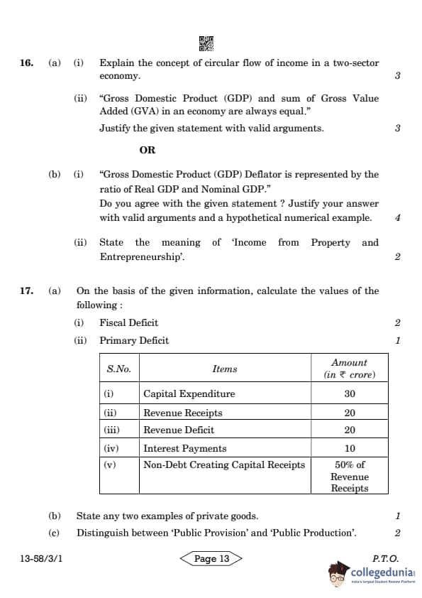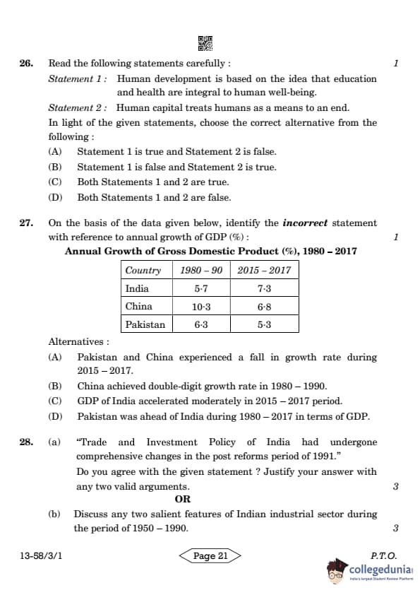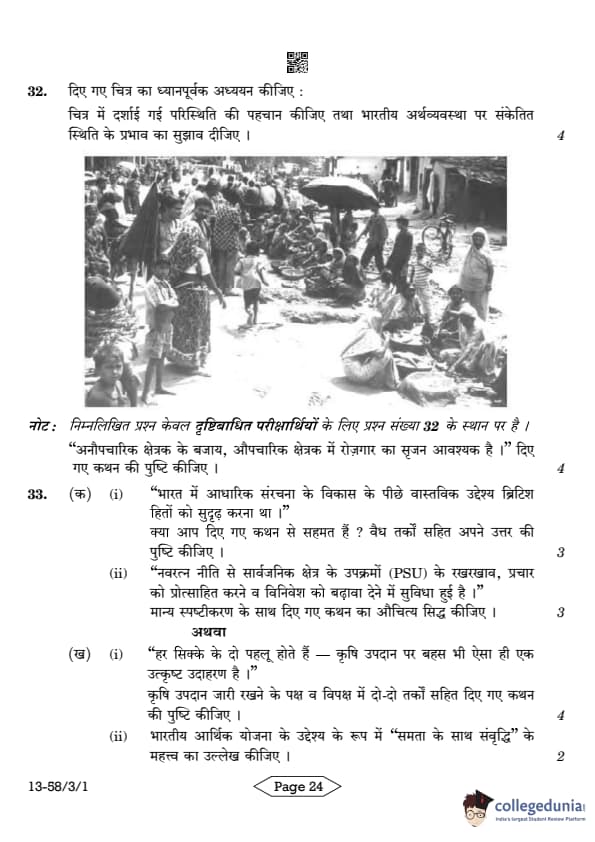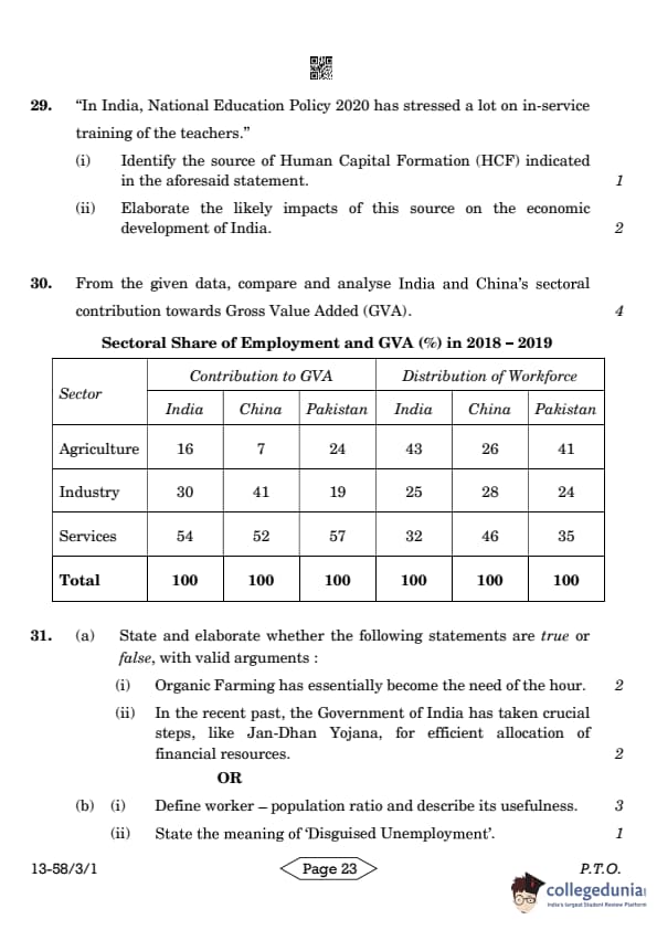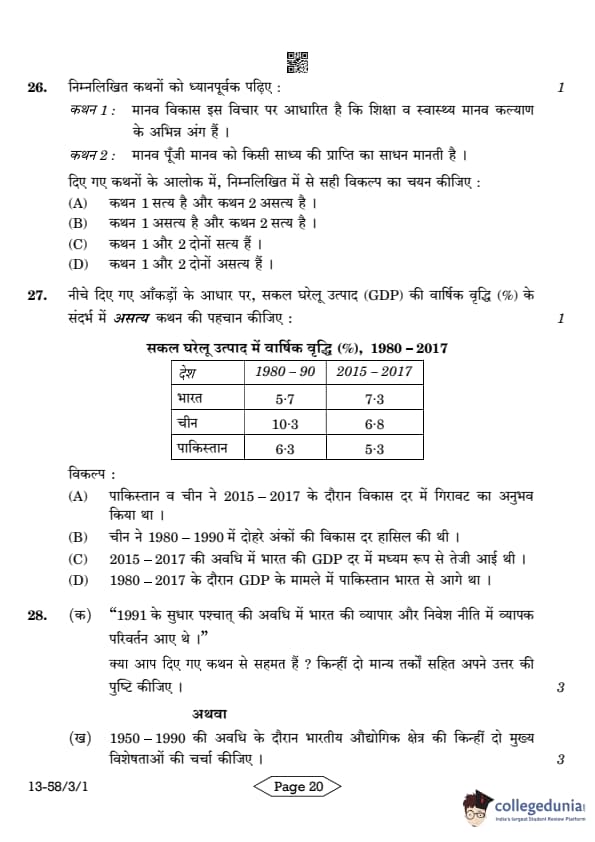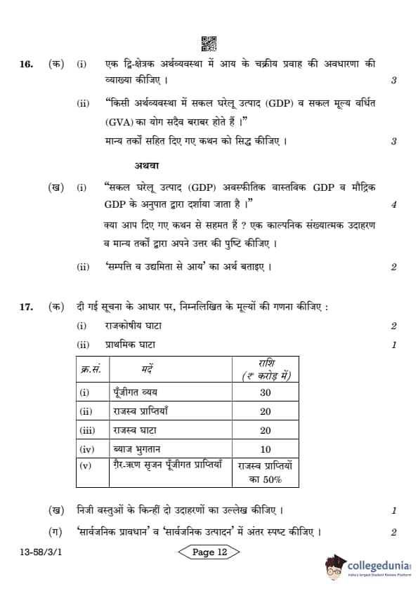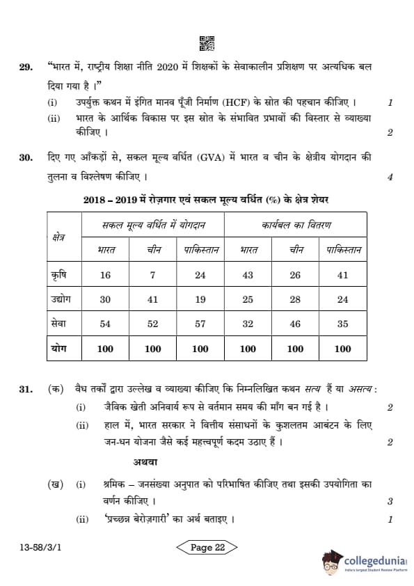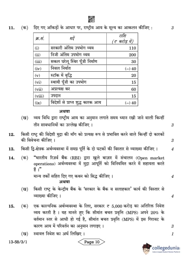 CBSE Class 12 Economics Question Paper 2024 (Set 1- 58/3/1) with Answer Key
