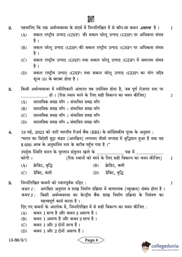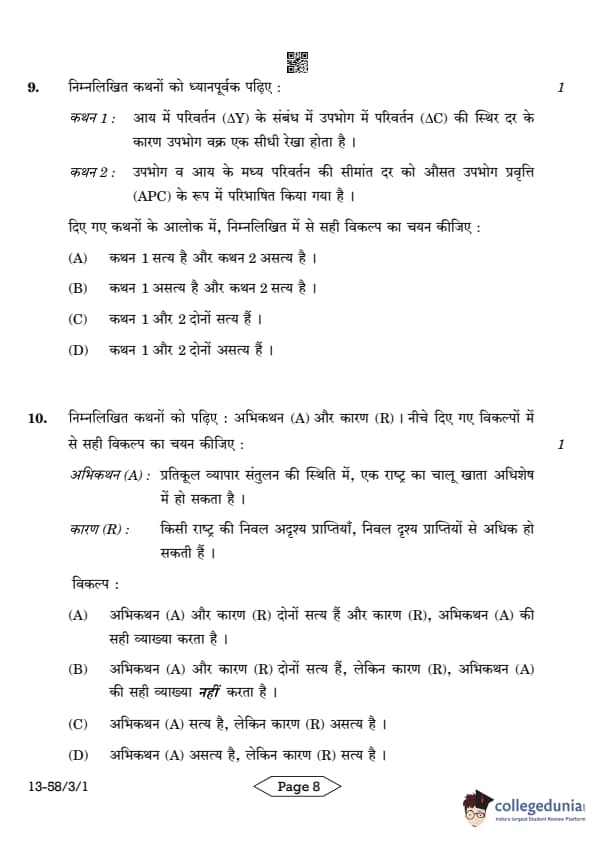 | CBSE Class 12 2024 Economics Question Paper with Answer Key | Check Solution |