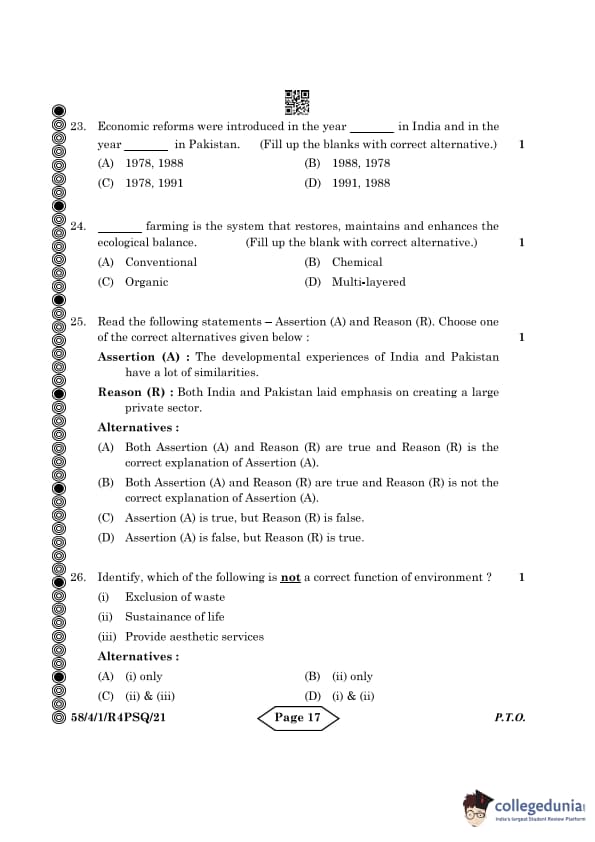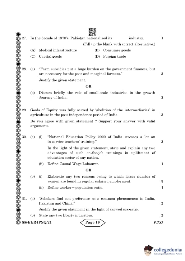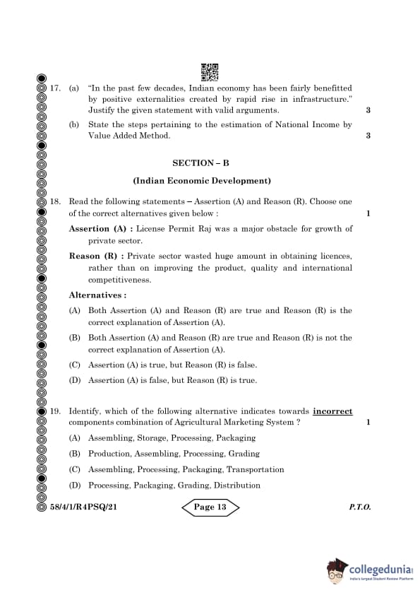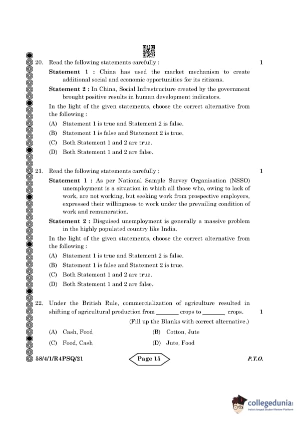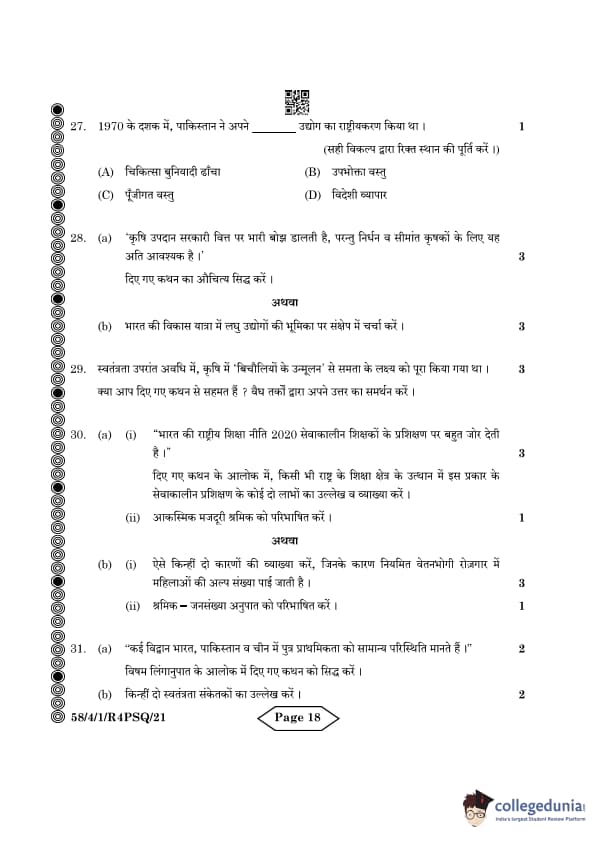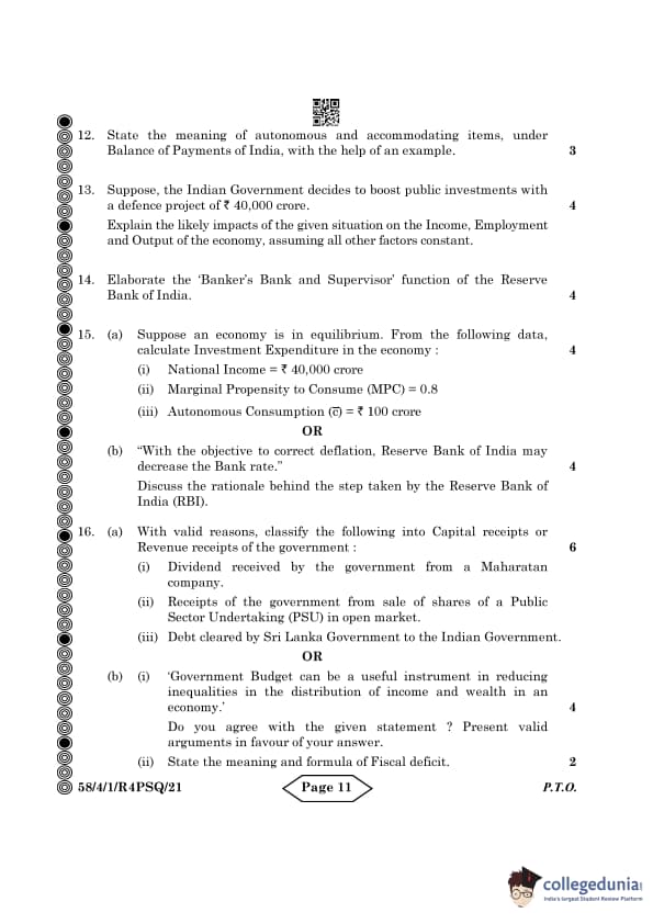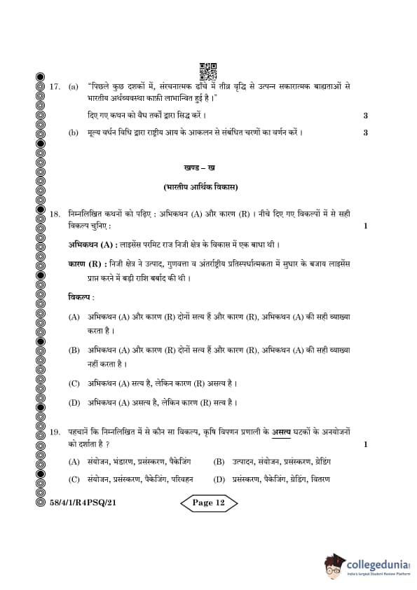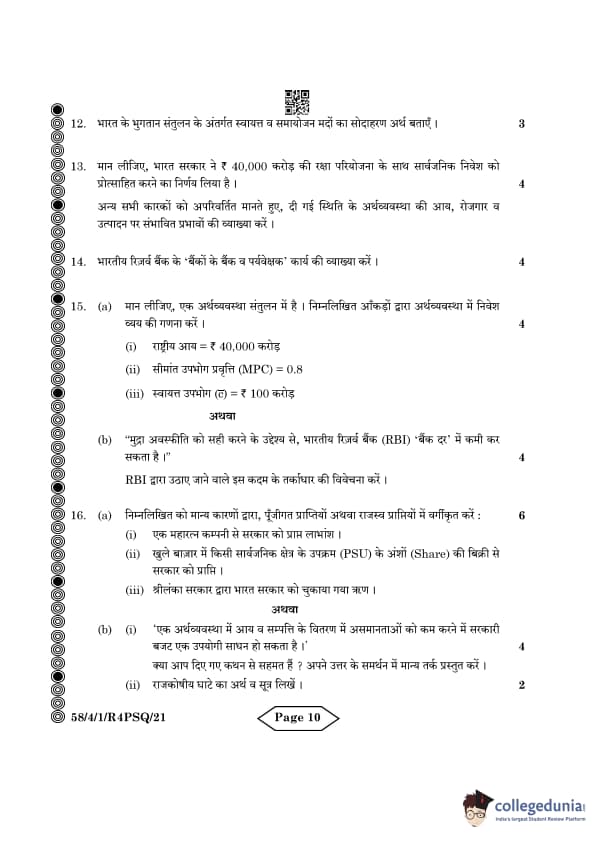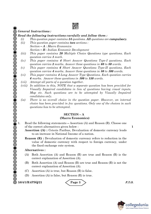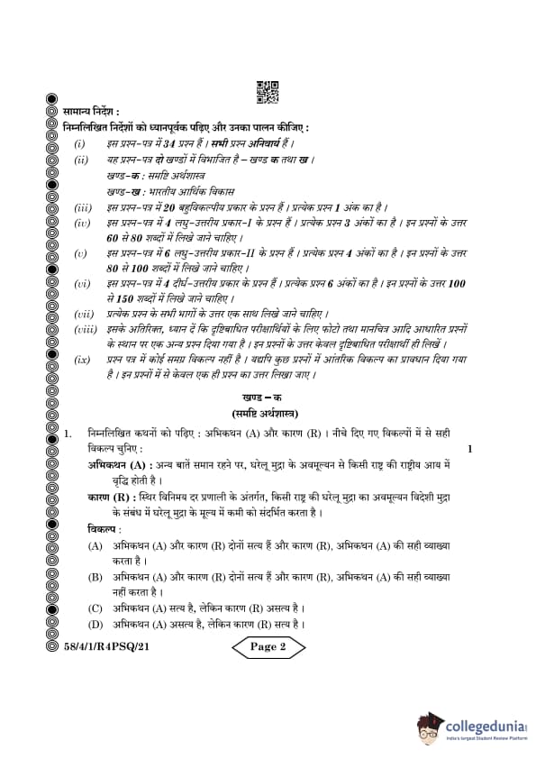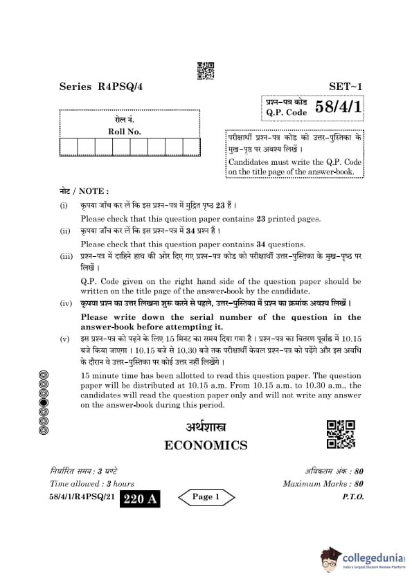 CBSE Class 12 Economics Question Paper 2024 PDF (Set 1- 58/4/1) is available for download here. CBSE conducted the Economics exam on March 18, 2024 from 10:30 AM to 1:30 PM. The total marks for the theory paper are 80. The question paper contains 20% MCQ-based questions, 40% competency-based questions, and 40% short and long answer type questions. Candidates can use the link below to download the CBSE Class 12 Economics Set 1 Question Paper with detailed solutions.