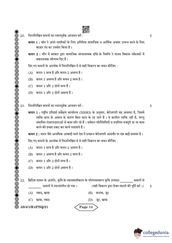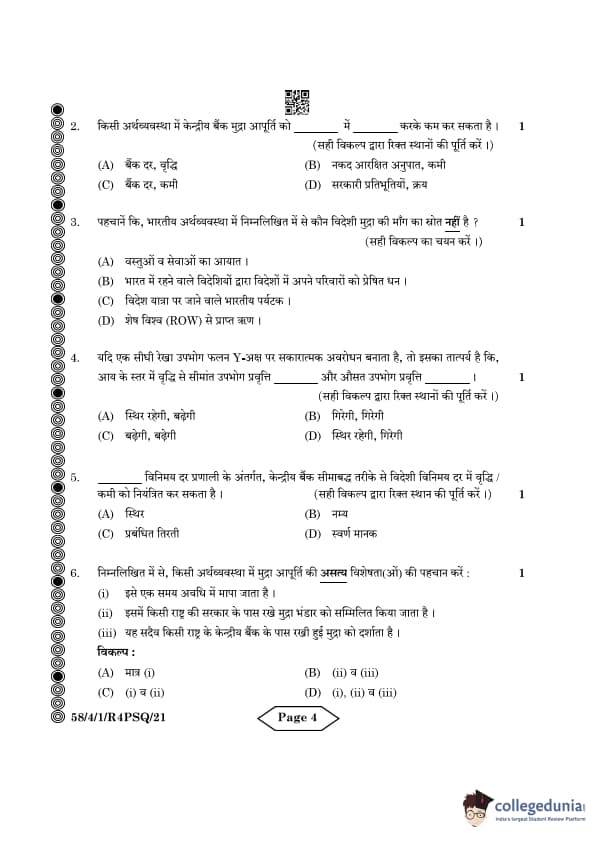 CBSE Class 12 Economics Question Paper 2024 (Set 1- 58/4/1) with Answer Key