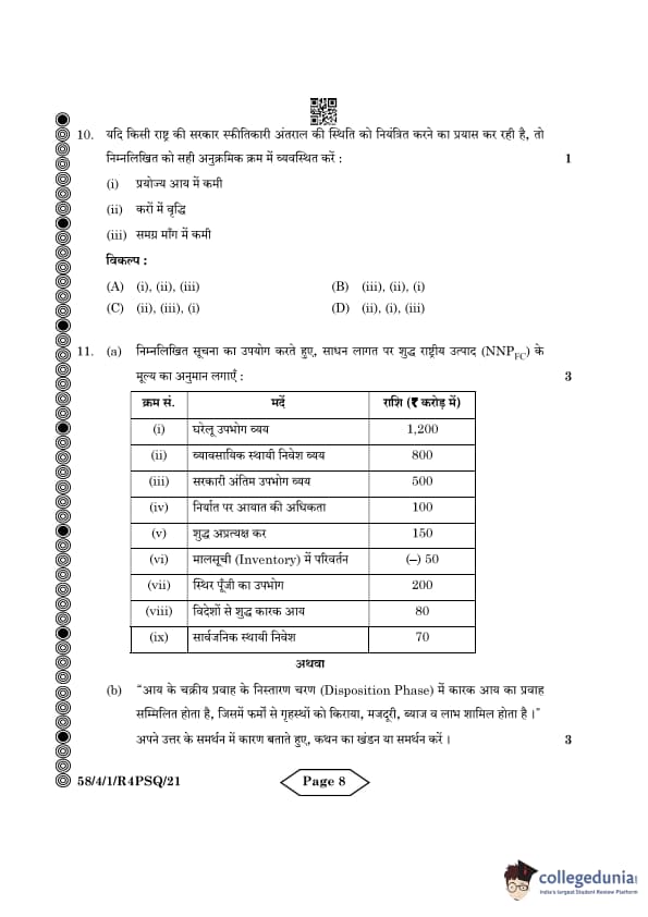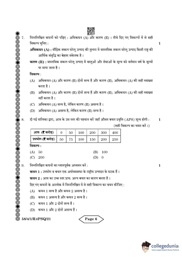 | CBSE Class 12 2024 Economics Question Paper with Answer Key | Check Solution |