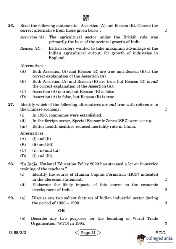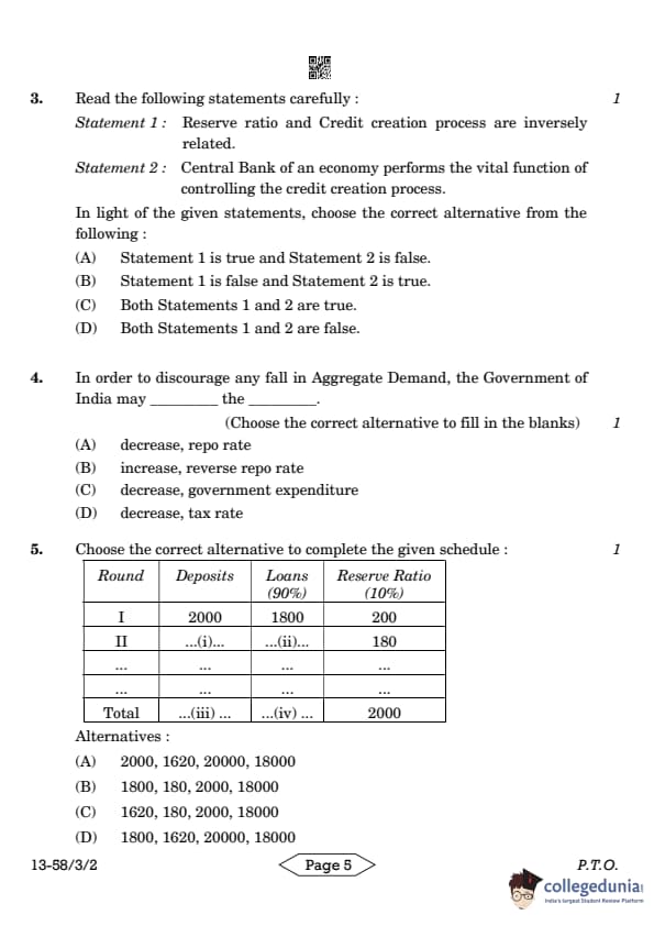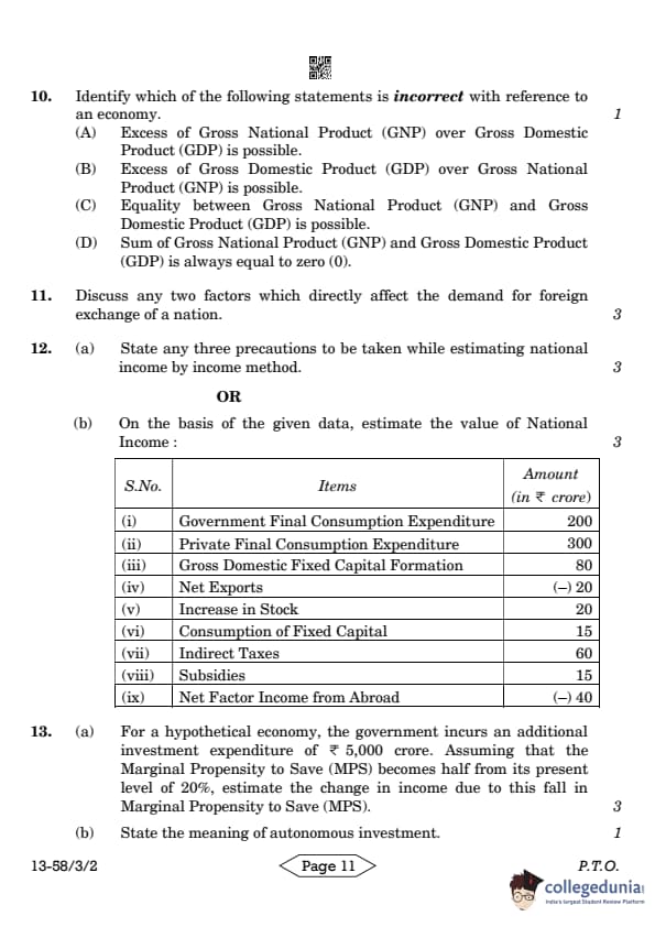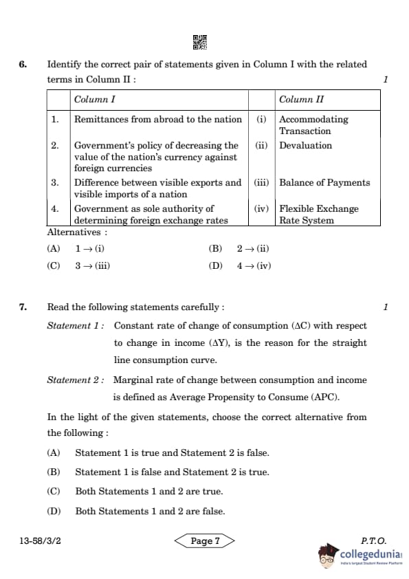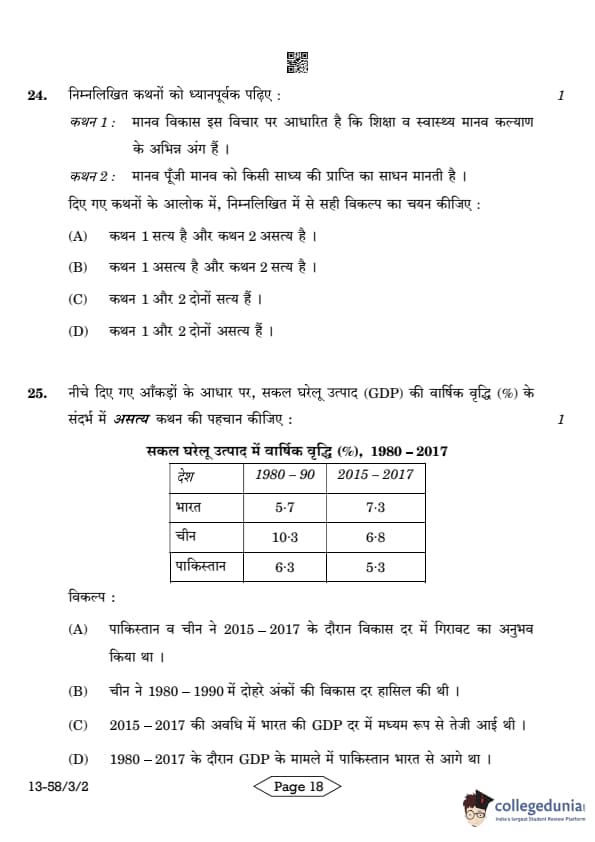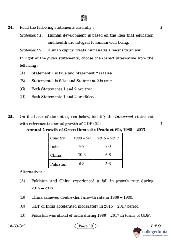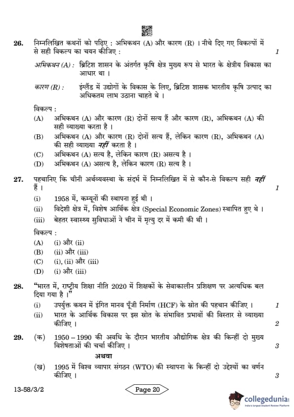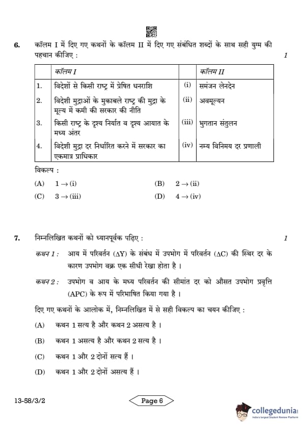 | CBSE Class 12 2024 Economics Question Paper with Answer Key | Check Solution |