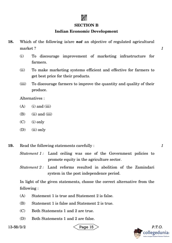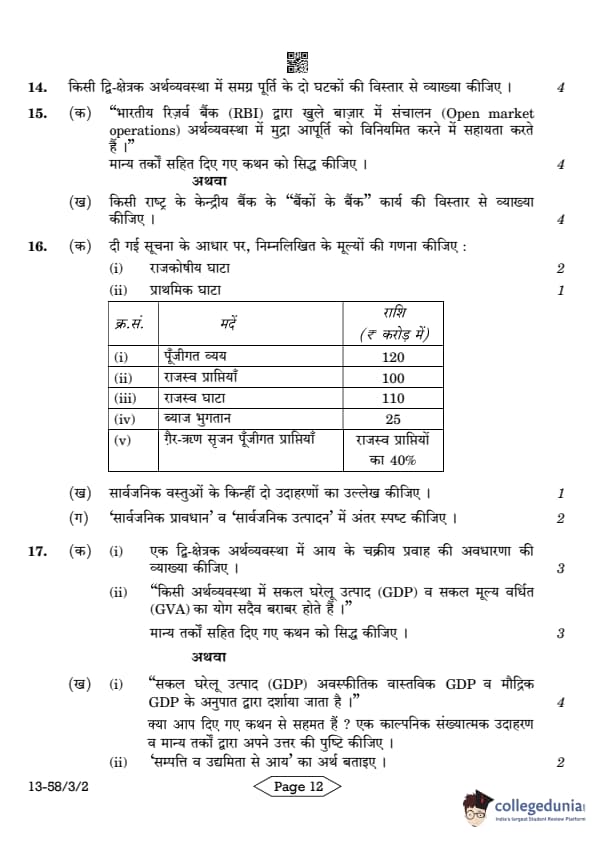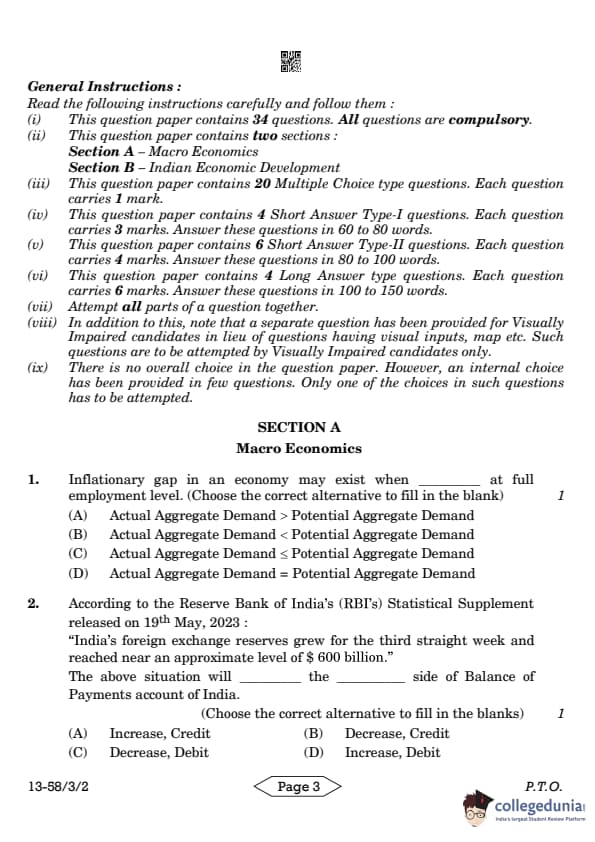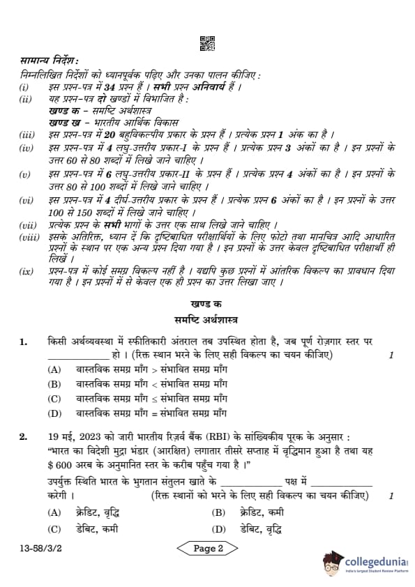 CBSE Class 12 Economics Question Paper 2024 PDF (Set 2- 58/3/2) is available for download here. CBSE conducted the Economics exam on March 18, 2024 from 10:30 AM to 1:30 PM. The total marks for the theory paper are 80. The question paper contains 20% MCQ-based questions, 40% competency-based questions, and 40% short and long answer type questions. Candidates can use the link below to download the CBSE Class 12 Economics Set 2 Question Paper with detailed solutions.