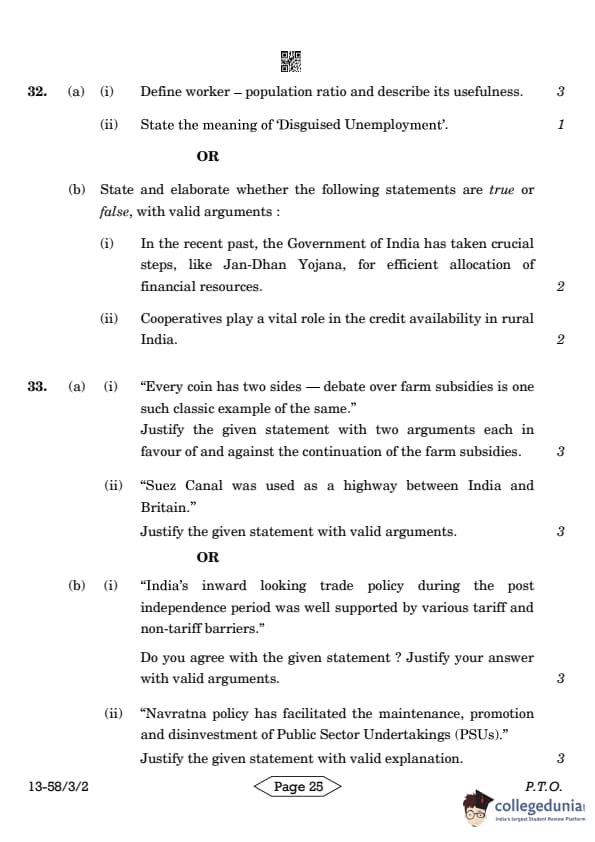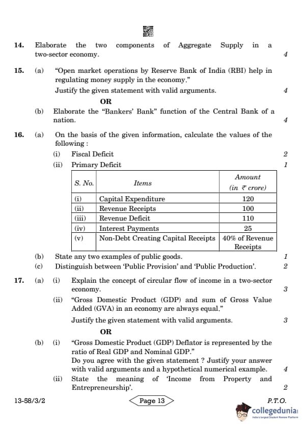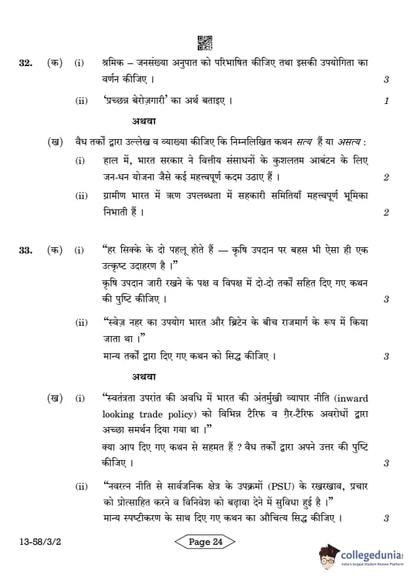 CBSE Class 12 Economics Question Paper 2024 (Set 2- 58/3/2) with Answer Key