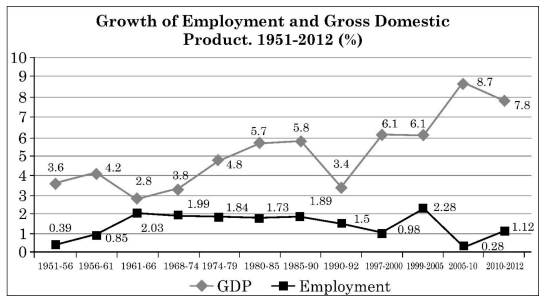 (i) Study the following chart of Employment and Gross Domestic Product. Analyse the trend of the two variables between 1990-2012. Analysis of the trend between 1990-2012: