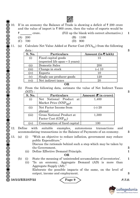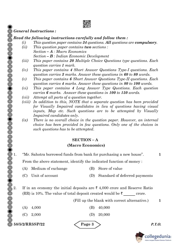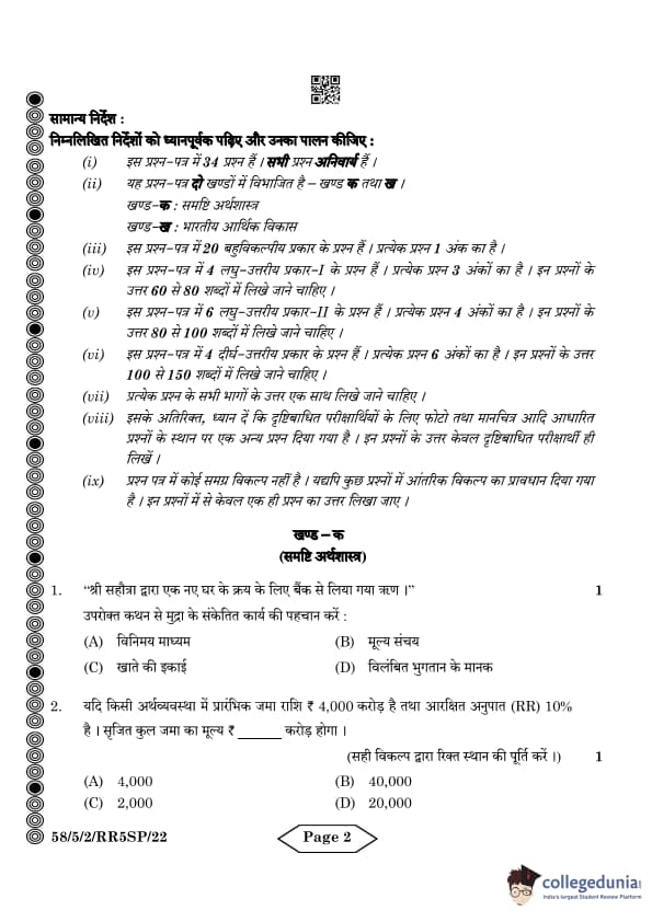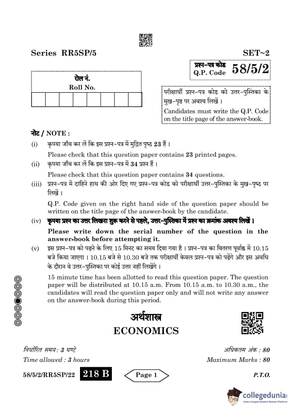 CBSE Class 12 Economics Question Paper 2024 PDF (Set 2- 58/5/2) is available for download here. CBSE conducted the Economics exam on March 18, 2024 from 10:30 AM to 1:30 PM. The total marks for the theory paper are 80. The question paper will contain 20% MCQ-based questions, 40% competency-based questions, and 40% short and long answer type questions. Candidates can use the link below to download the CBSE Class 12 Economics Set 2 Question Paper with detailed solutions.