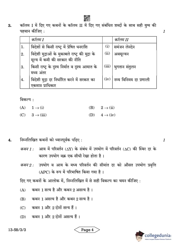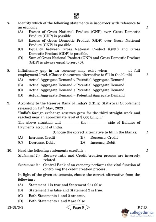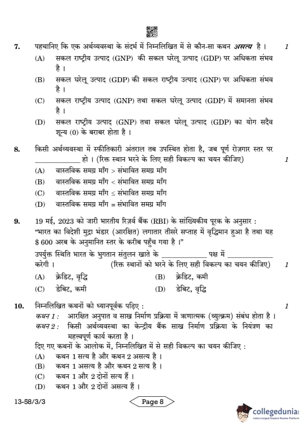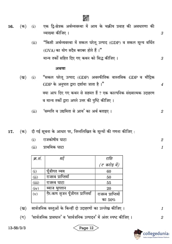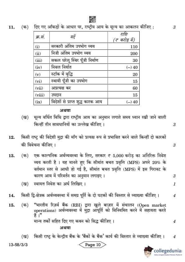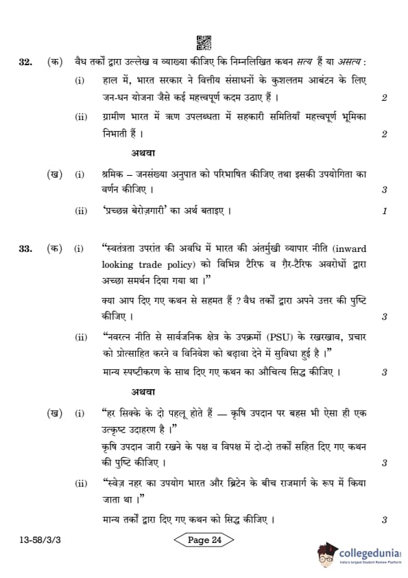 CBSE Class 12 Economics Question Paper 2024 (Set 3- 58/3/3) with Answer Key