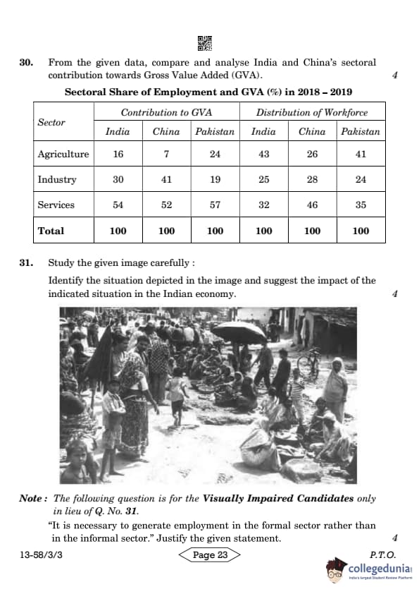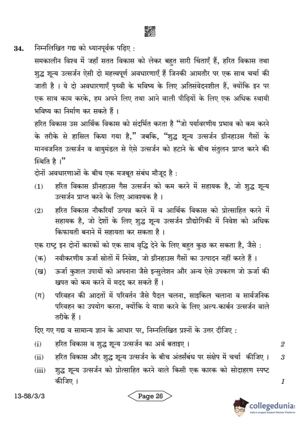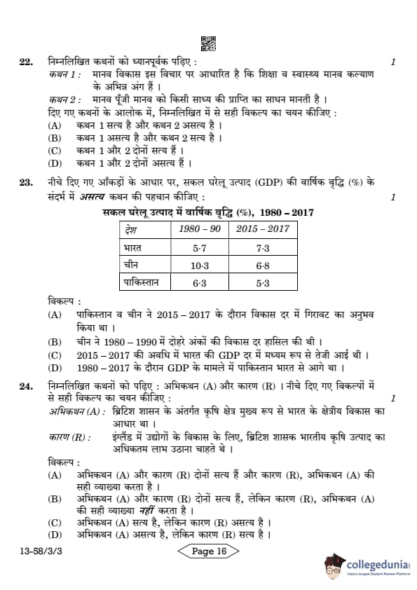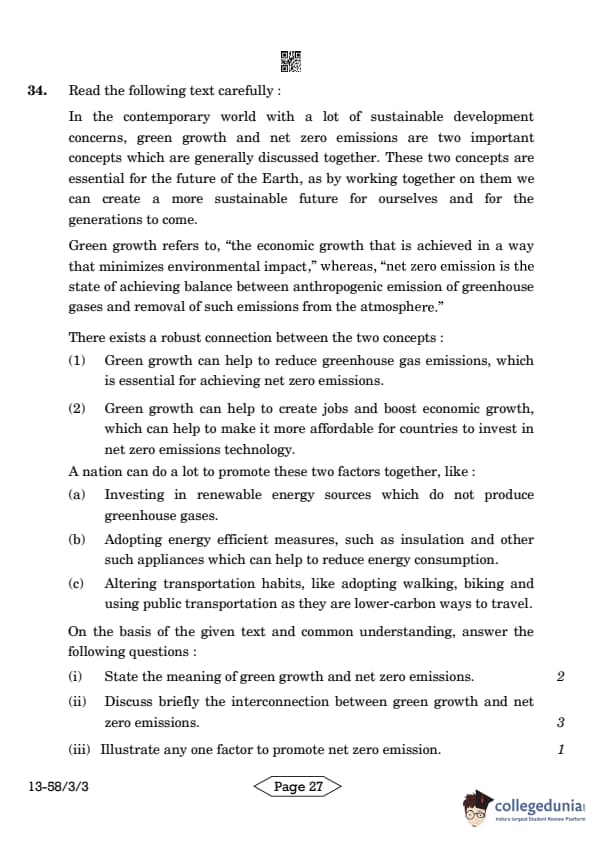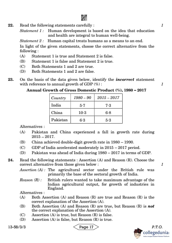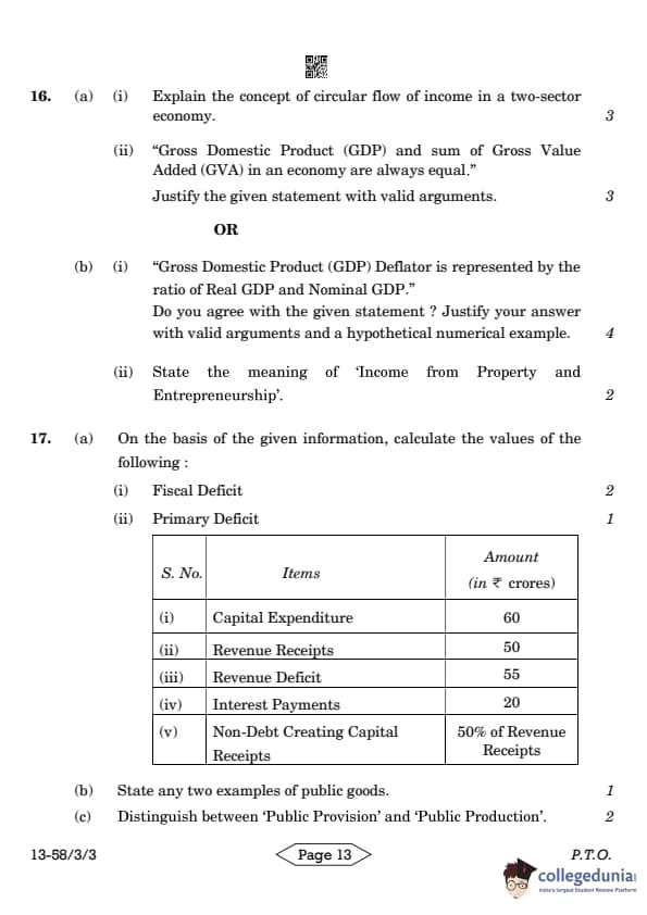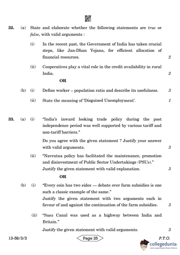 CBSE Class 12 Economics Question Paper 2024 (Set 3- 58/3/3) with Answer Key