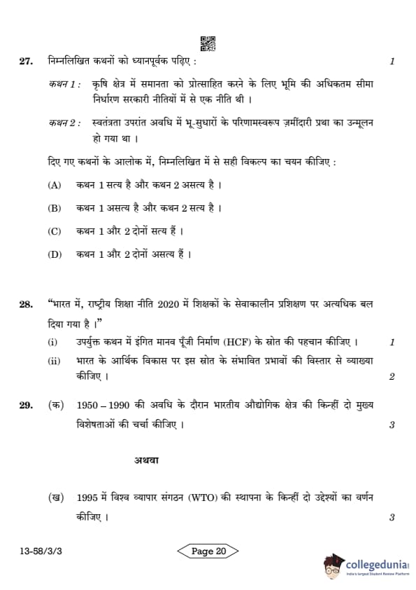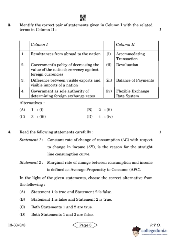 | CBSE Class 12 2024 Economics Question Paper with Answer Key | Check Solution |