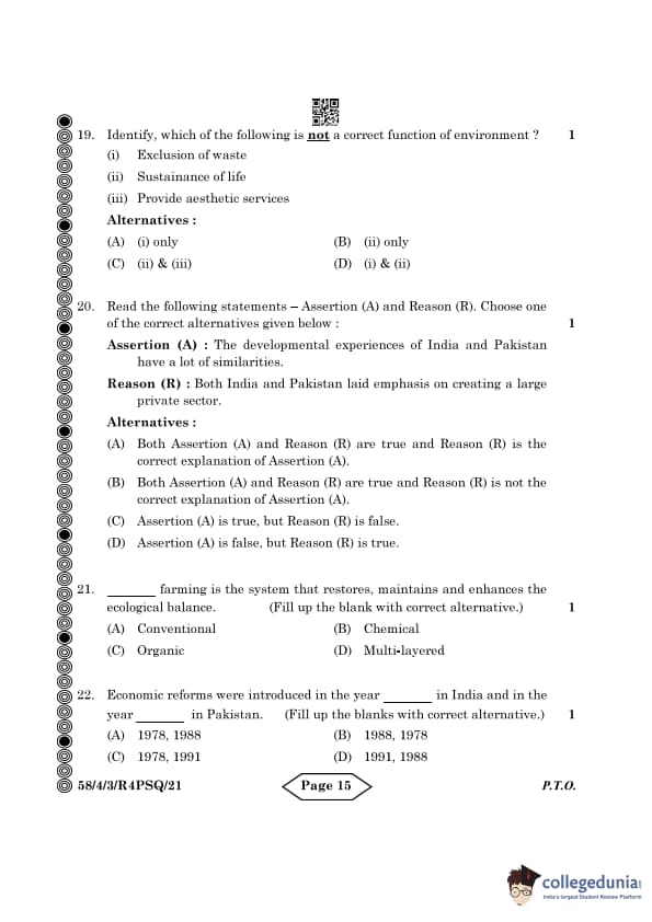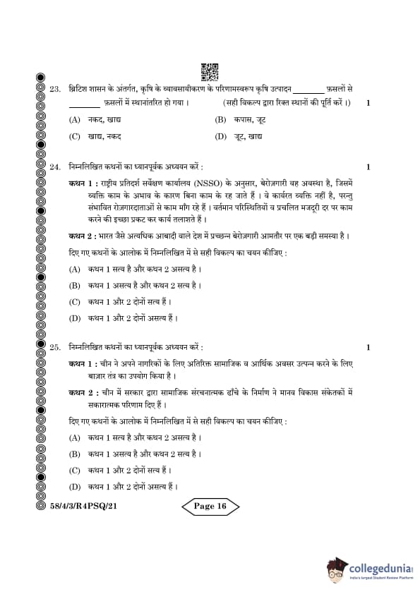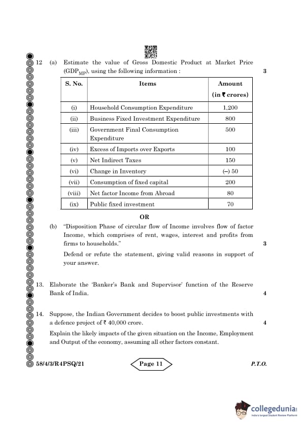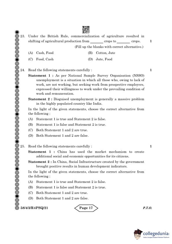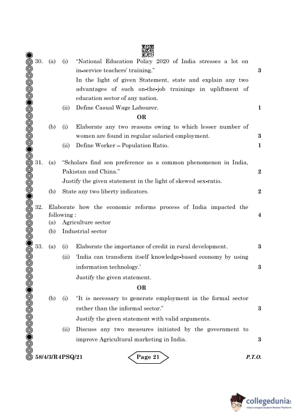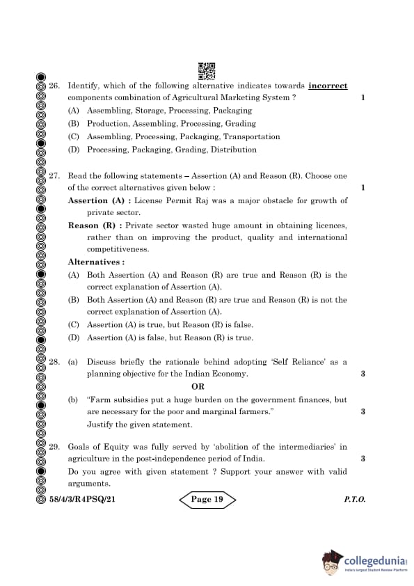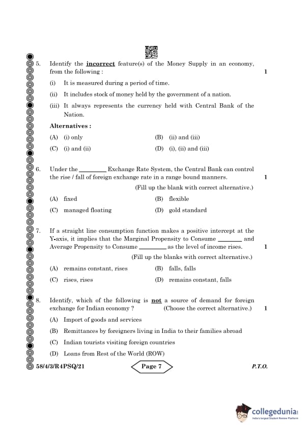 CBSE Class 12 Economics Question Paper 2024 PDF (Set 3- 58/4/3) is available for download here. CBSE conducted the Economics exam on March 18, 2024 from 10:30 AM to 1:30 PM. The total marks for the theory paper are 80. The question paper contains 20% MCQ-based questions, 40% competency-based questions, and 40% short and long answer type questions. Candidates can use the link below to download the CBSE Class 12 Economics Set 3 Question Paper with detailed solutions.
