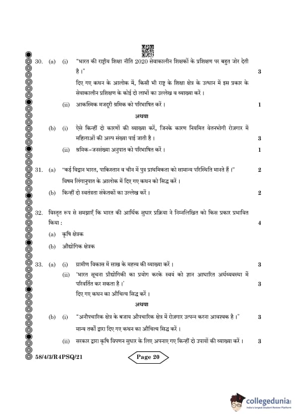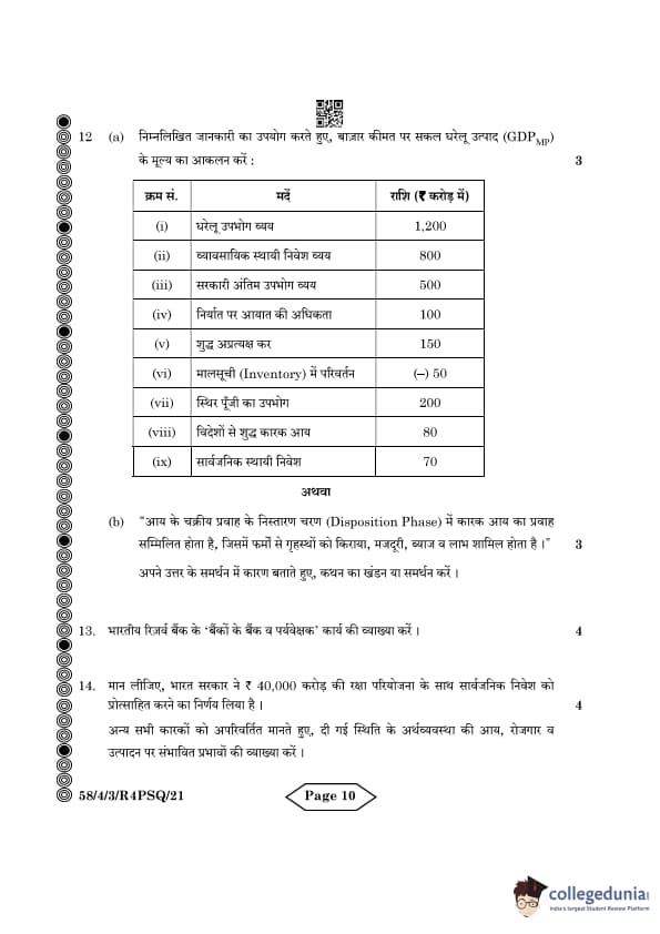 CBSE Class 12 Economics Question Paper 2024 (Set 3- 58/4/3) with Answer Key