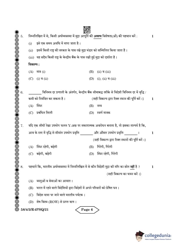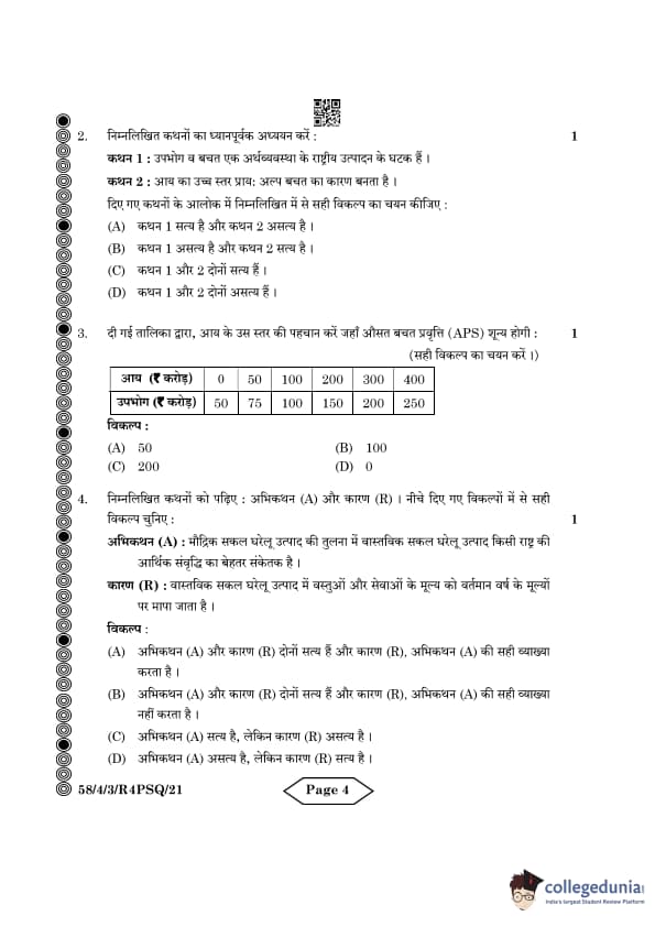 | CBSE Class 12 2024 Economics Question Paper with Answer Key | Check Solution |