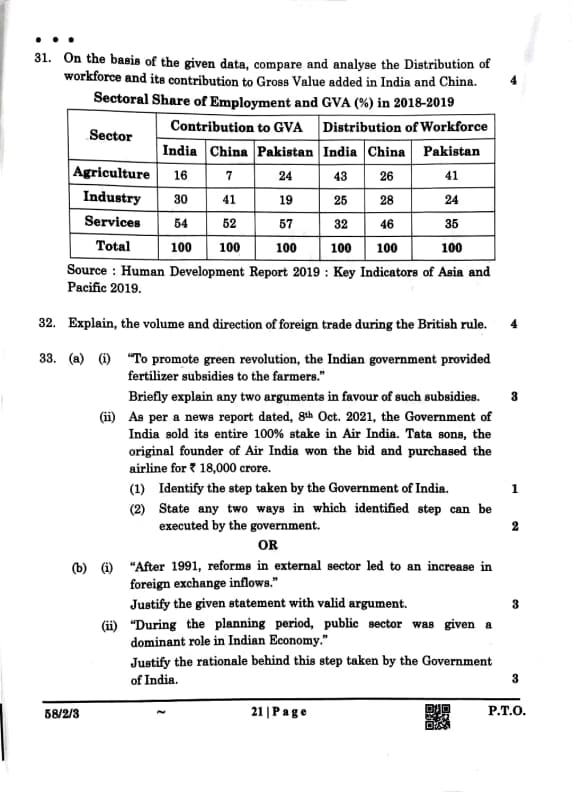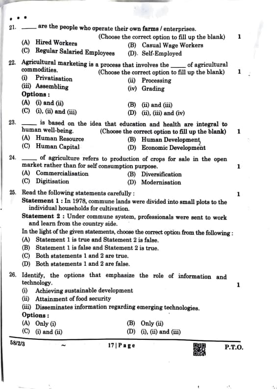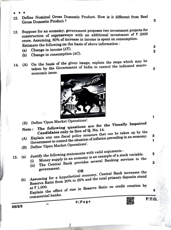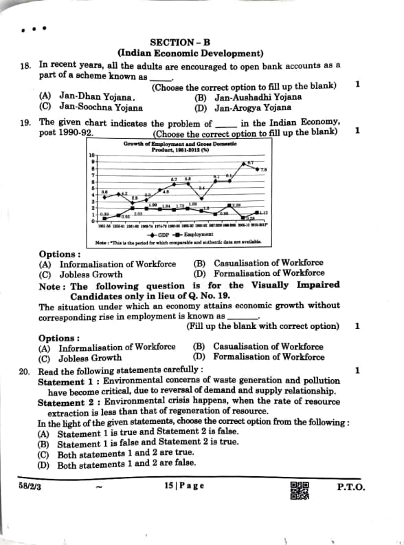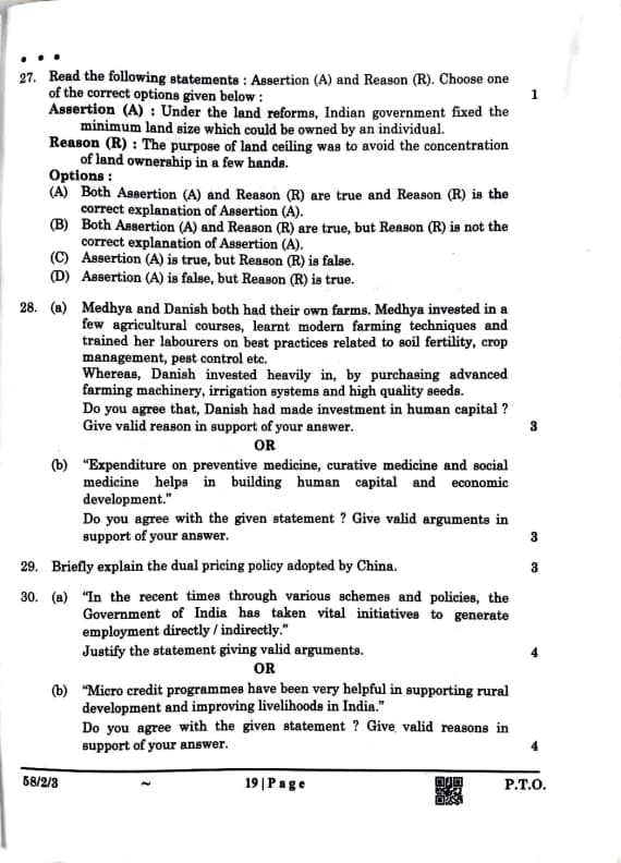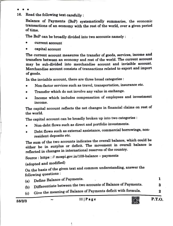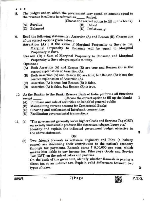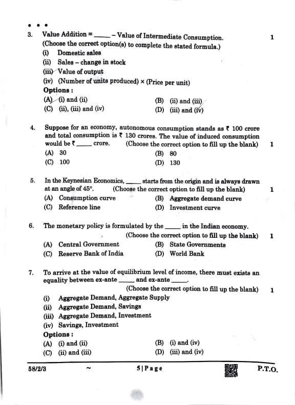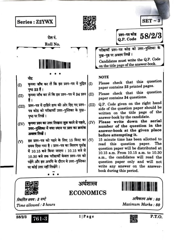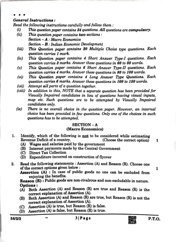 CBSE Class 12 Economics Question Paper 2025 (Set 3- 58/2/3) with Answer Key