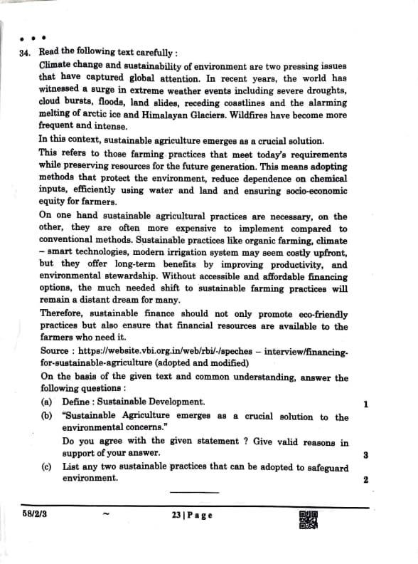 (b) "Sustainable Agriculture emerges as a crucial solution to the environmental concerns."