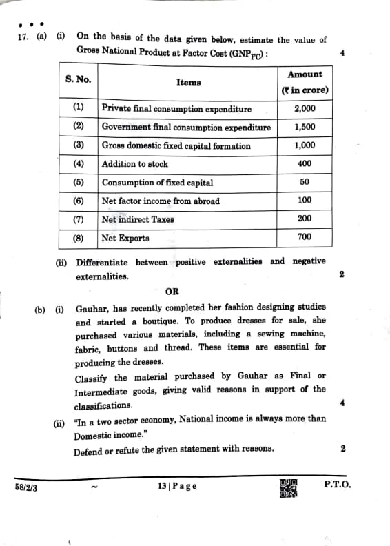 (i) Gauhar has recently completed her fashion designing studies and started a boutique. To produce dresses for sale, she purchased various materials, including a sewing machine, fabric, buttons, and thread. These items are essential for producing the dresses. Classify the material purchased by Gauhar as Final or Intermediate goods, giving valid reasons in support of the classifications.