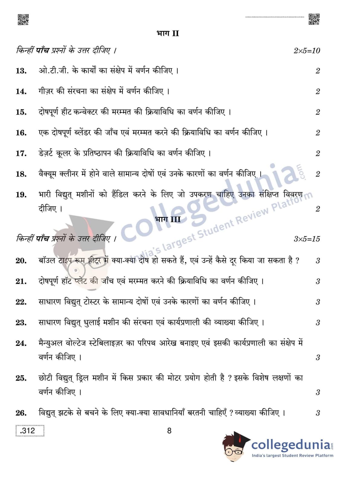 | CBSE Class 12 Electrical Appliances Question Paper 2020 PDF | CBSE Class 12 Electrical Appliances Answer Key 2020 PDF |