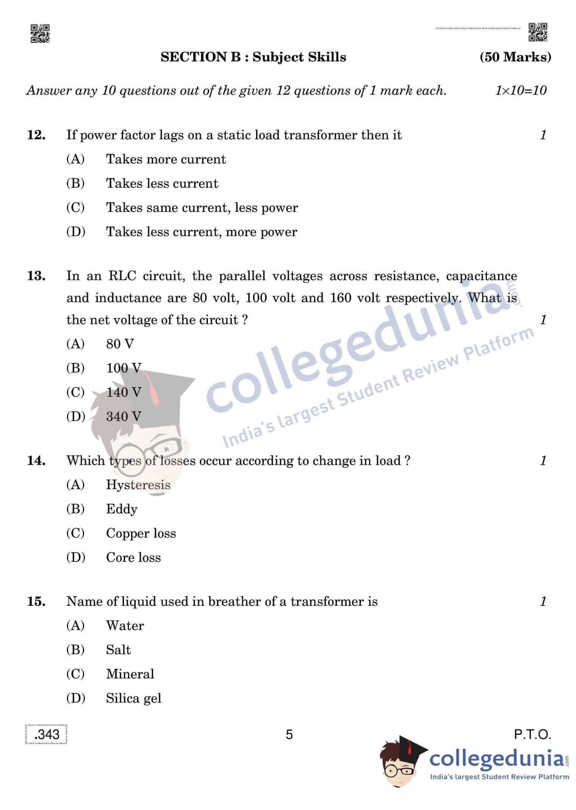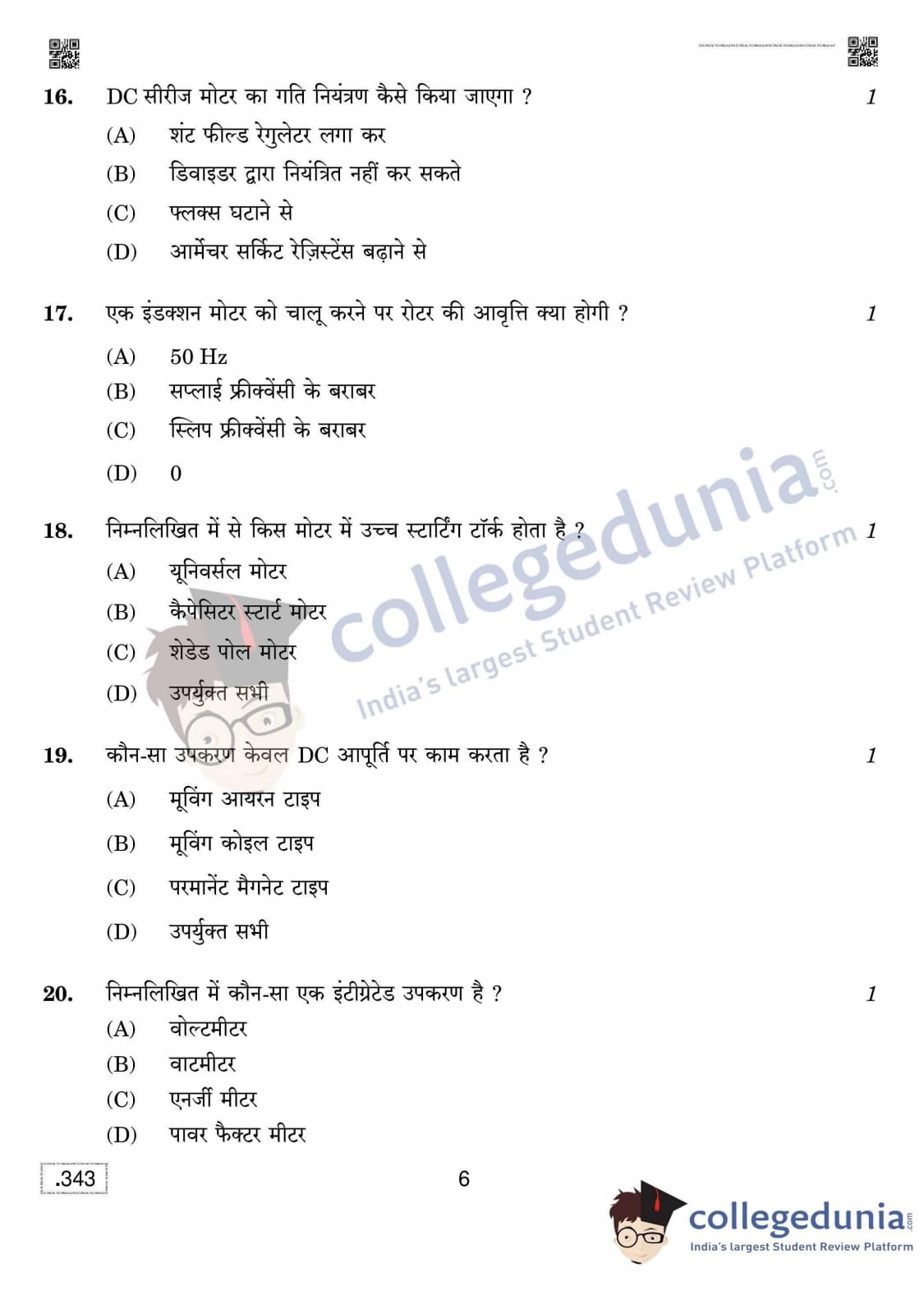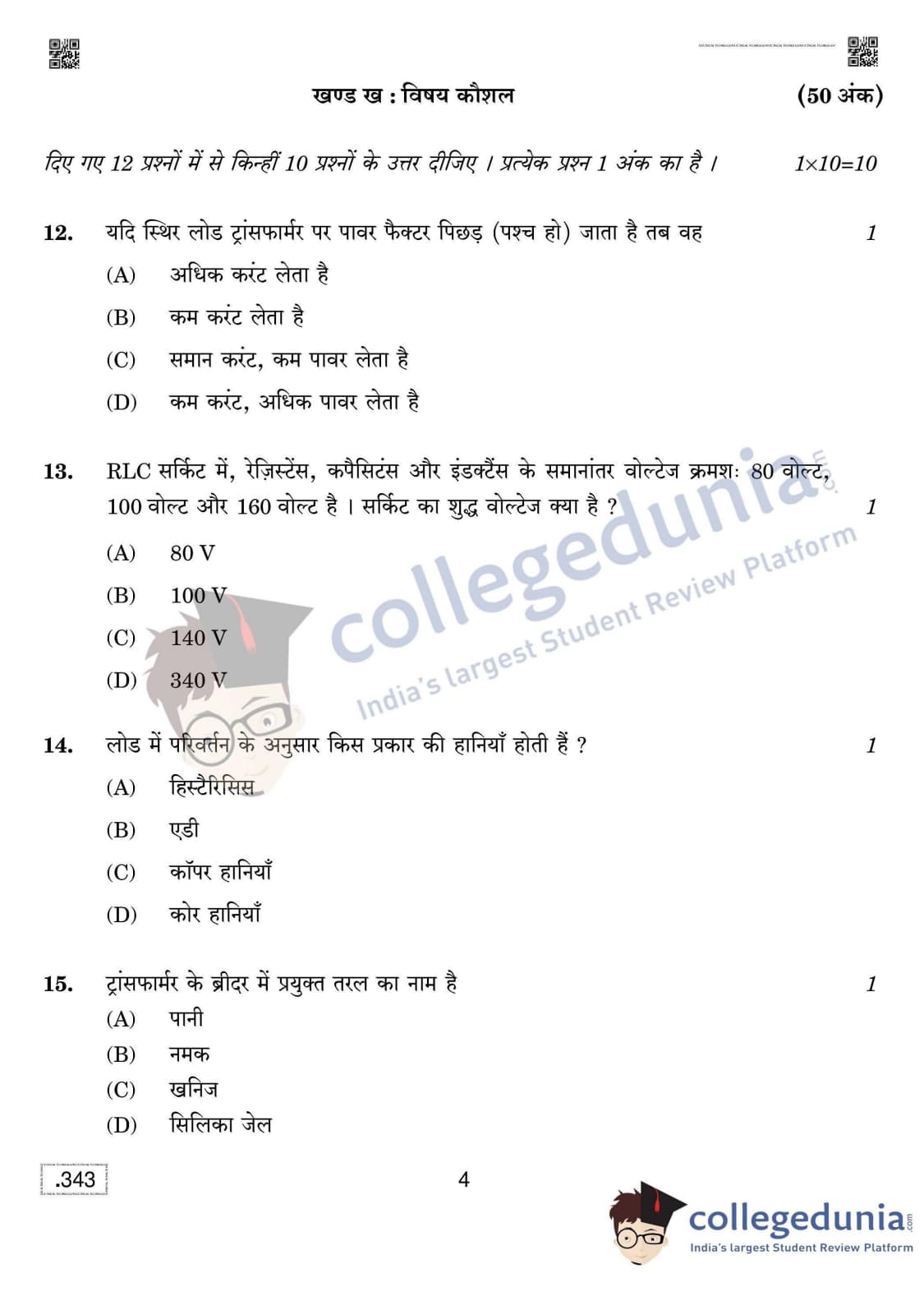 CBSE Class 12 Electrical Technology Question Paper 2020 with Answer Key Set 4 is available for download. The exam was conducted by the Central Board of Secondary Education on February 15, 2020 in the Morning Session 10:30 AM to 1:30 PM. The medium of paper was English & Hindi. The question paper comprised a total of 42 questions divided among 2 sections.