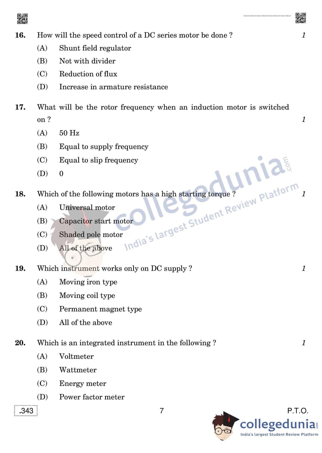 CBSE Class 12 Electrical Technology Question Paper 2020 with Answer Key (February 15)