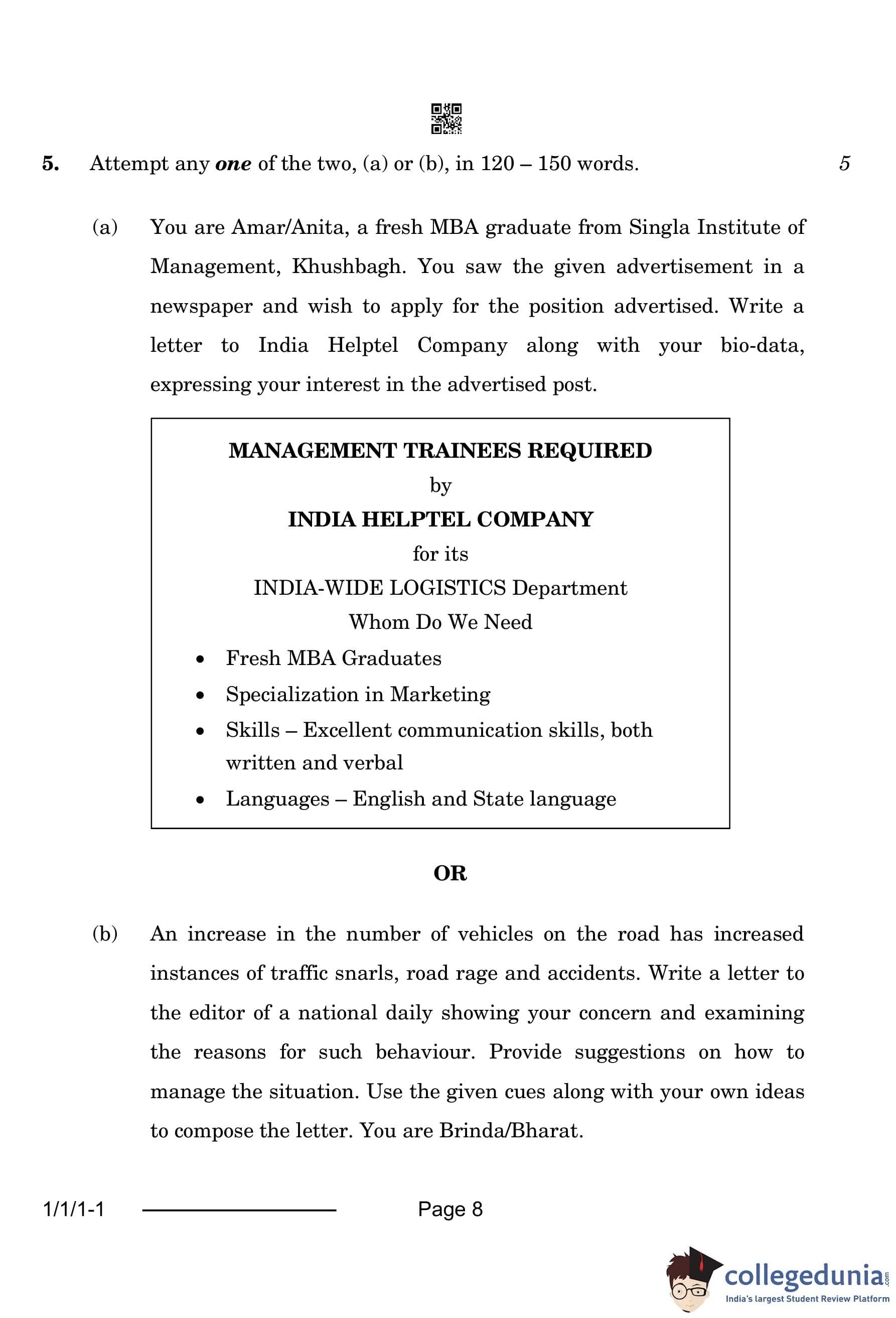 | CBSE Class 12 2024 English Question Paper with Answer Key | Check Solution |